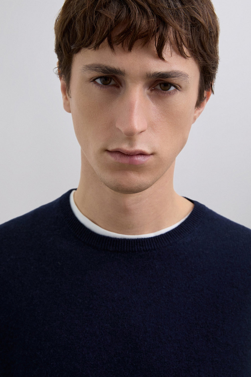 Camisola confeccionada em 100% caxemira. Corte Regular Fit. Gola redonda. Manga comprida.