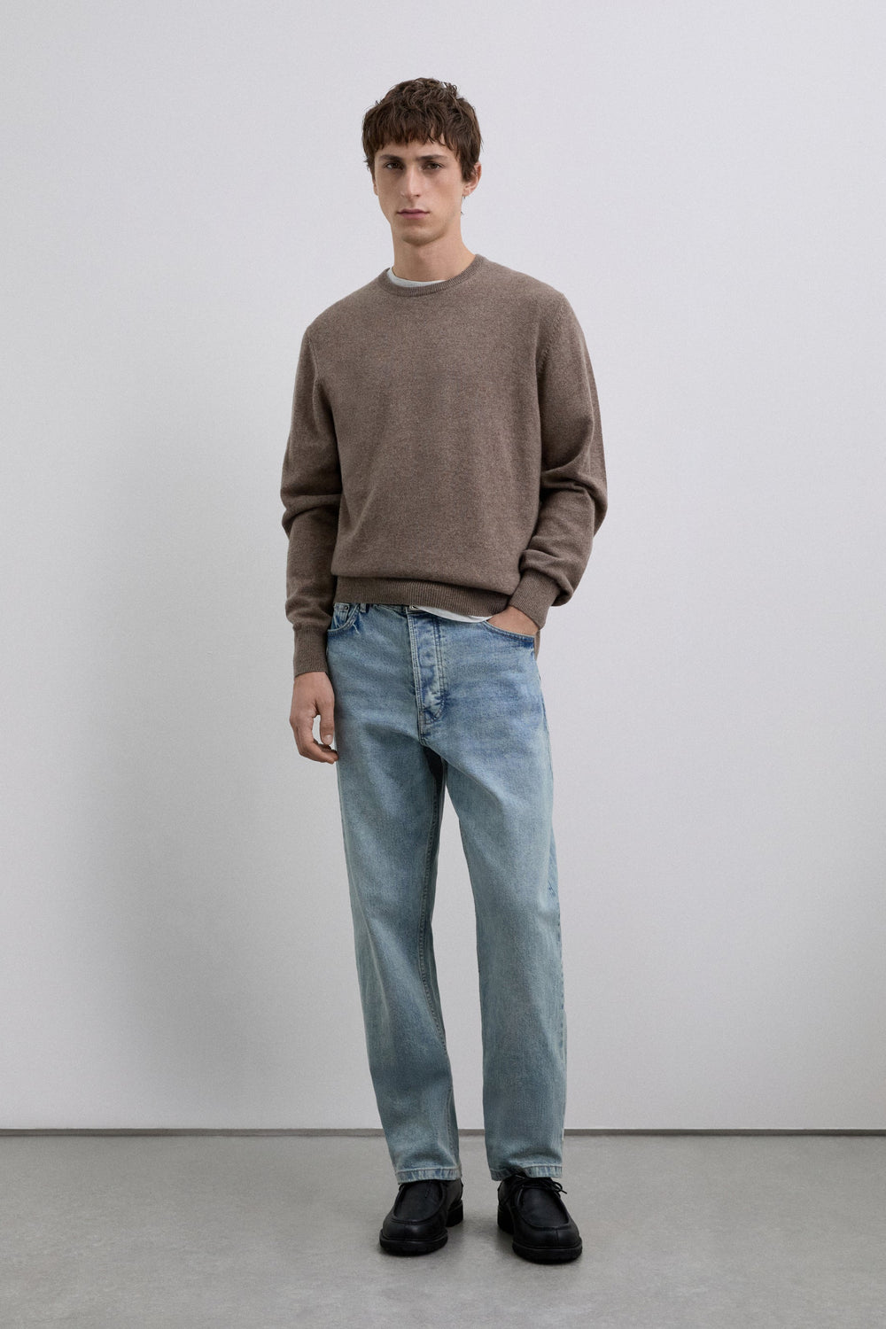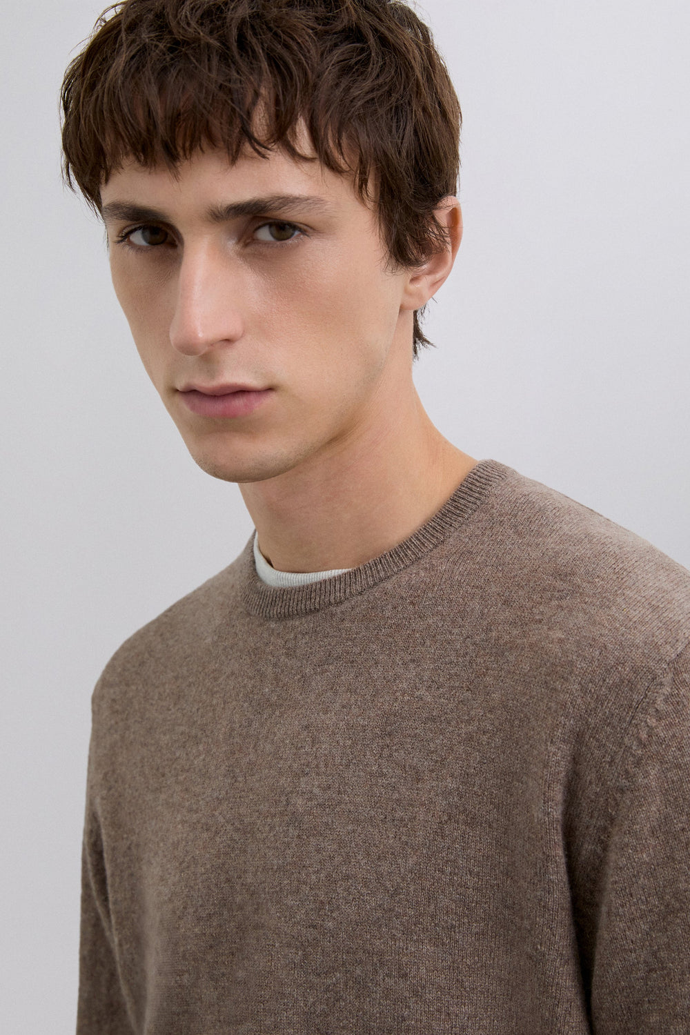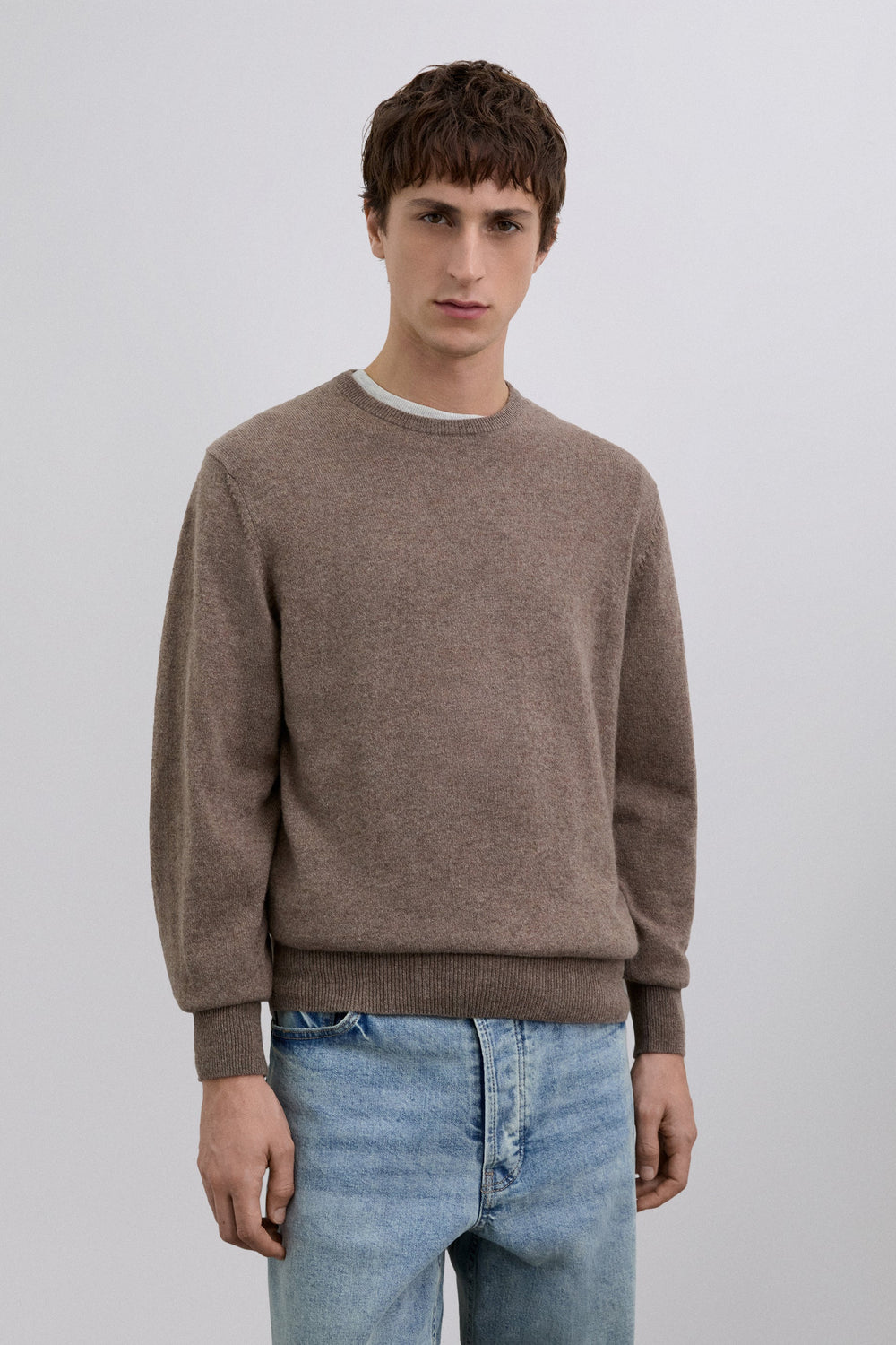 Camisola confeccionada em 100% caxemira. Corte Regular Fit. Gola redonda. Manga comprida.