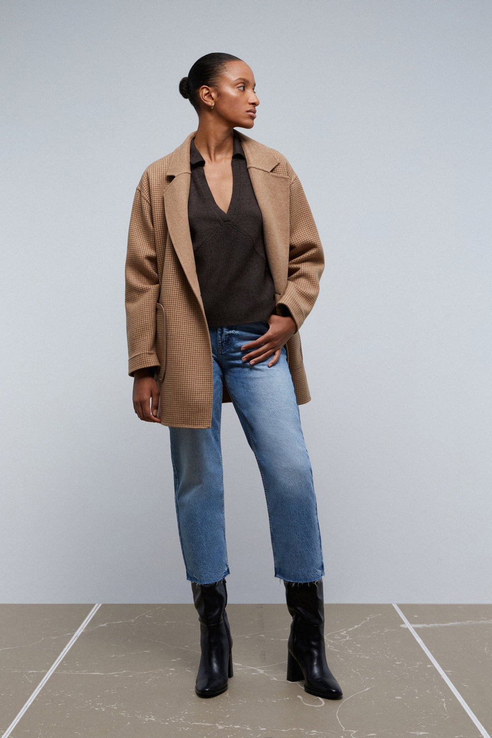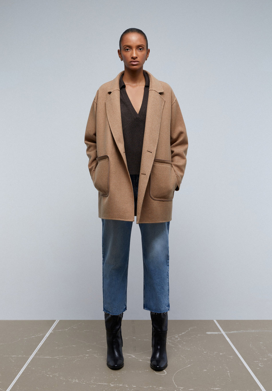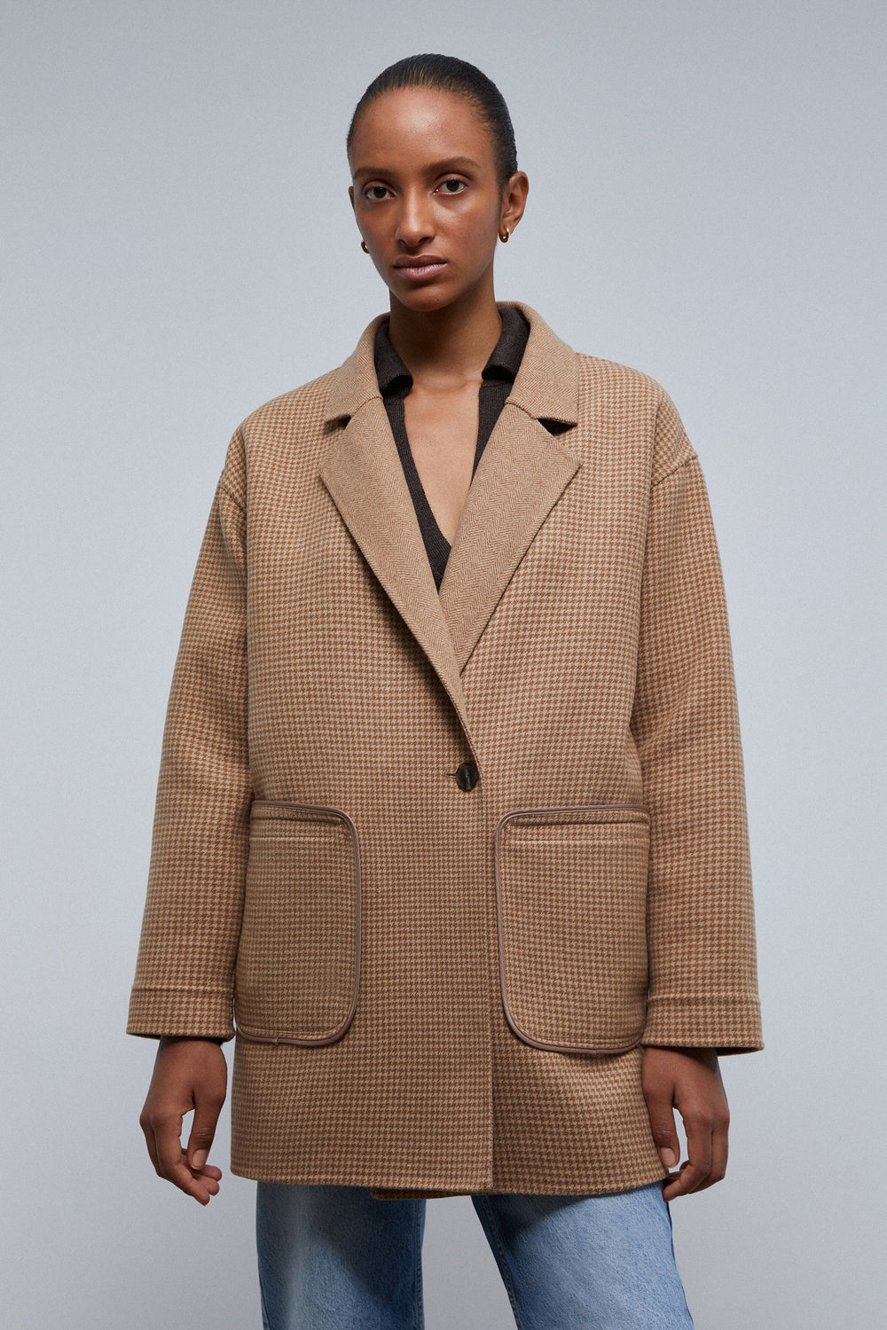 - Manga comprida com dobra de pata de galo