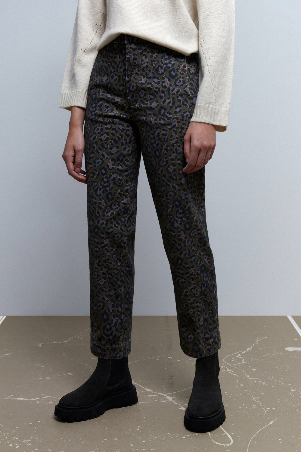 Calças chinos com estampado animal.