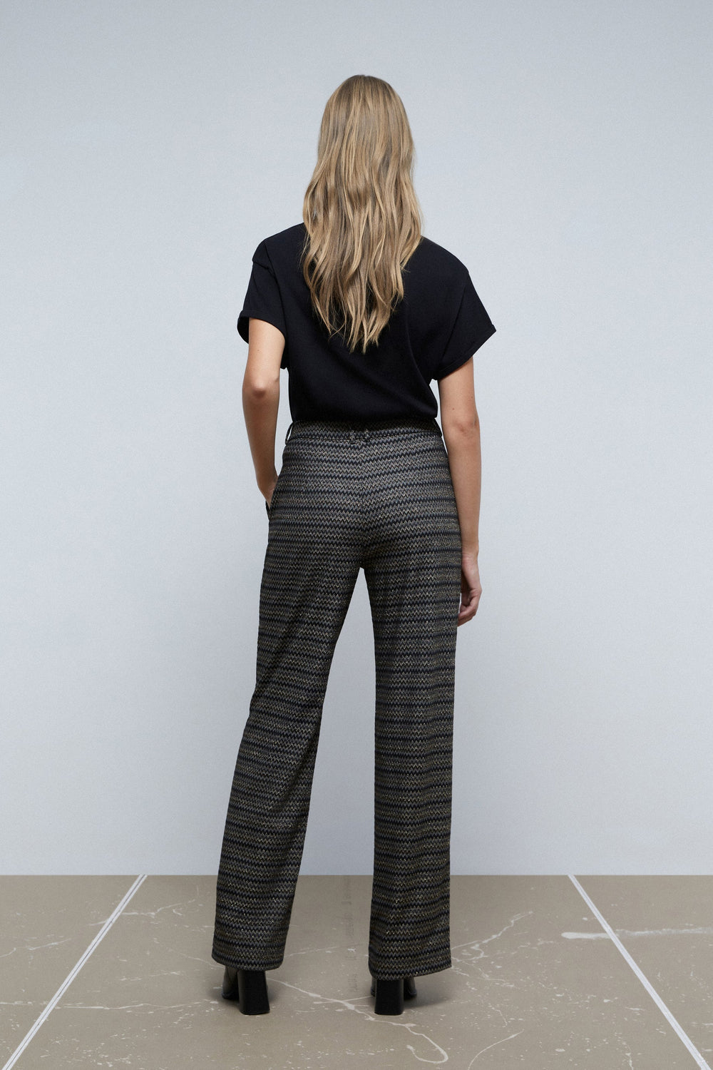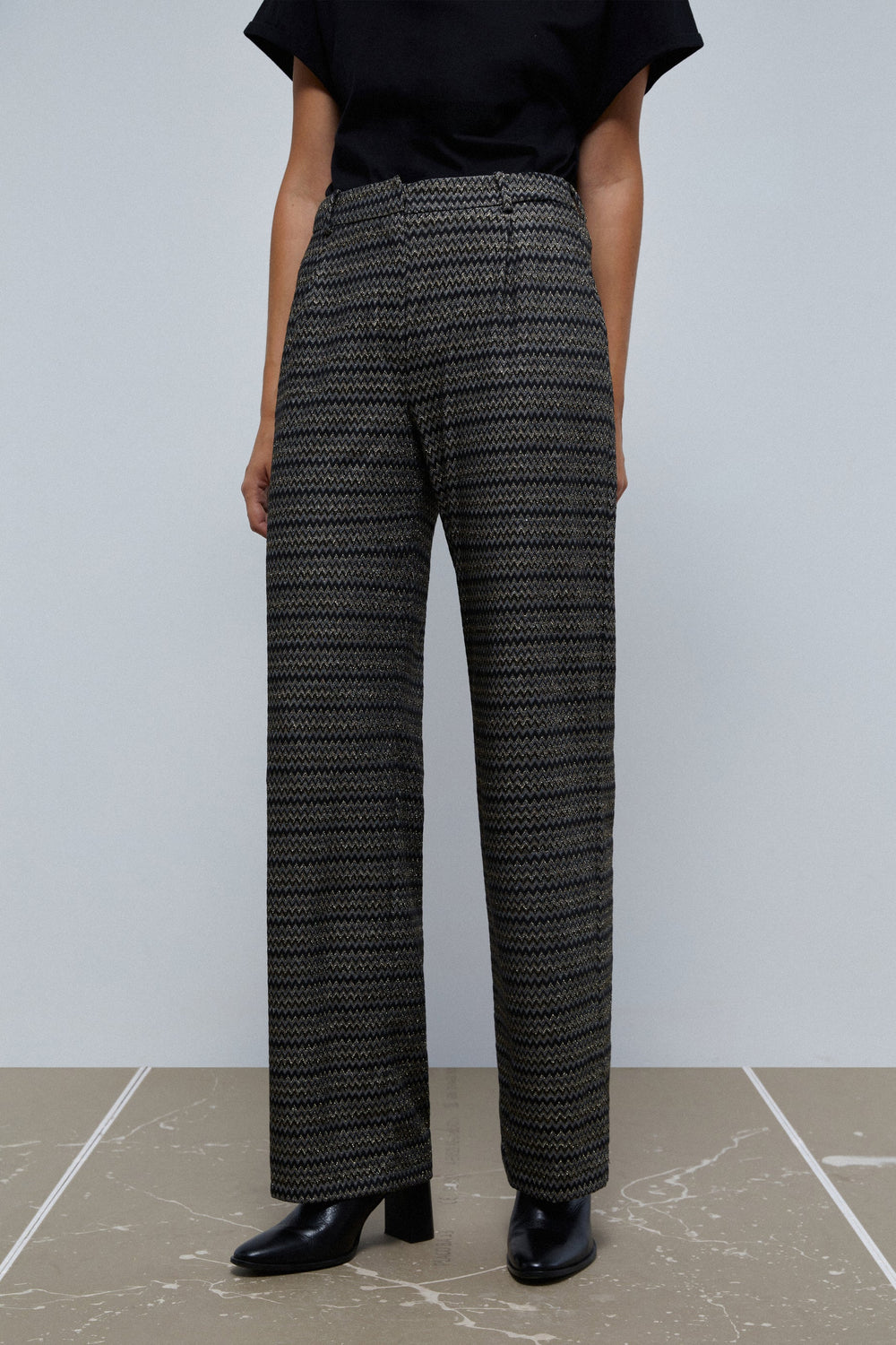 CALÇAS ZIGUEZAGUE EM FIO METALIZADO