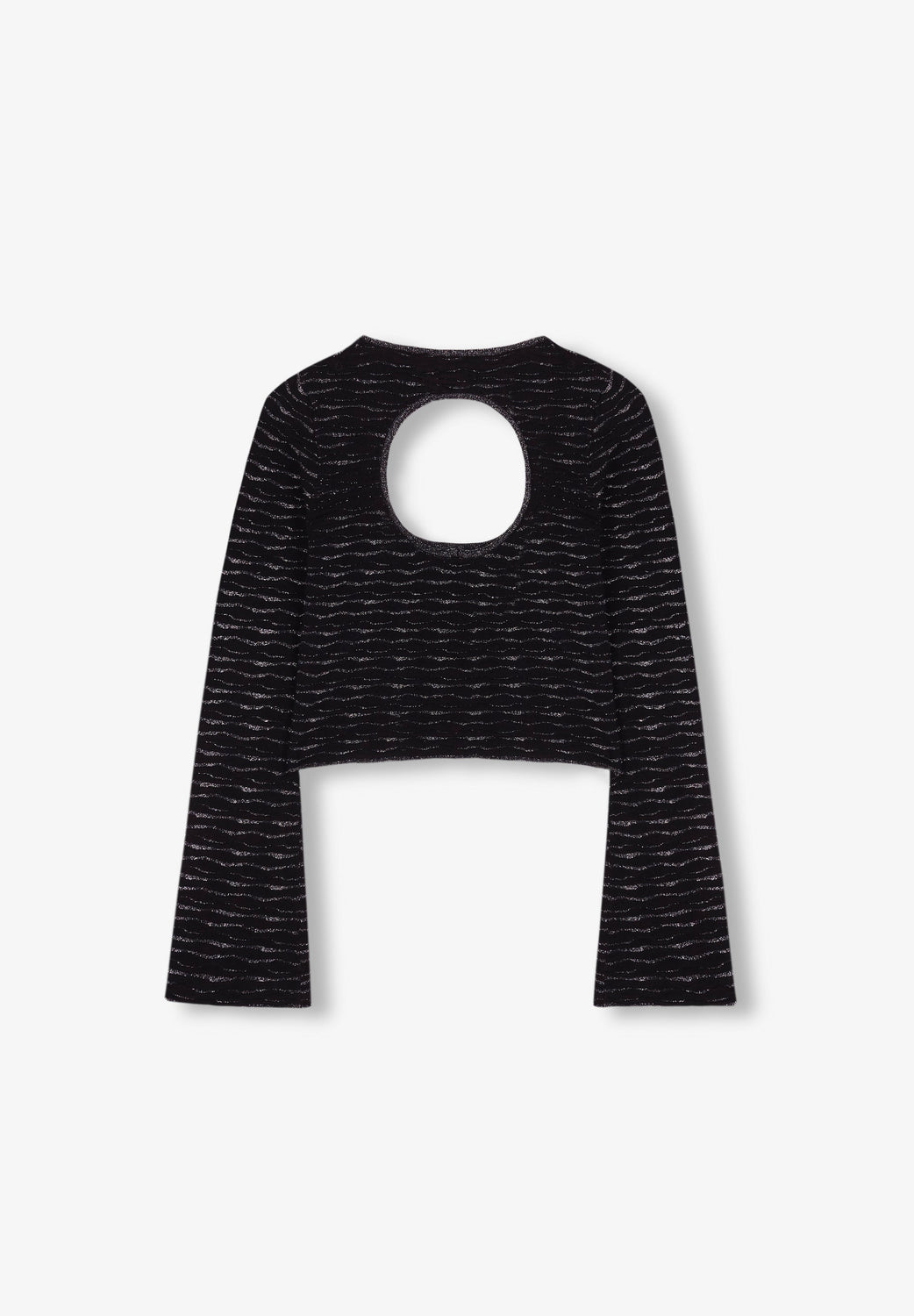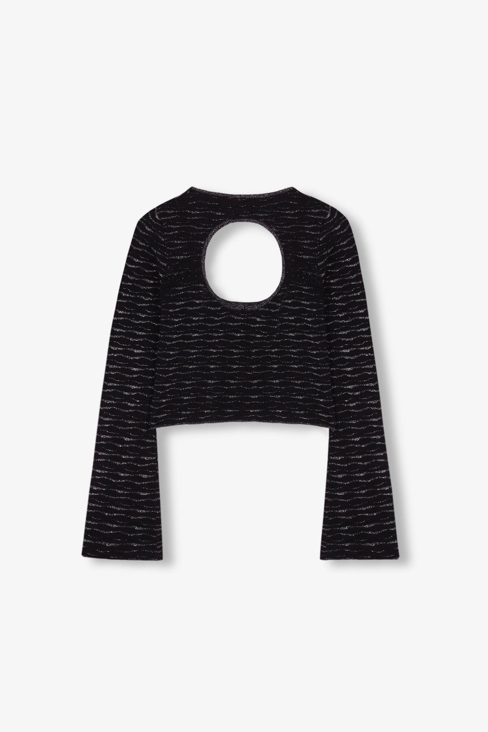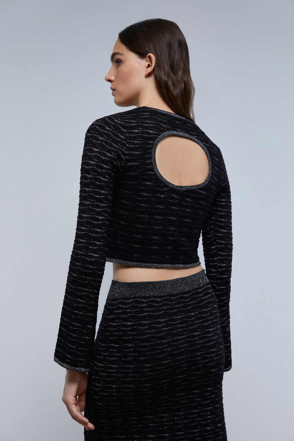 TOP DE MALHA COM FIO METALIZADO E PORMENOR ATRÁS