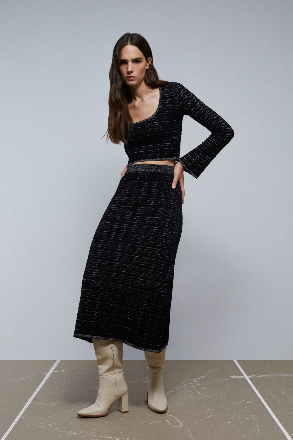 Top de malha com fio metalizado