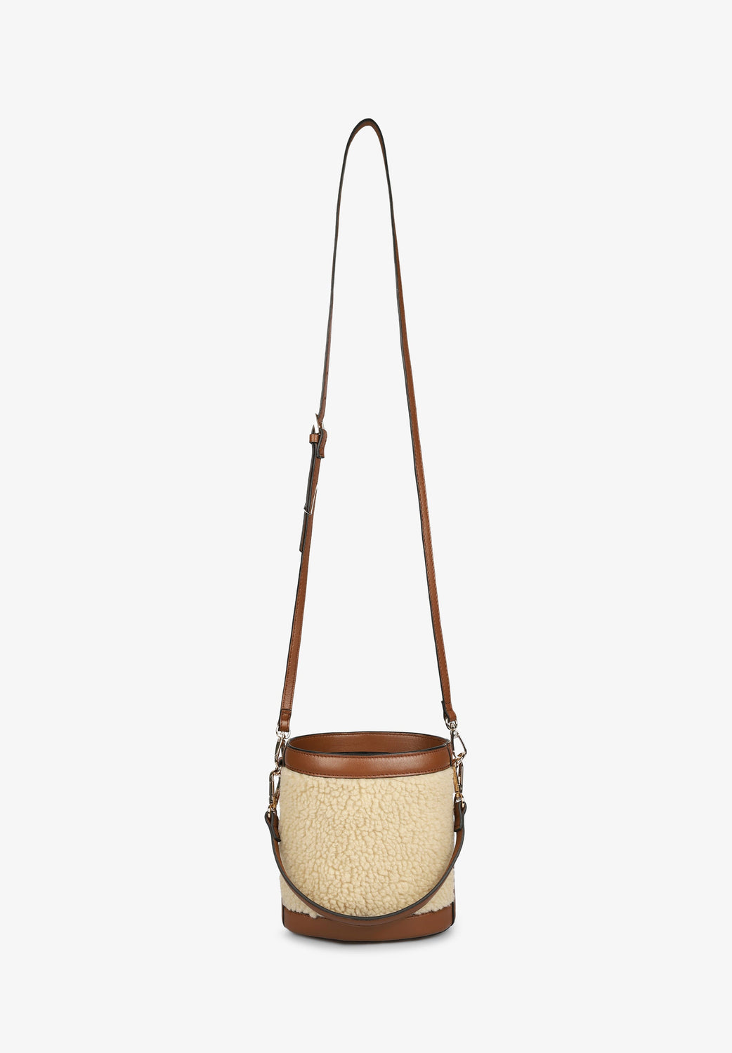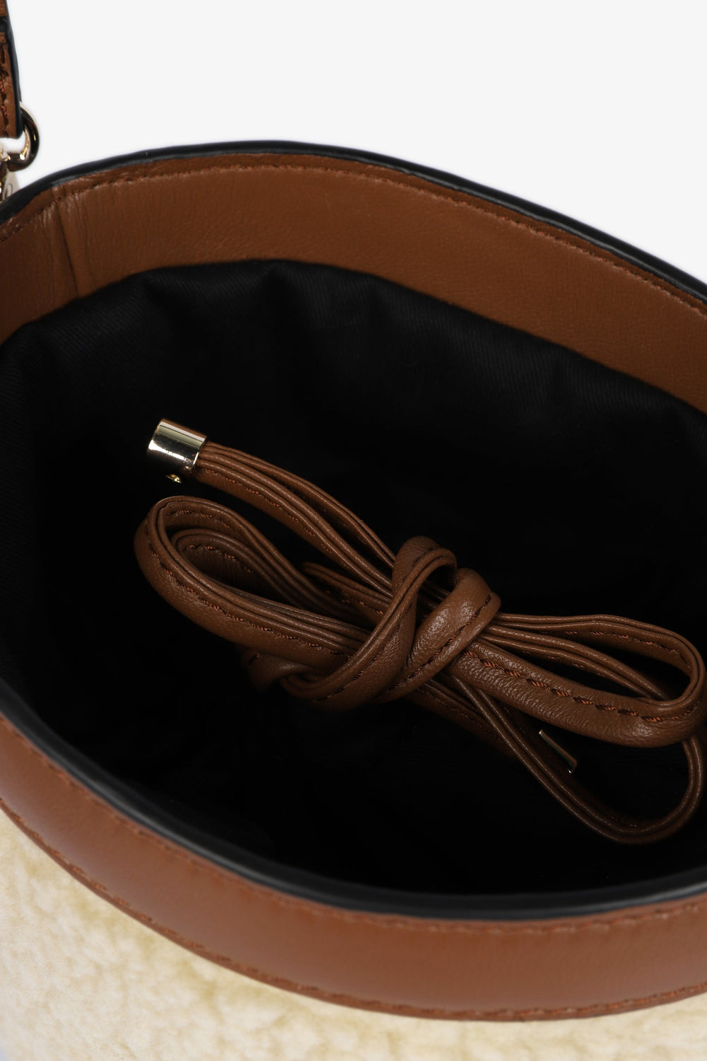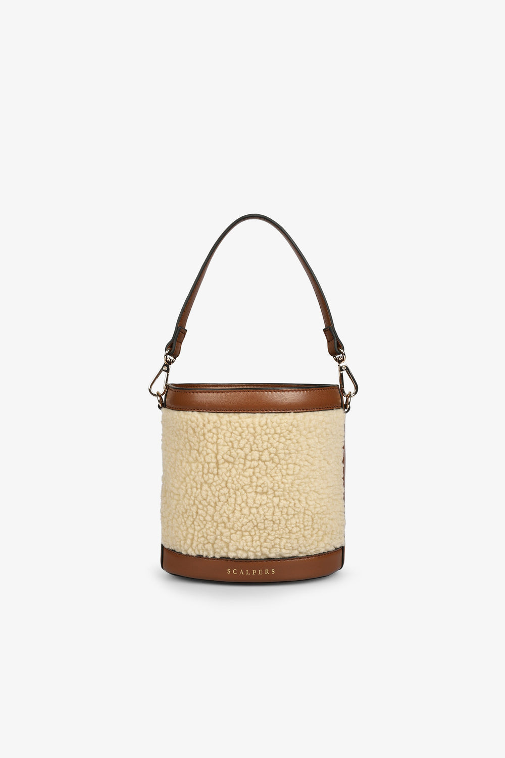 Bolsa tipo cubo com pormenor em pelo encaracolado