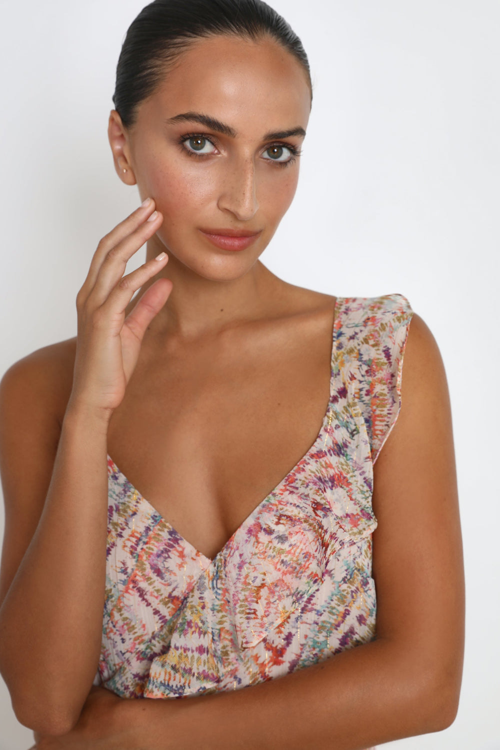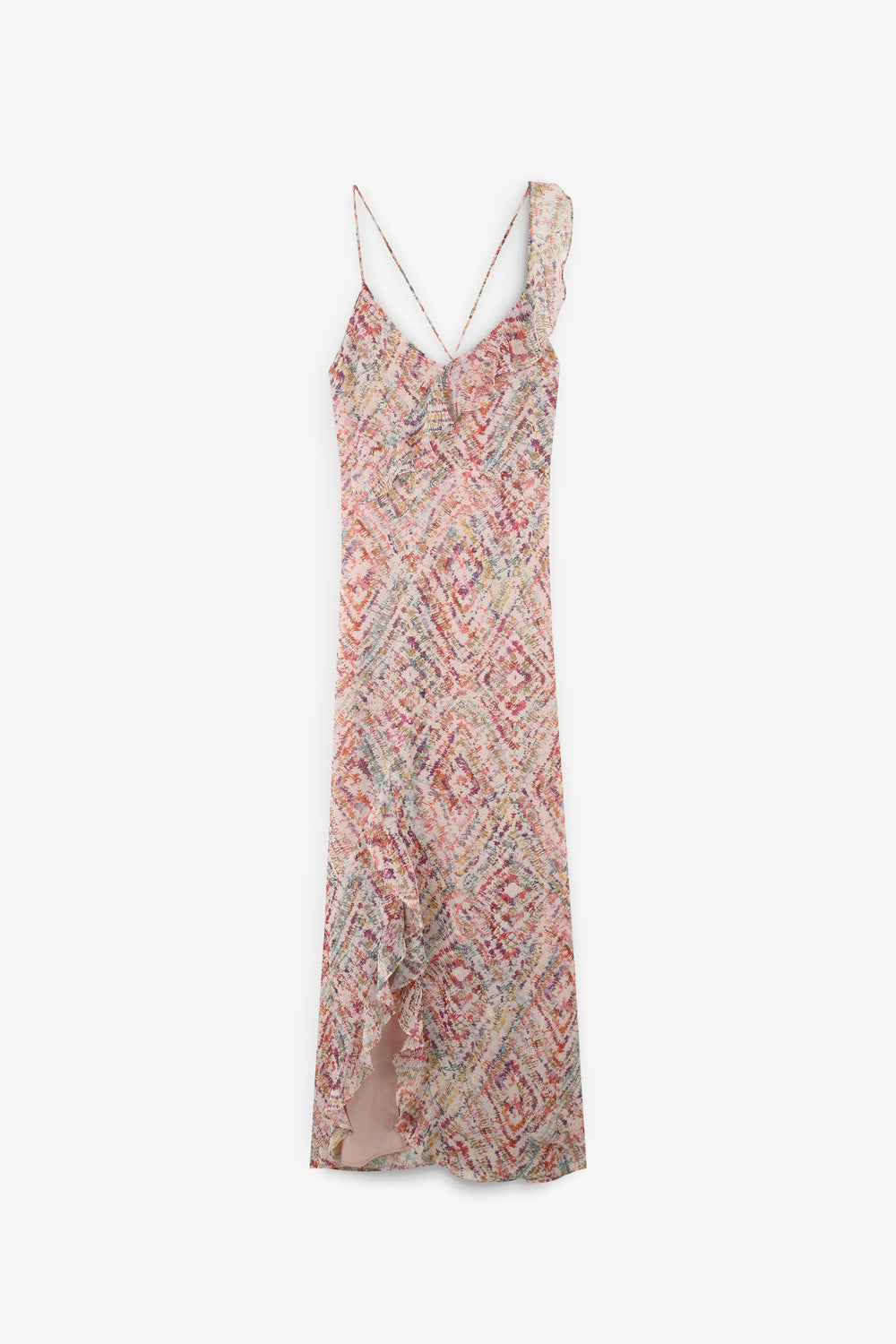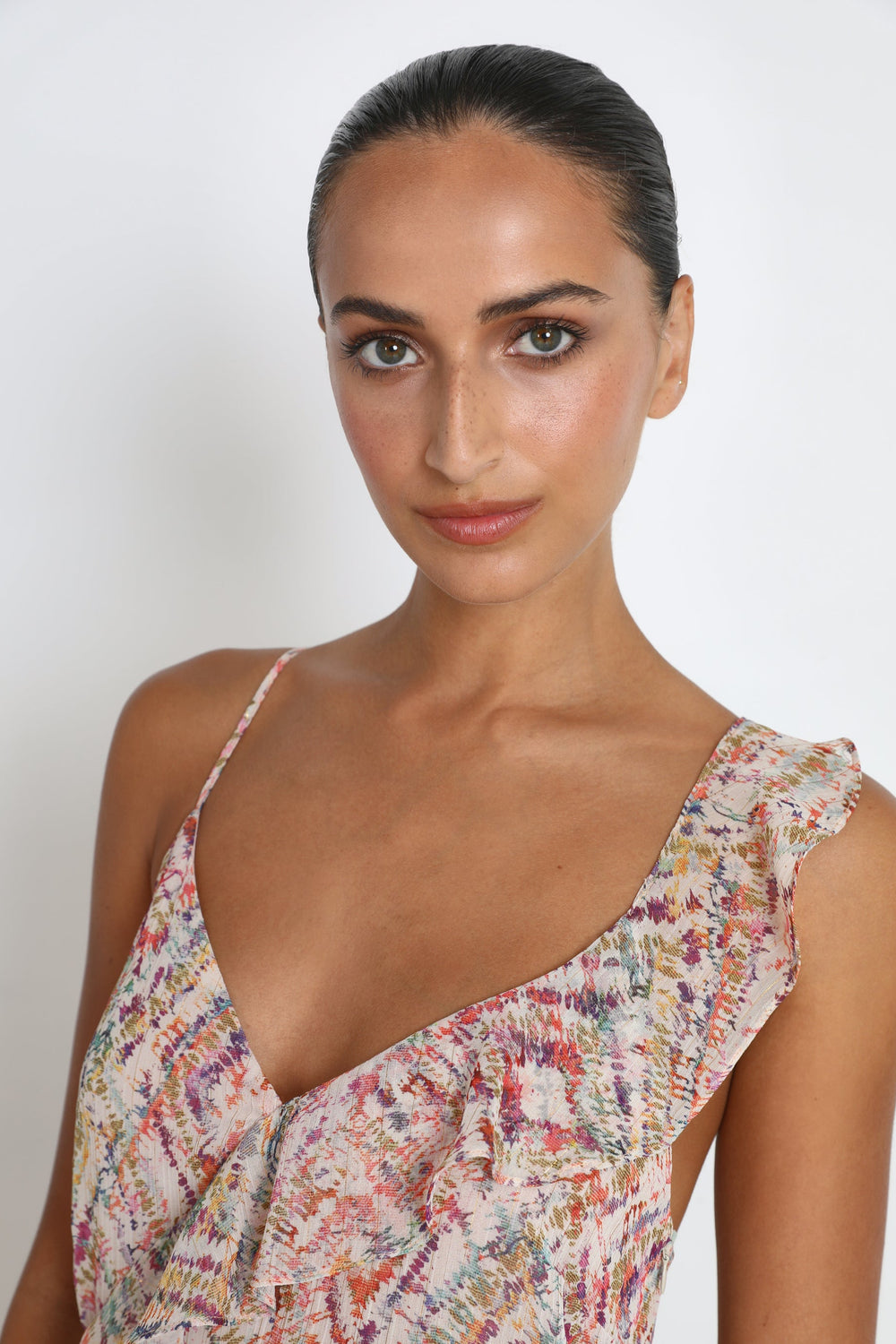 - Alças finas com pormenor de folho