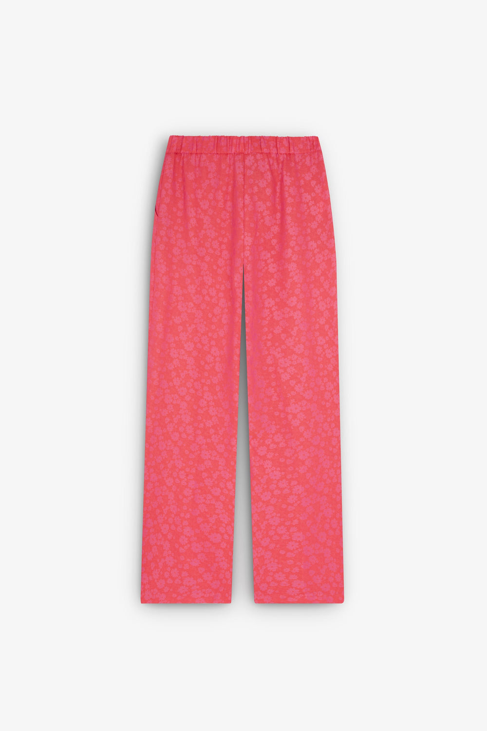 Calças em tecido jacquard com flores.