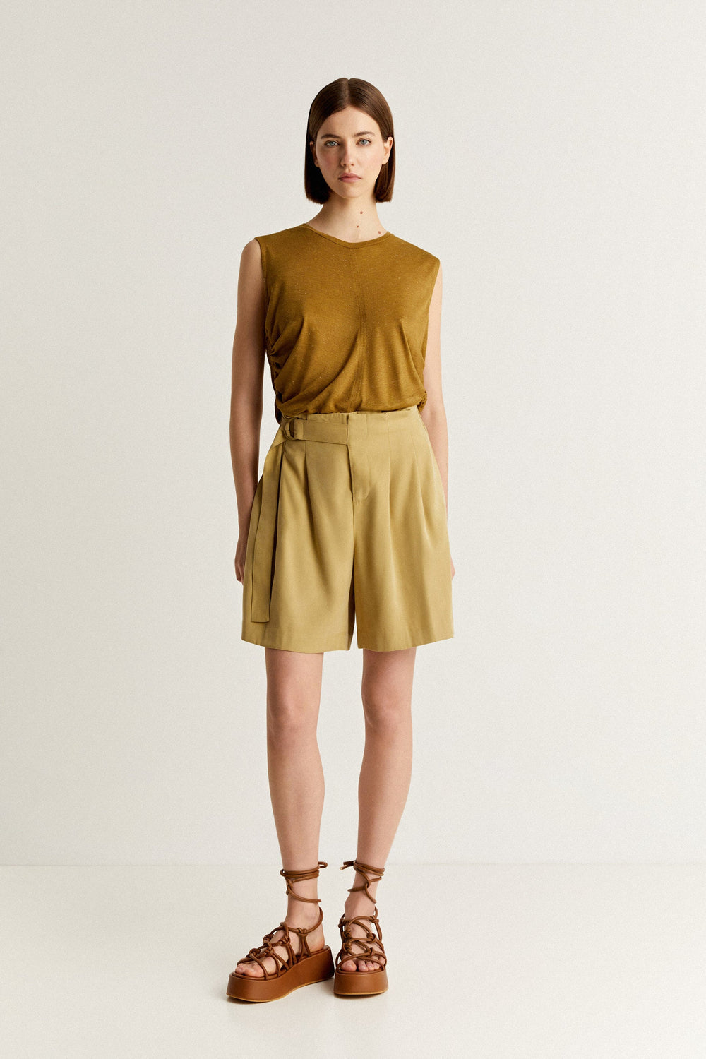 T-shirt com pormenor de franzidos laterais ajustáveis com cordão.