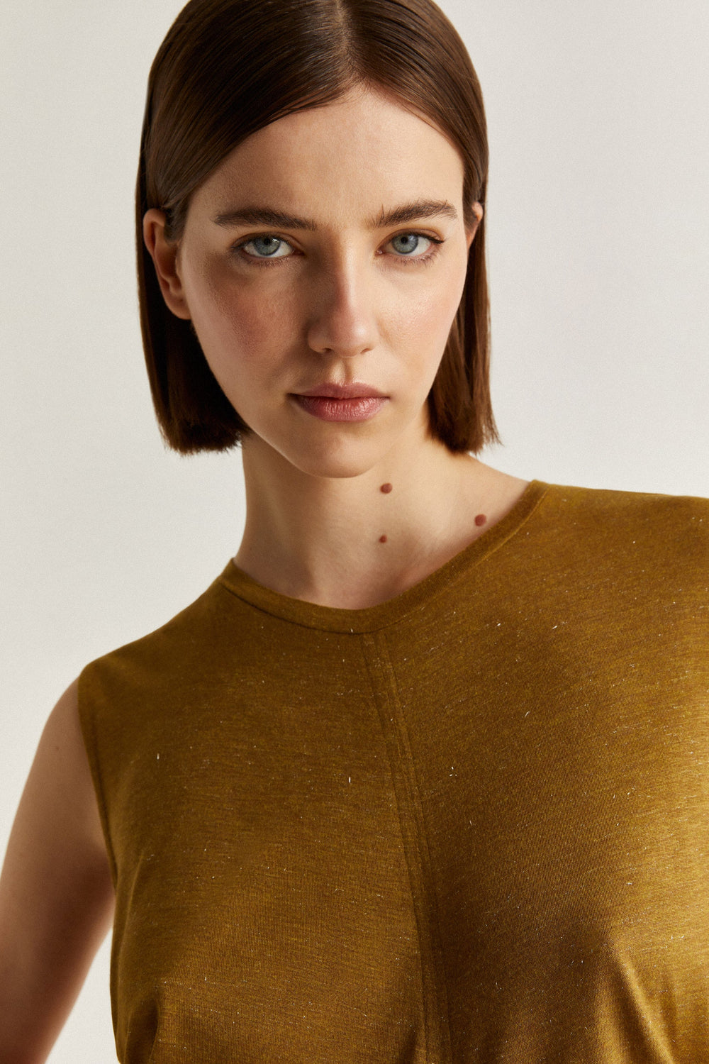 T-SHIRT EM FIO METALIZADO E FRANZIDO LATERAL