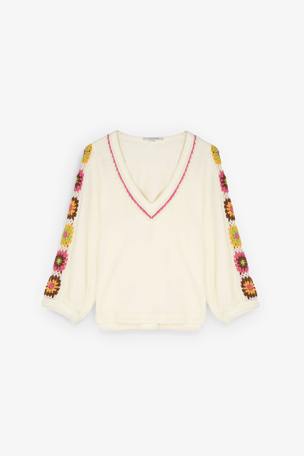 SWEATSHIRT COM PORMENOR DE CROCHET NA MANGA