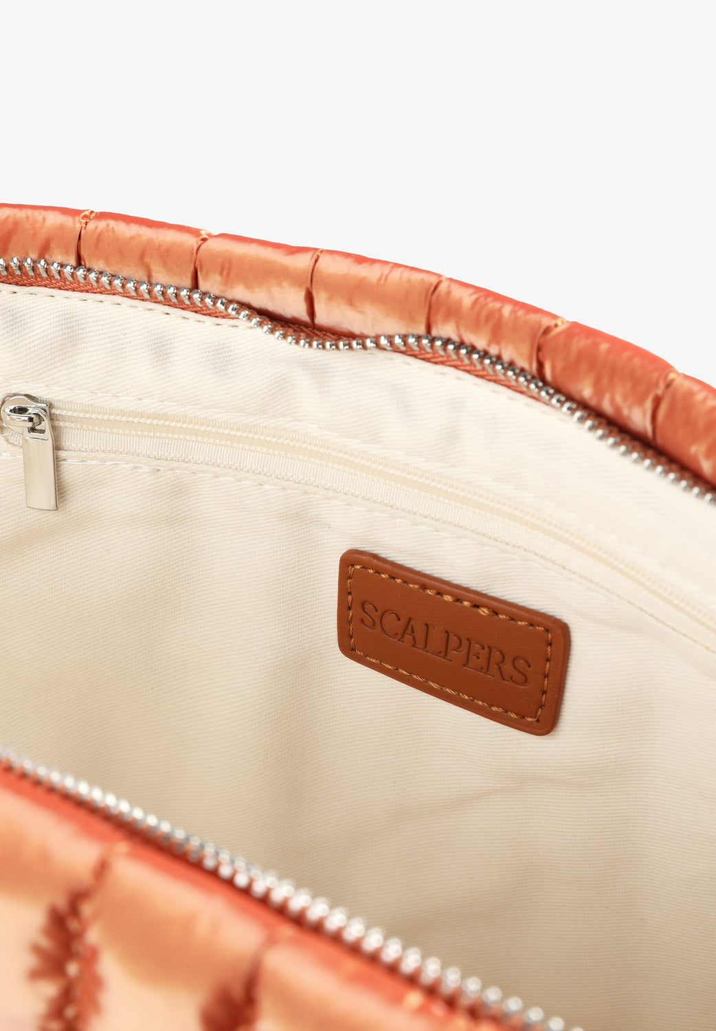 - Bolso interior com botão de pressão oculto