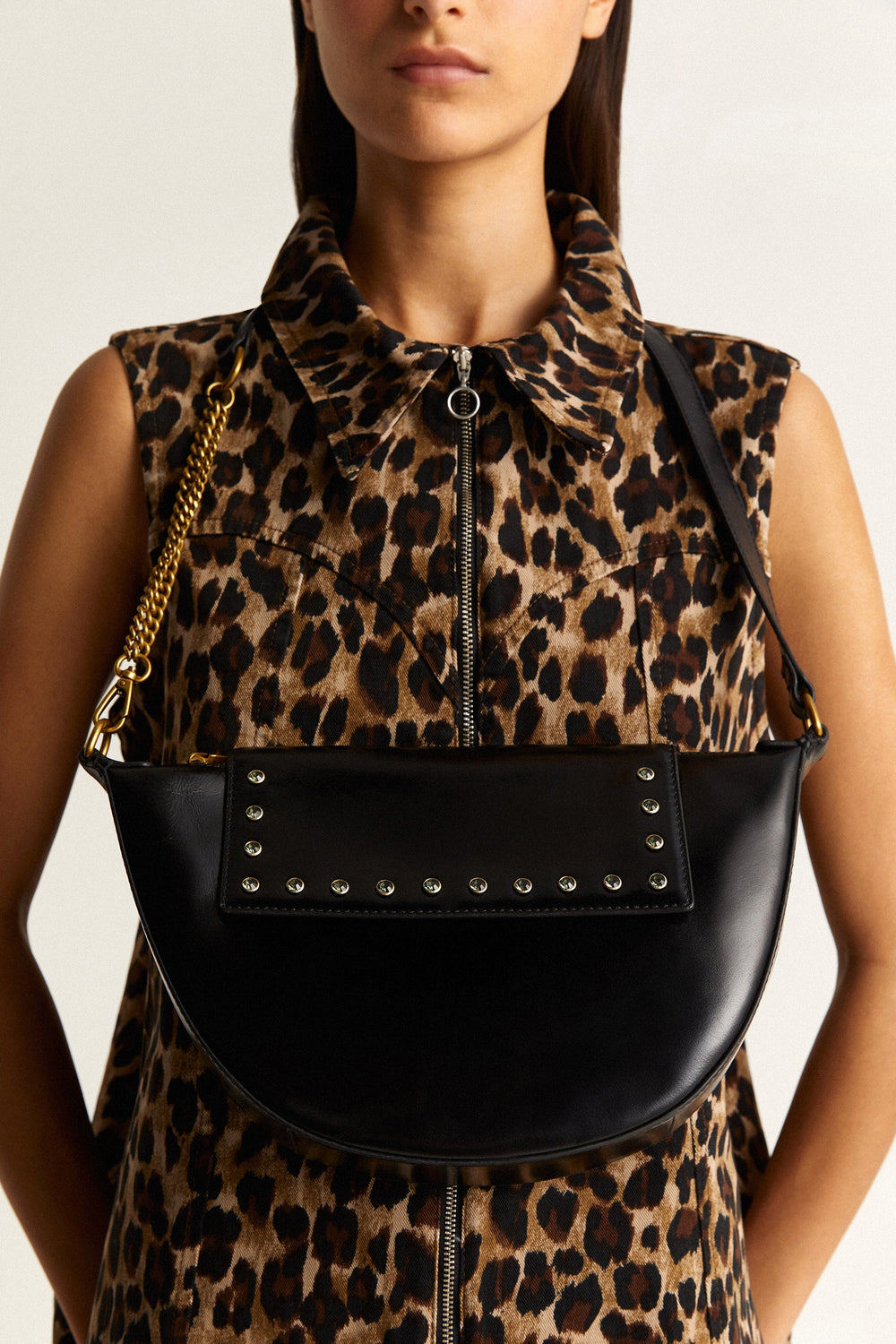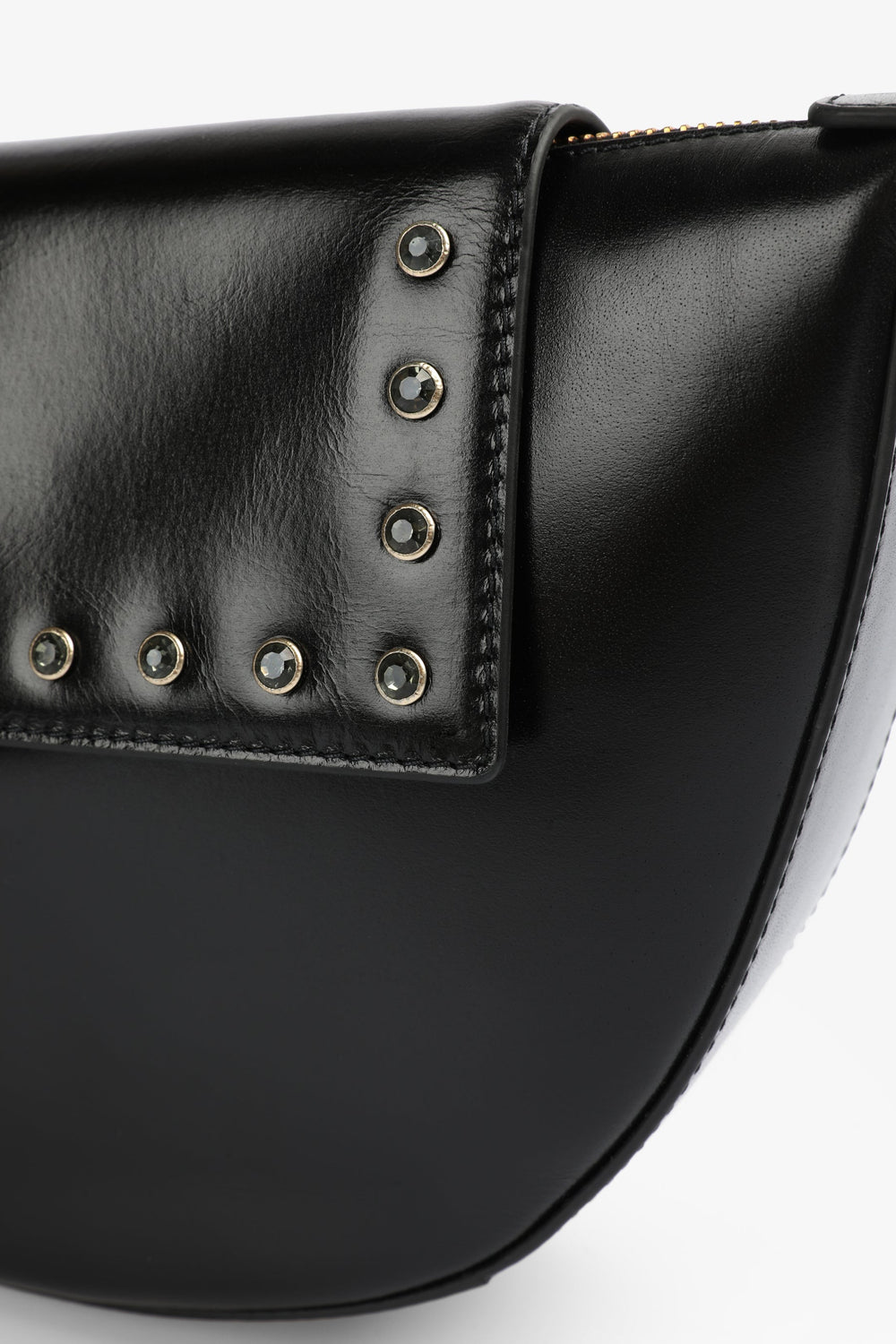 BOLSA EM PELE MEIA-LUA COM VIDROS