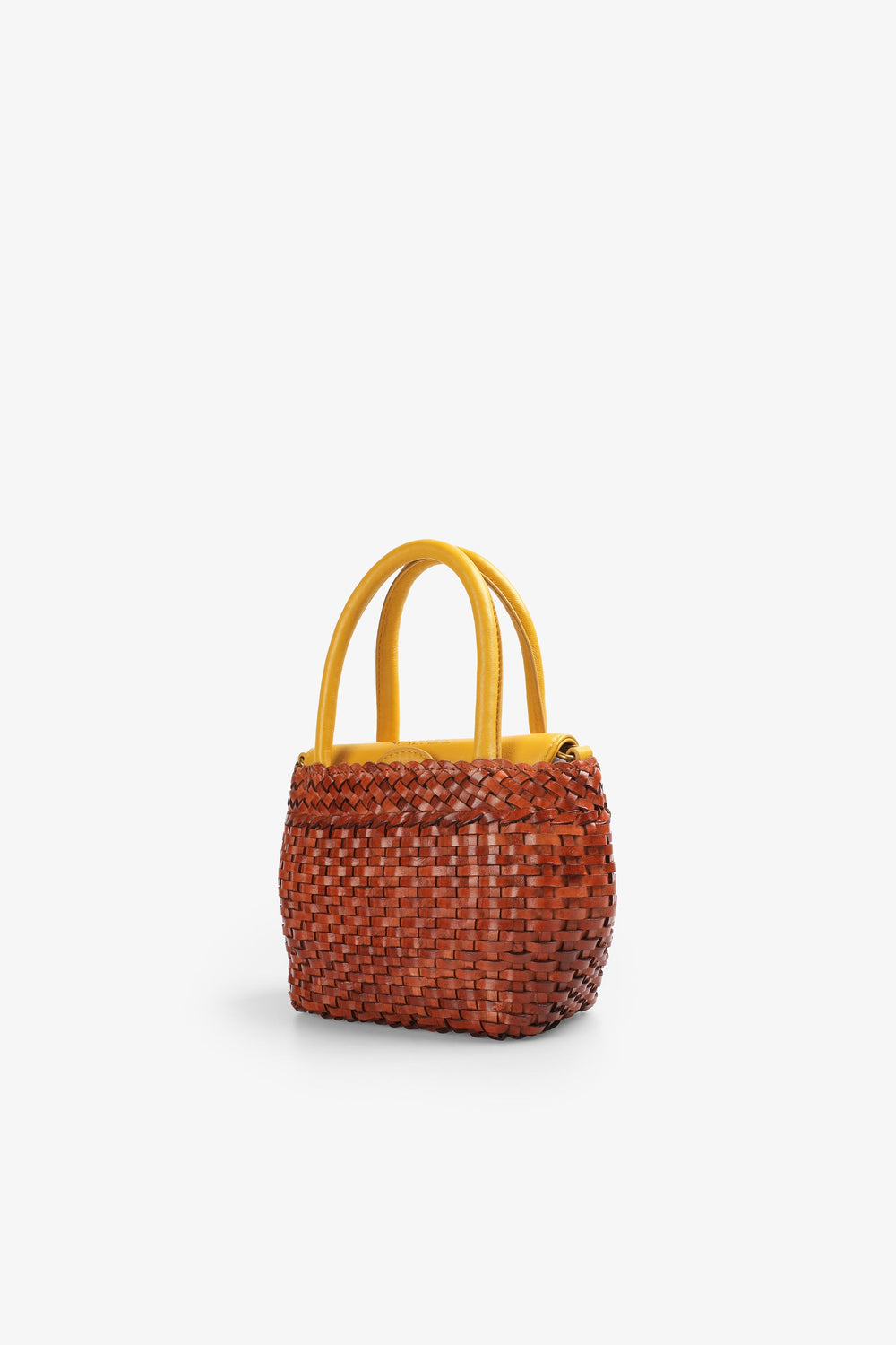 Mini bolsa tipo cesta com saco interior de pele em contraste.