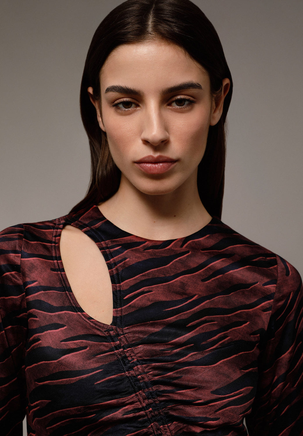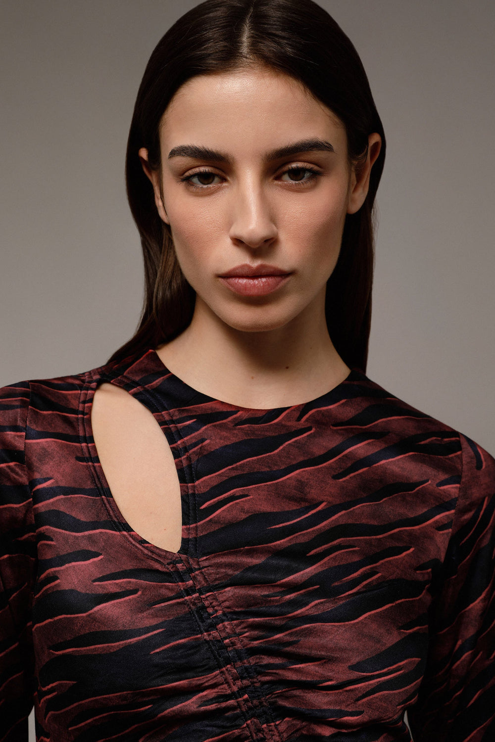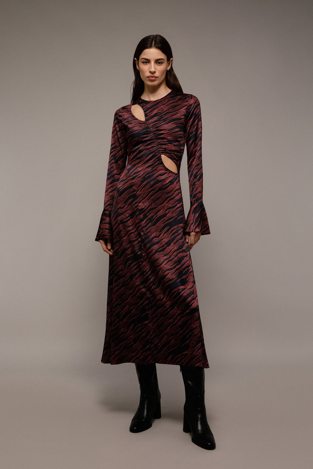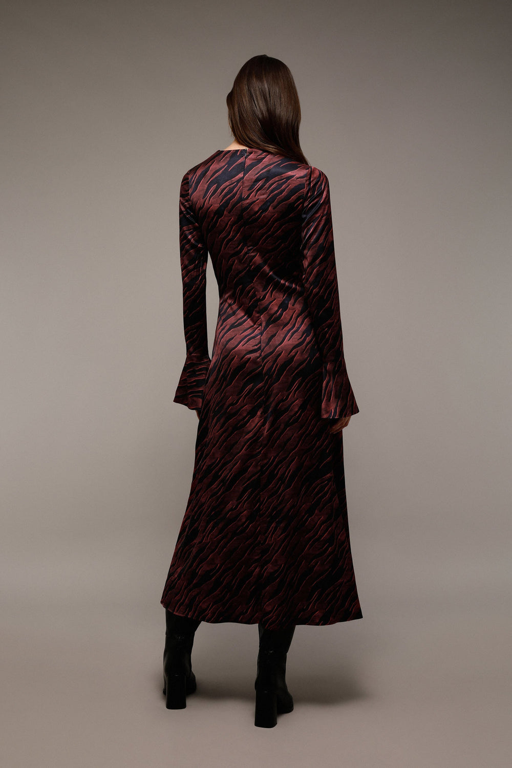 VESTIDO MIDI ACETINADO COM ESTAMPADO ANIMAL