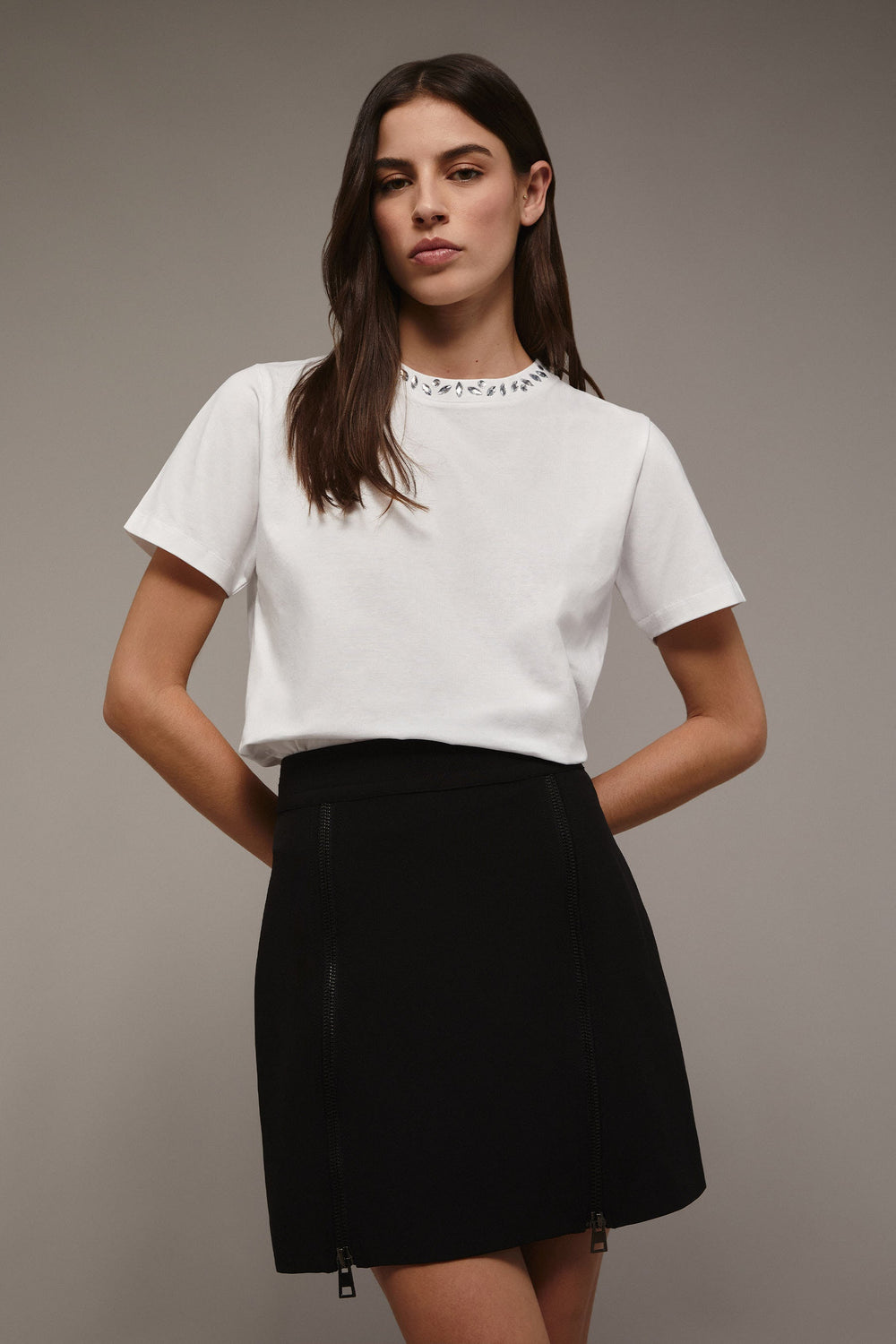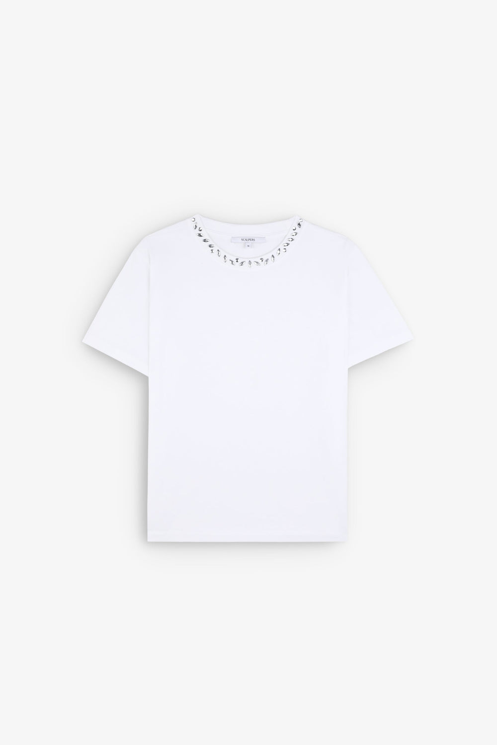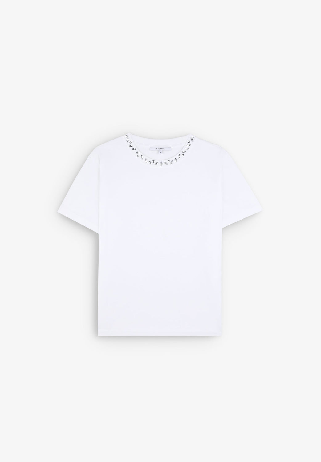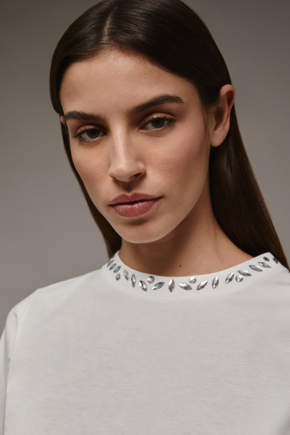 T-SHIRT COM PORMENORES DE CRISTAIS NA GOLA