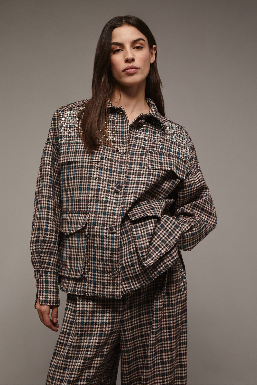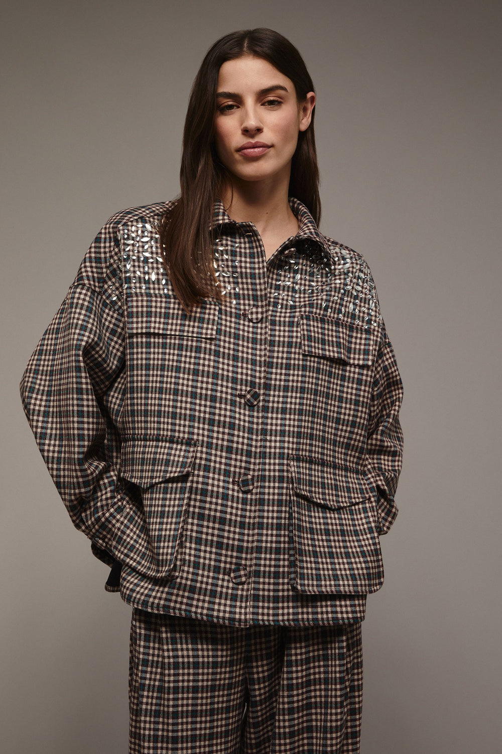 CASACO XADREZ COM PORMENORES EM CRISTAL