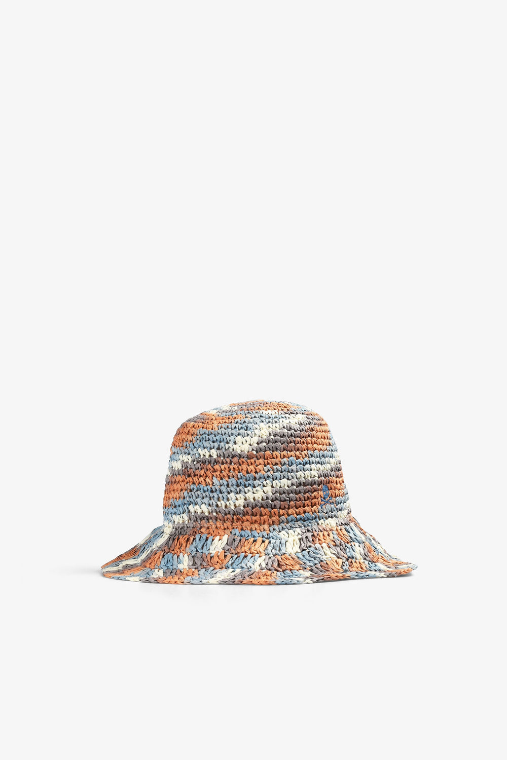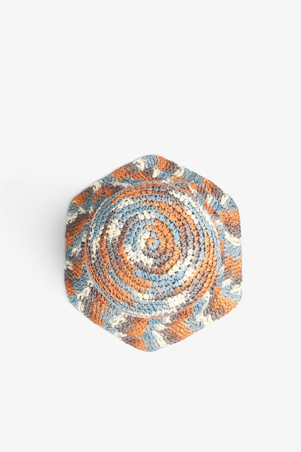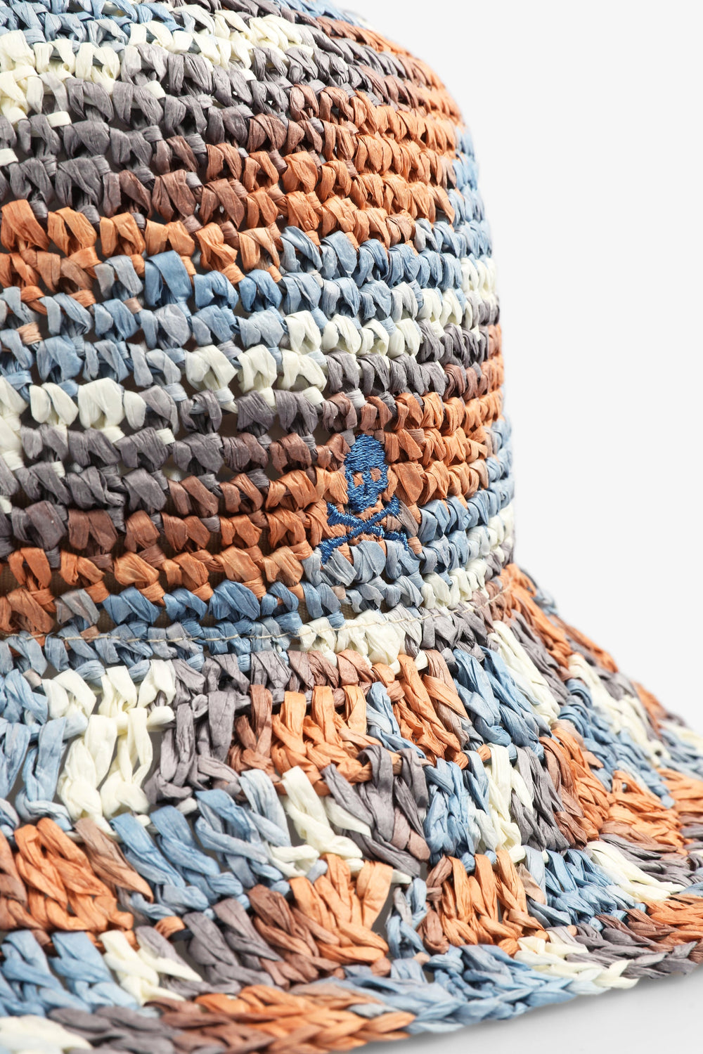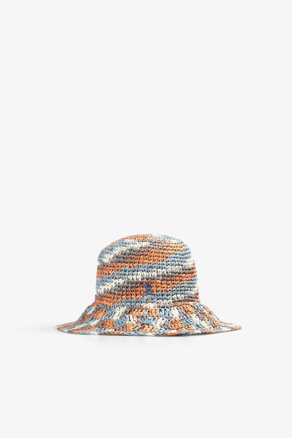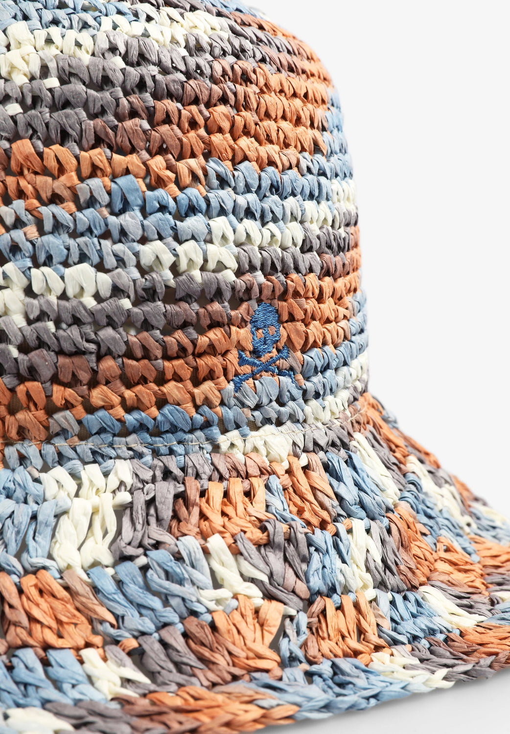 Gorro com pormenor de skull à frente bordada em contraste. Confeção em ráfia.