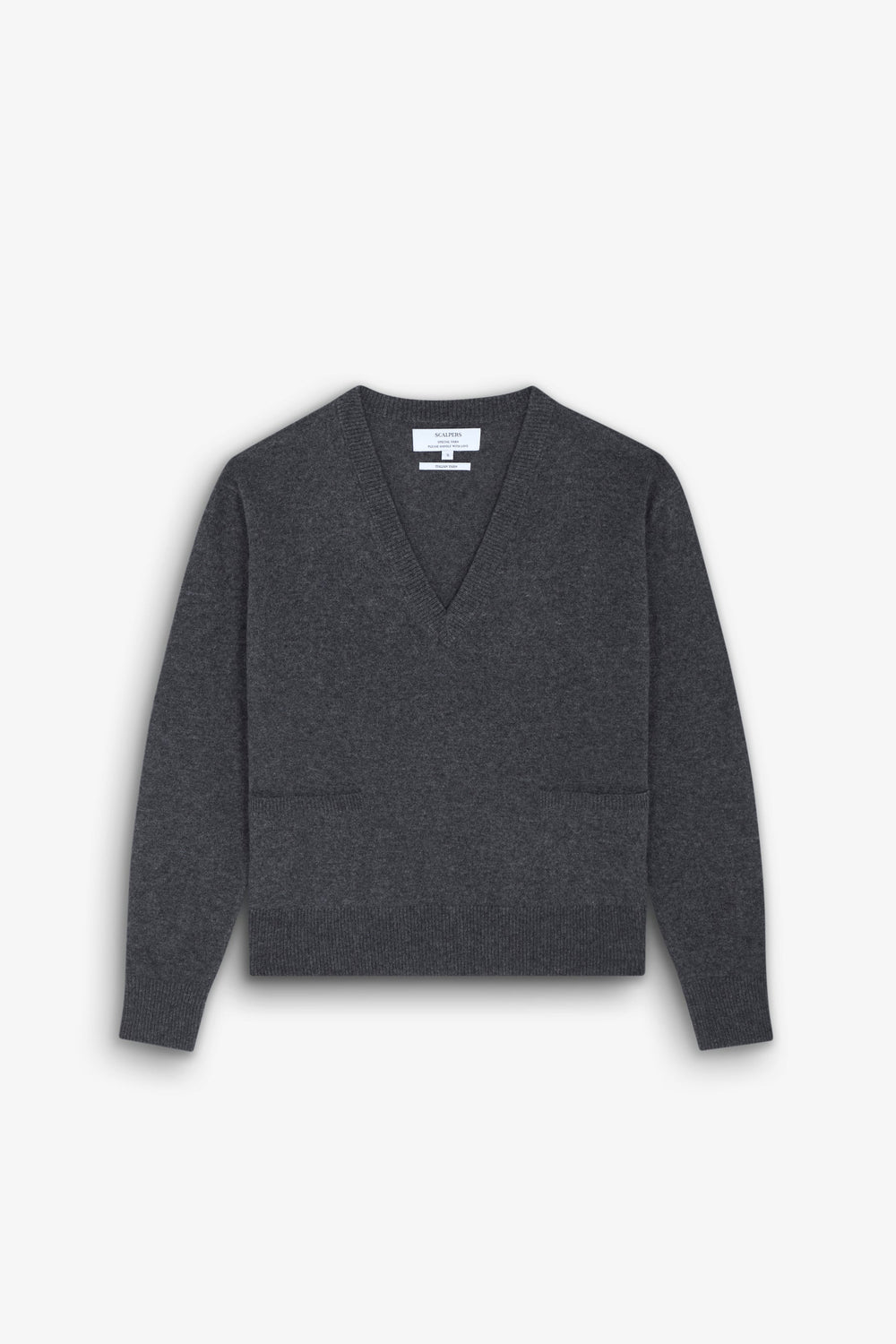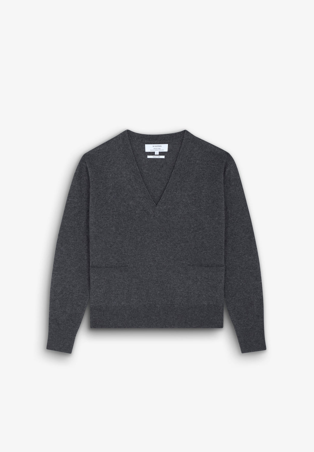 Sweater confecionada em mistura de lã. Regular fit, decote em V e manga comprida. Bolsos frontais.