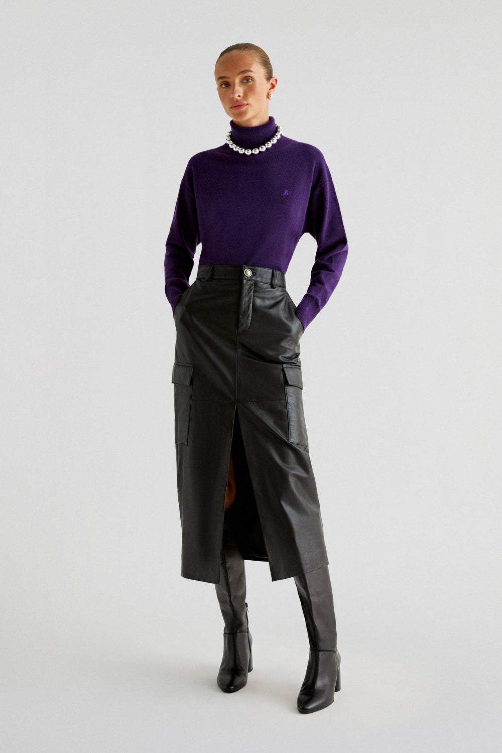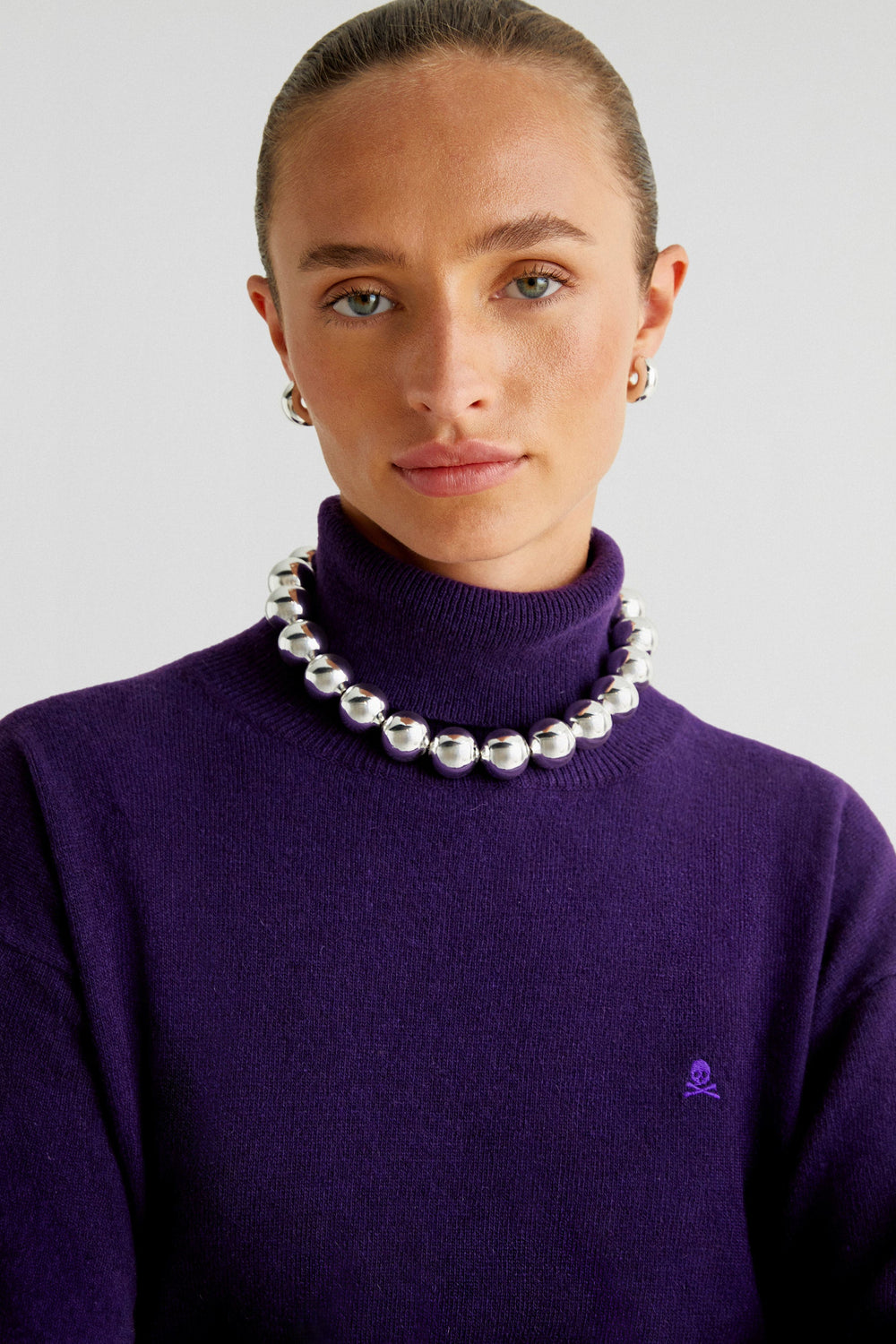 Sweater confecionada em mistura de lã. Regular fit, gola subida e manga comprida. Skull bordada no tom.