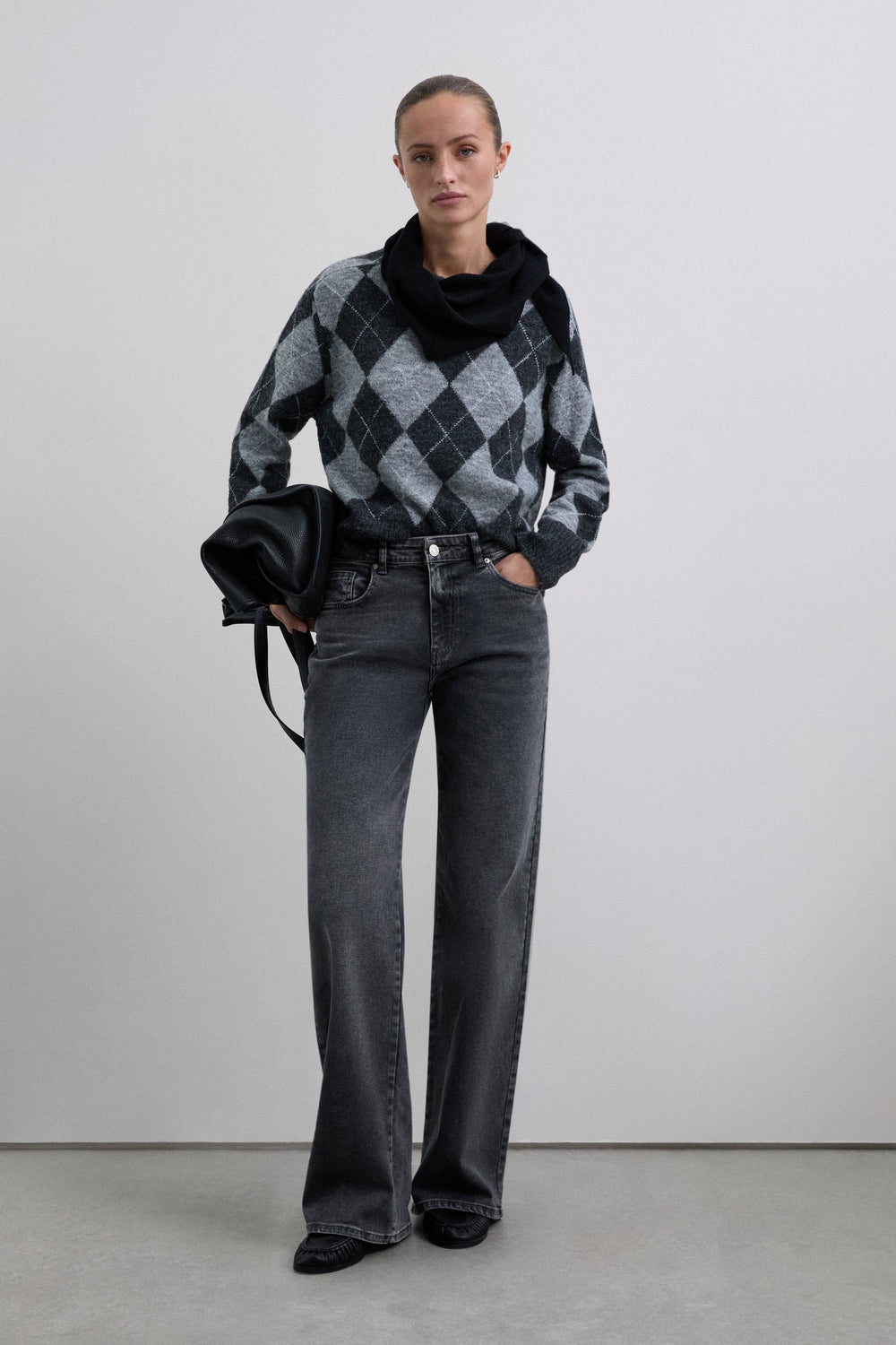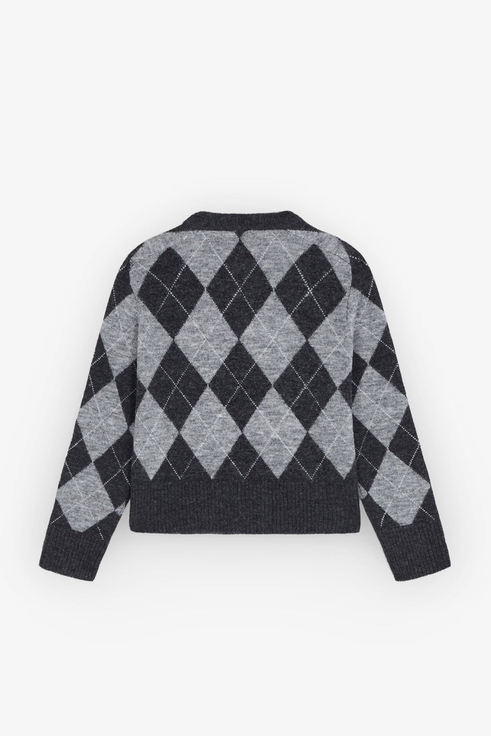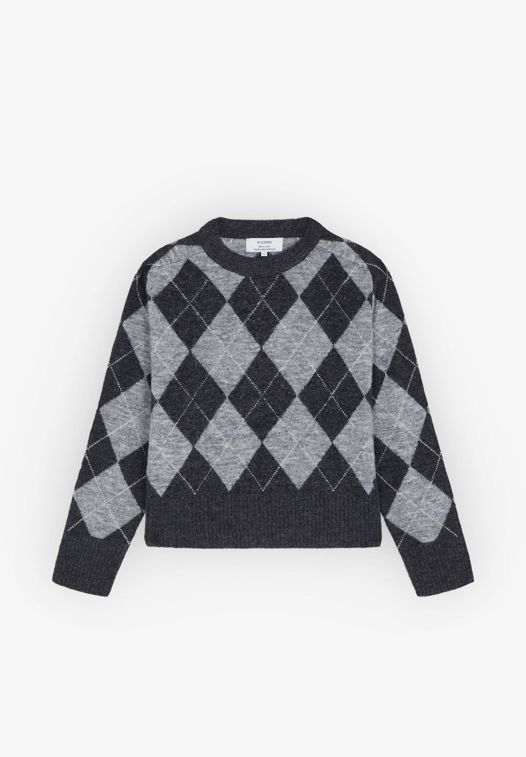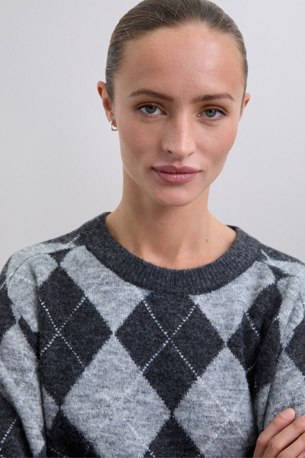 Sweater textura diamante confecionada em mistura com lã. Regular fit. Decote redondo e manga comprida com acabamentos em nervuras.