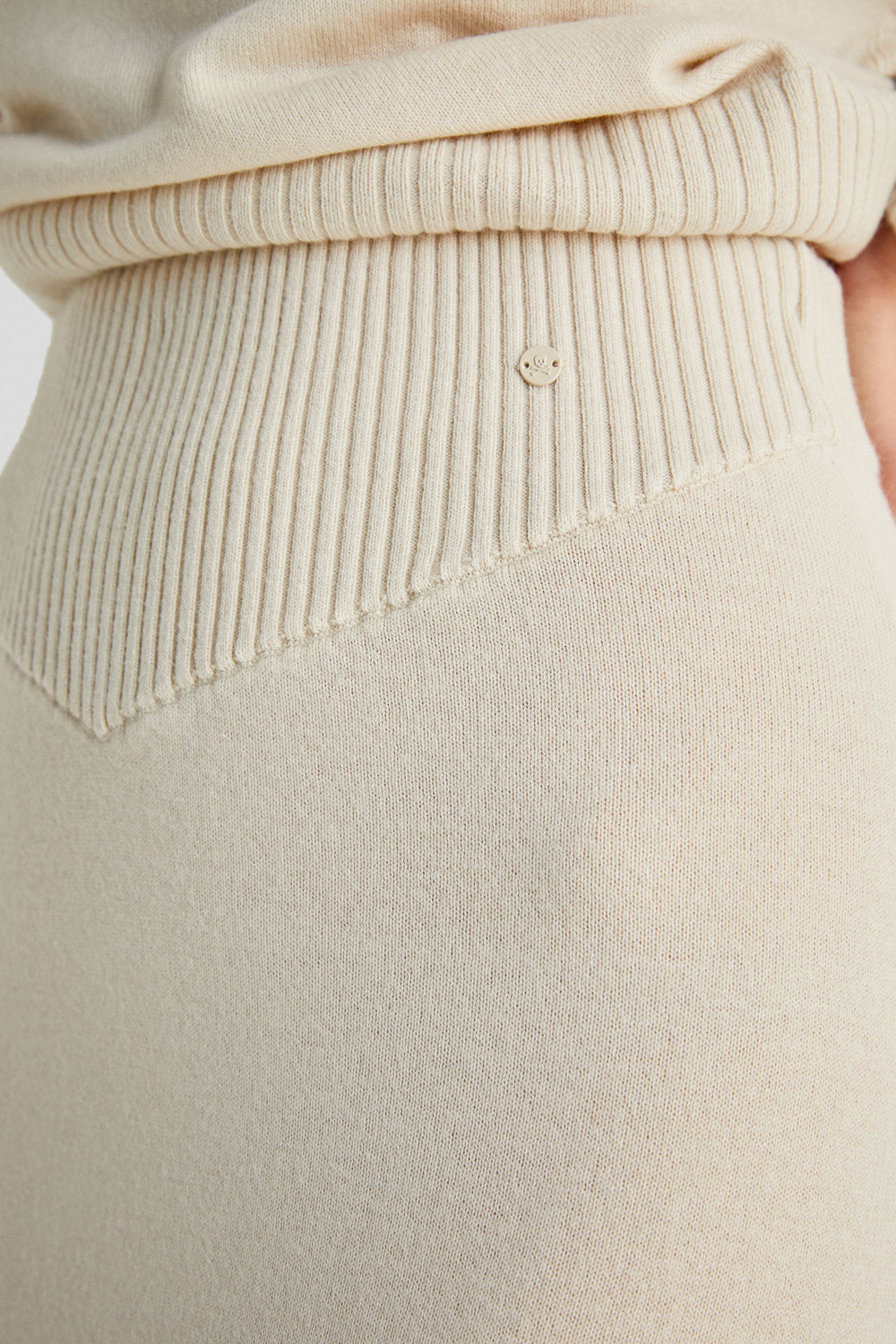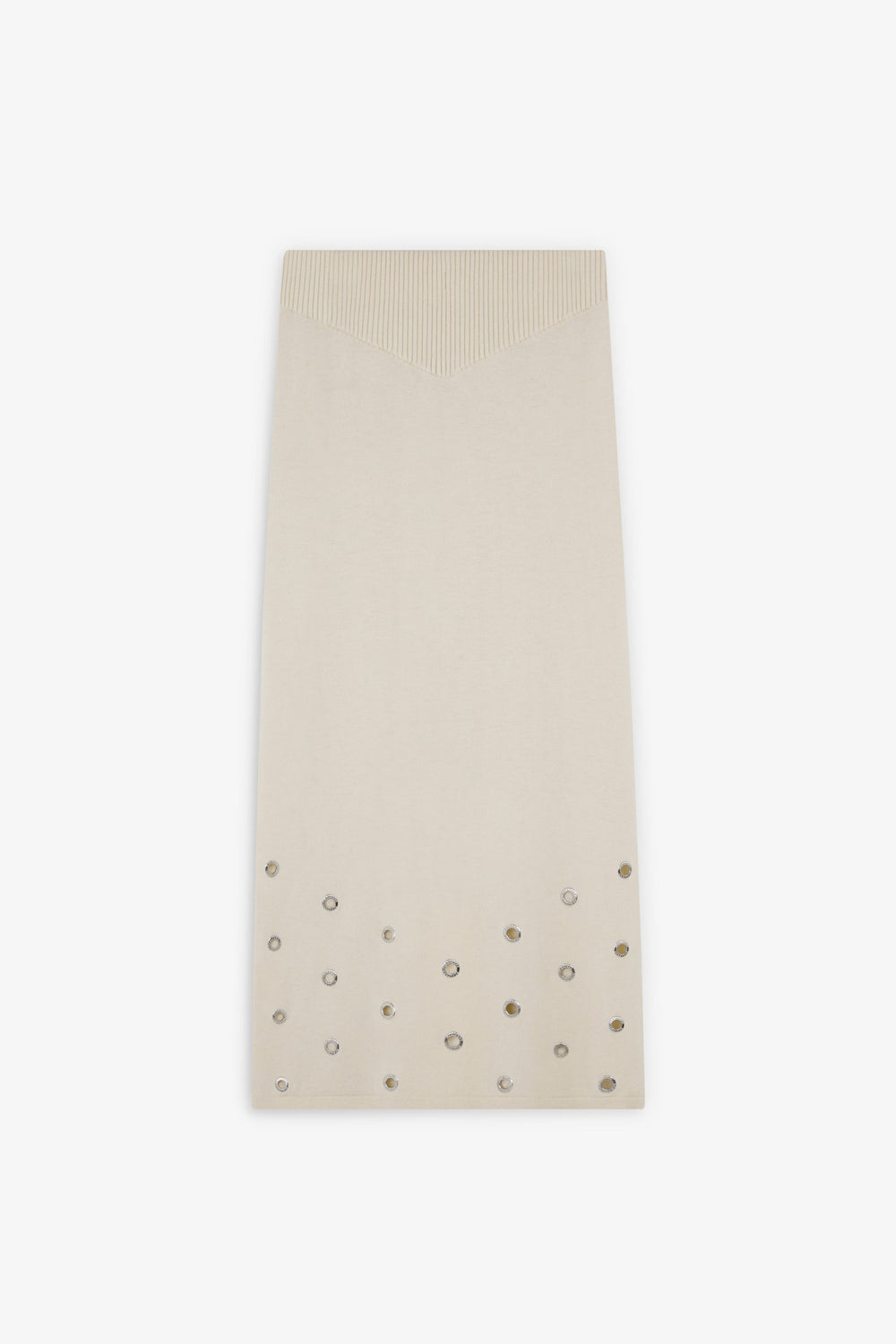 Saia midi de malha confecionada em mistura de algodão. Slim fit e pormenor de ilhós na bainha.