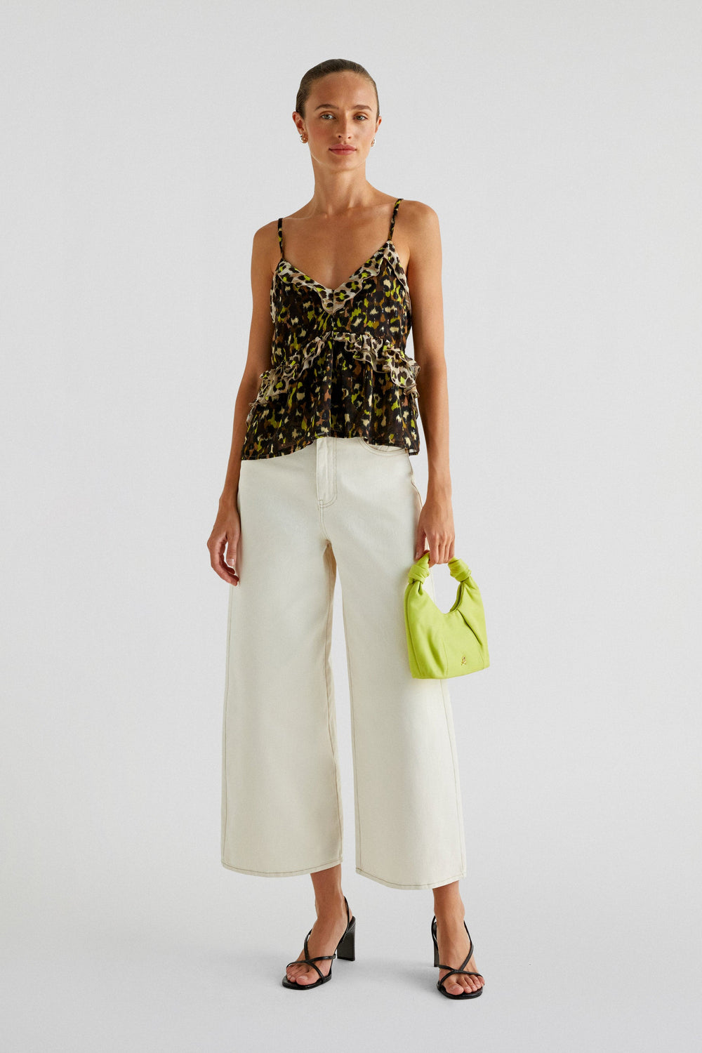 Jeans culottes confecionados em algodão ligeiramente elástico. Slim fit com cintura subida, fecho com zip e colchete. Bolsos à frente e atrás com pormenor.