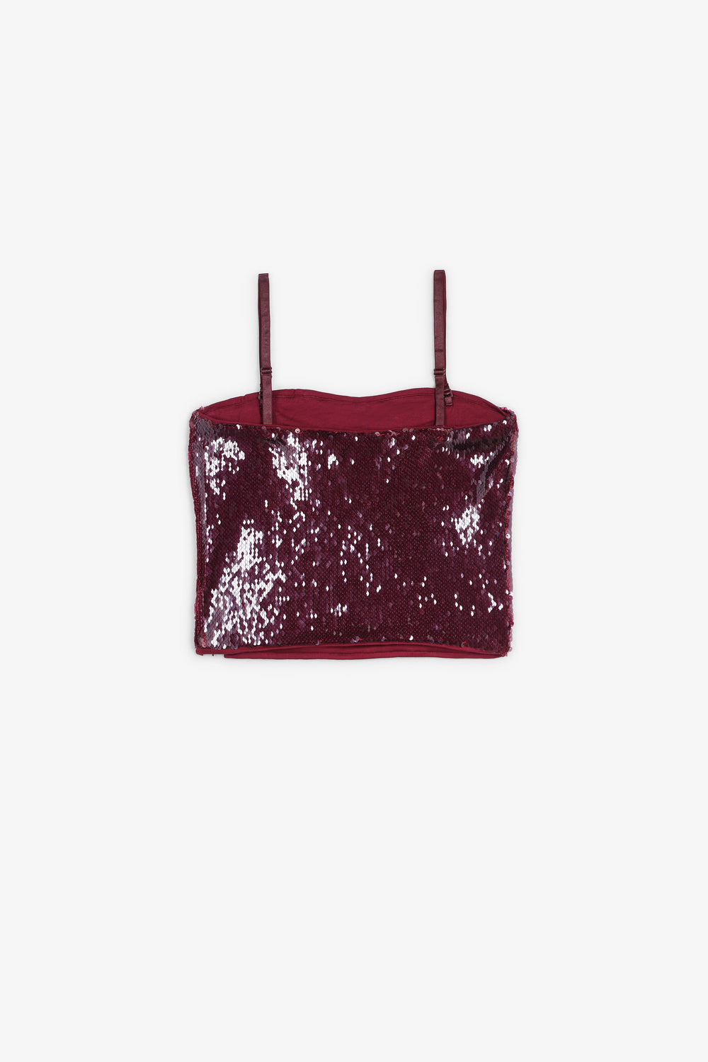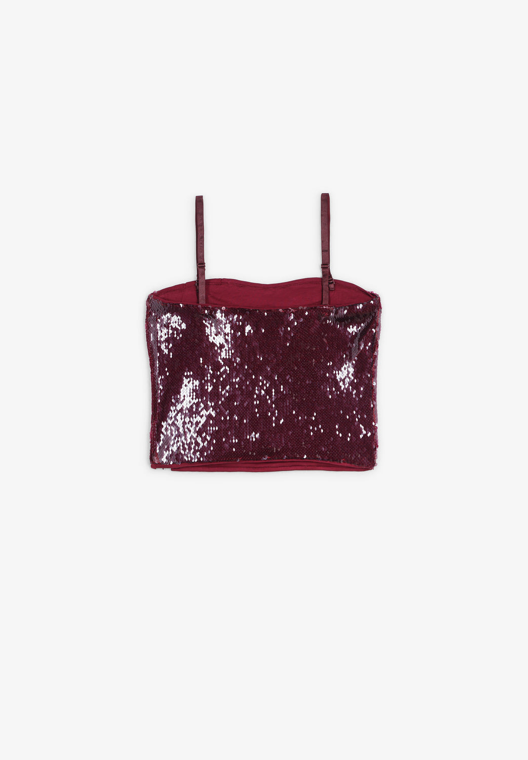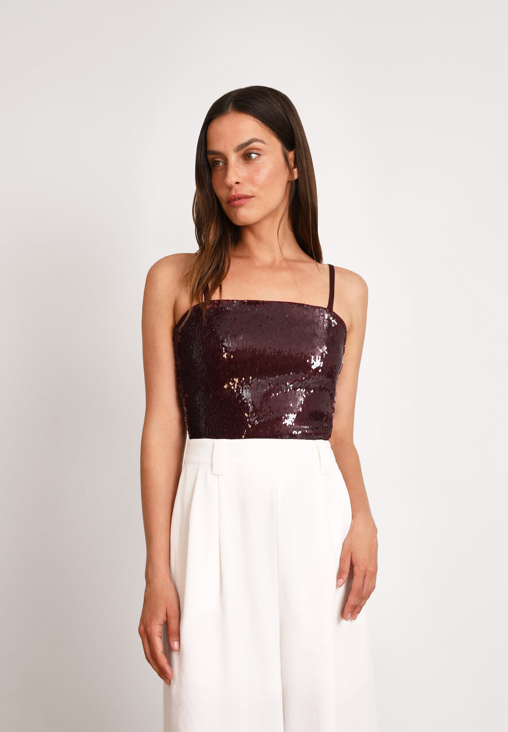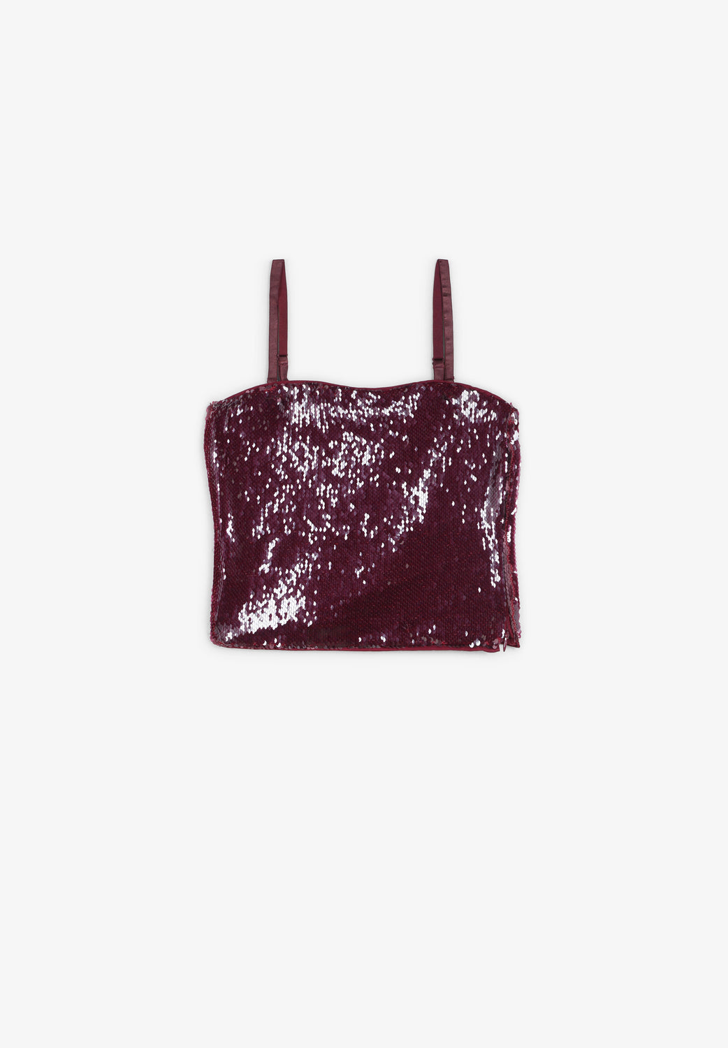 Top de lantejoulas Essential confecionado em tecido de mistura de poliéster reciclado e elastano.