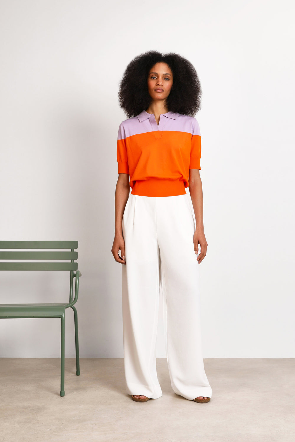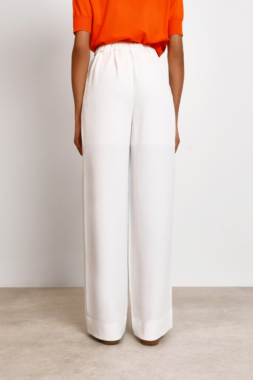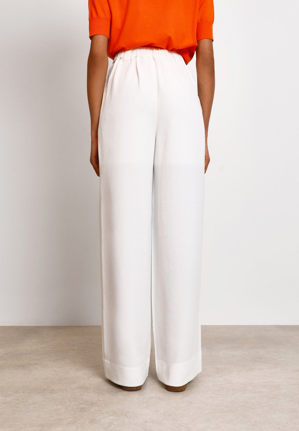 Calças Essentiel confecionadas em tecido de mistura de poliéster reciclado e elastano.