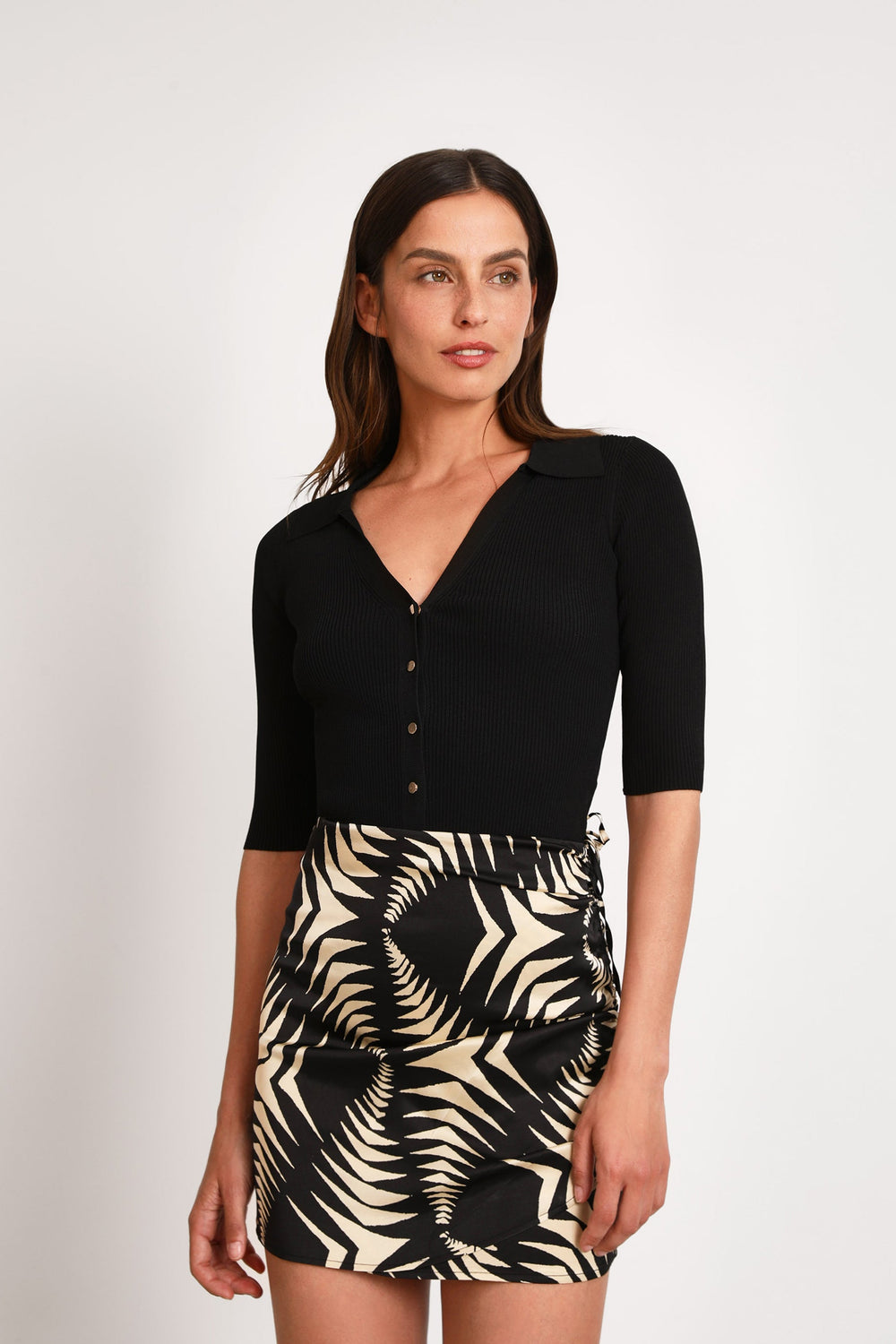 Sweater Art Love confecionada em tecido de mistura de viscose e poliamida.