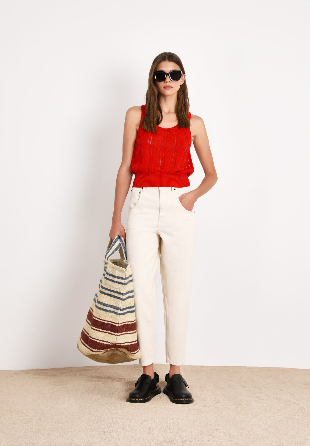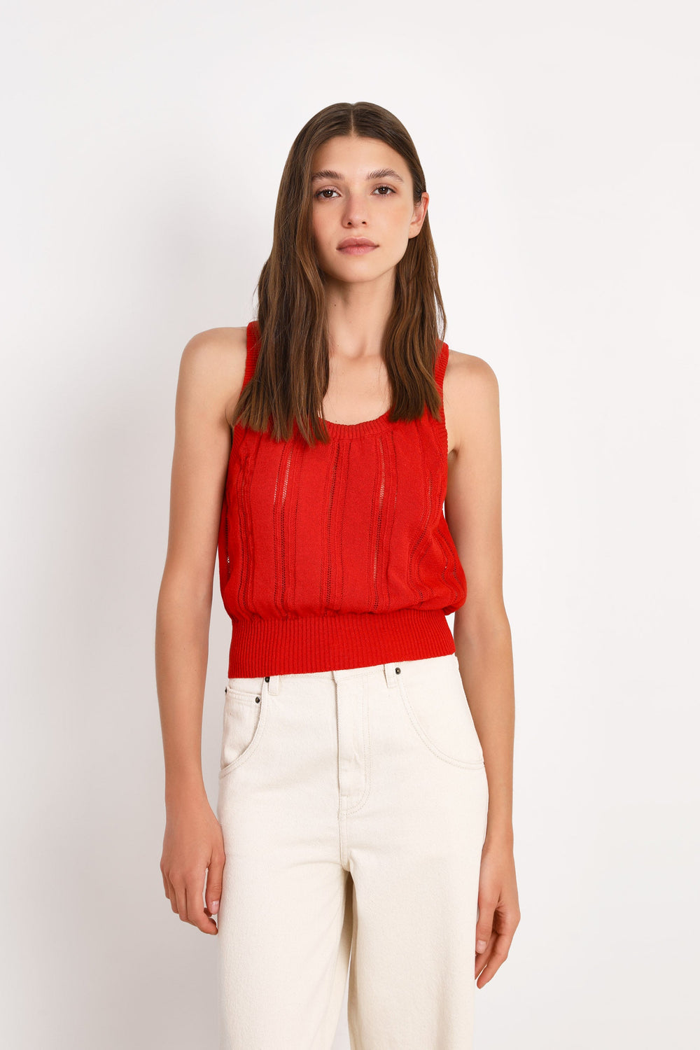 Top American Vintage confecionado em tecido com mistura de linho, algodão e fibras de poliamida.