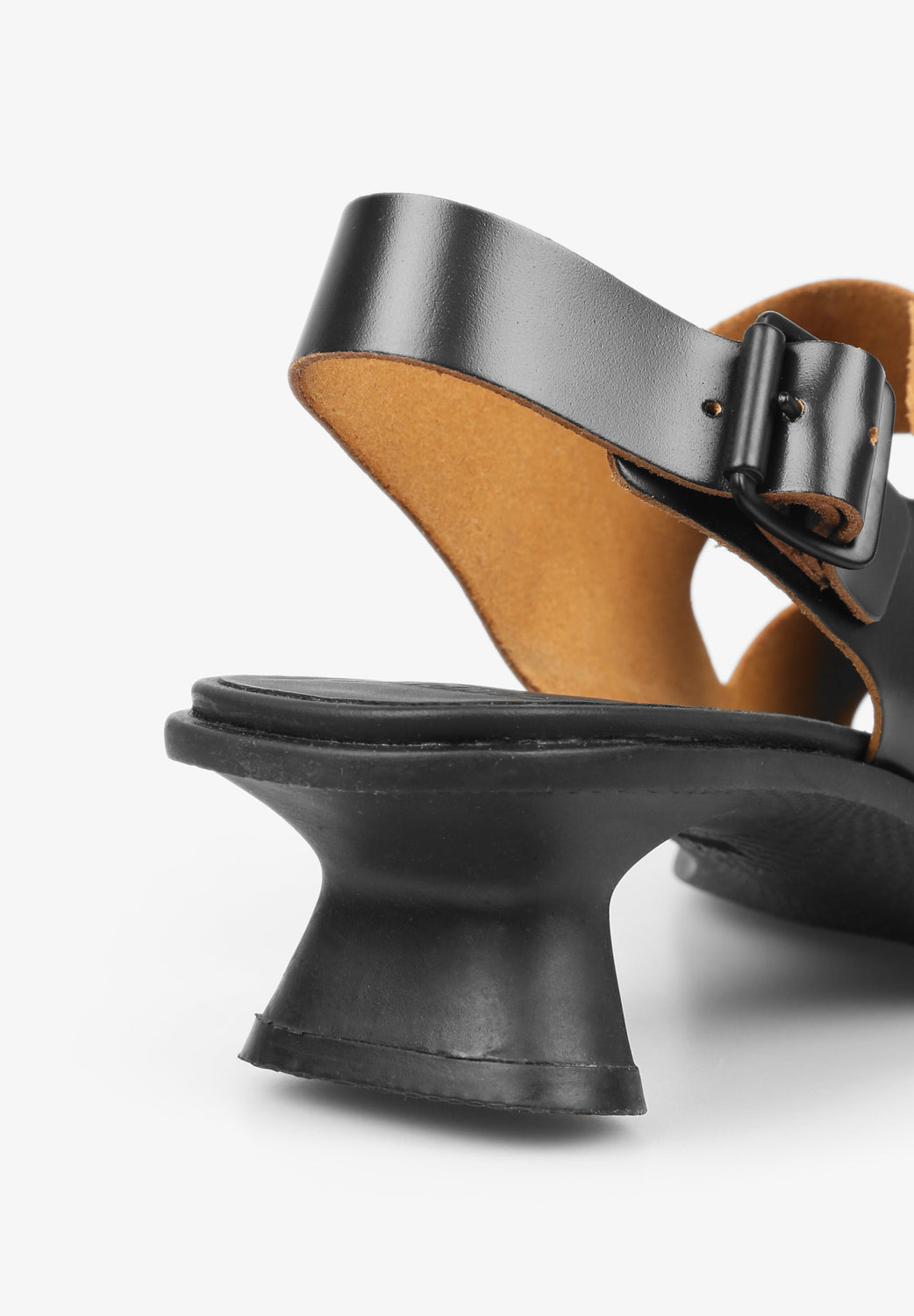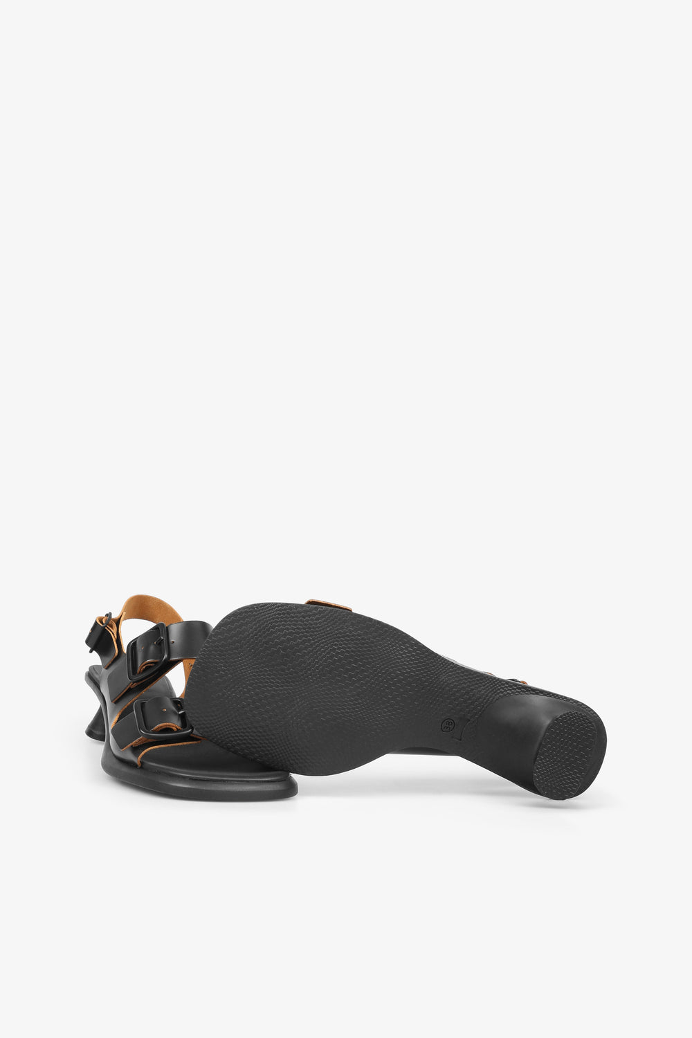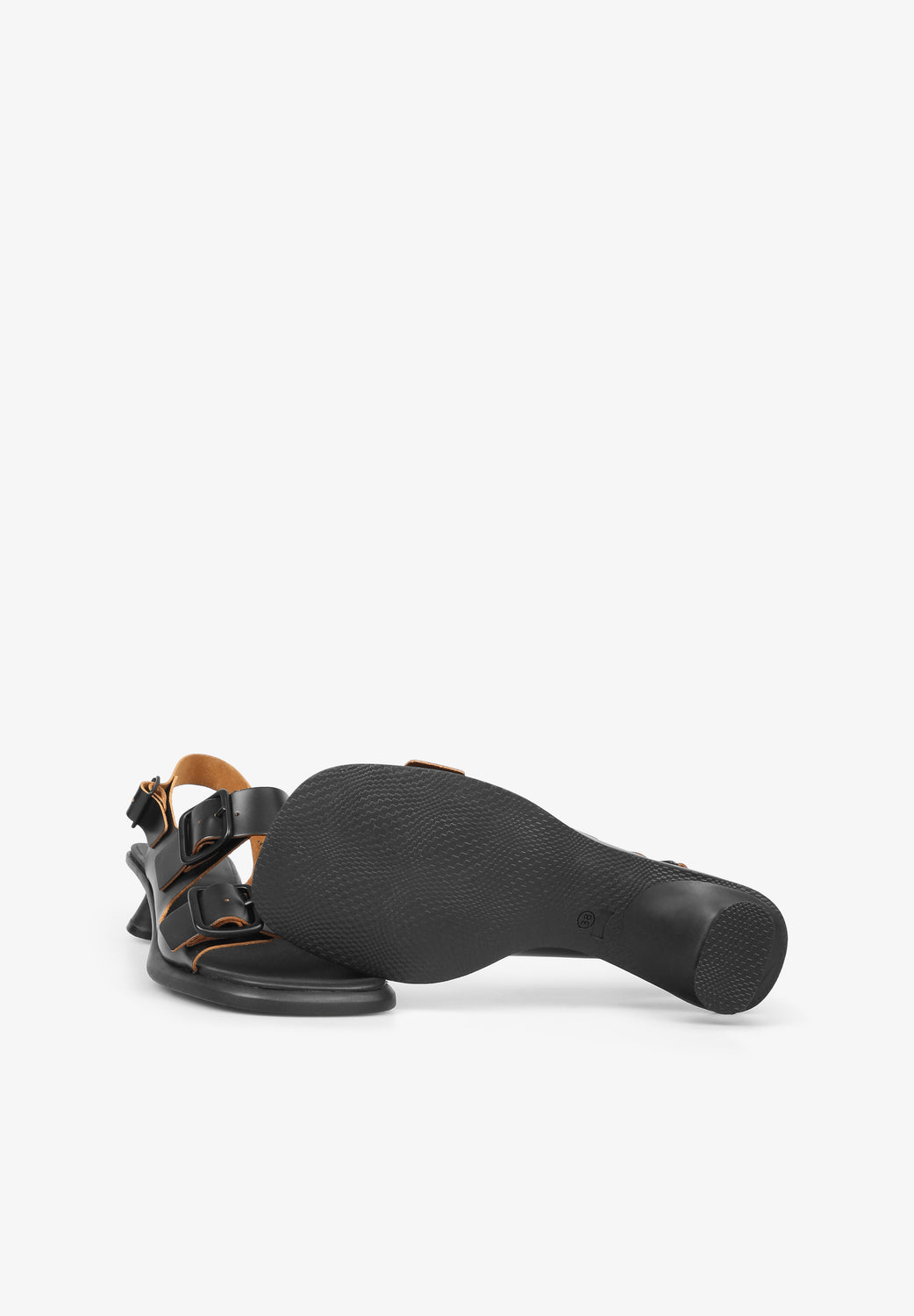 Sandálias de tacão Camper confecionadas em tecido de pele de vaca.