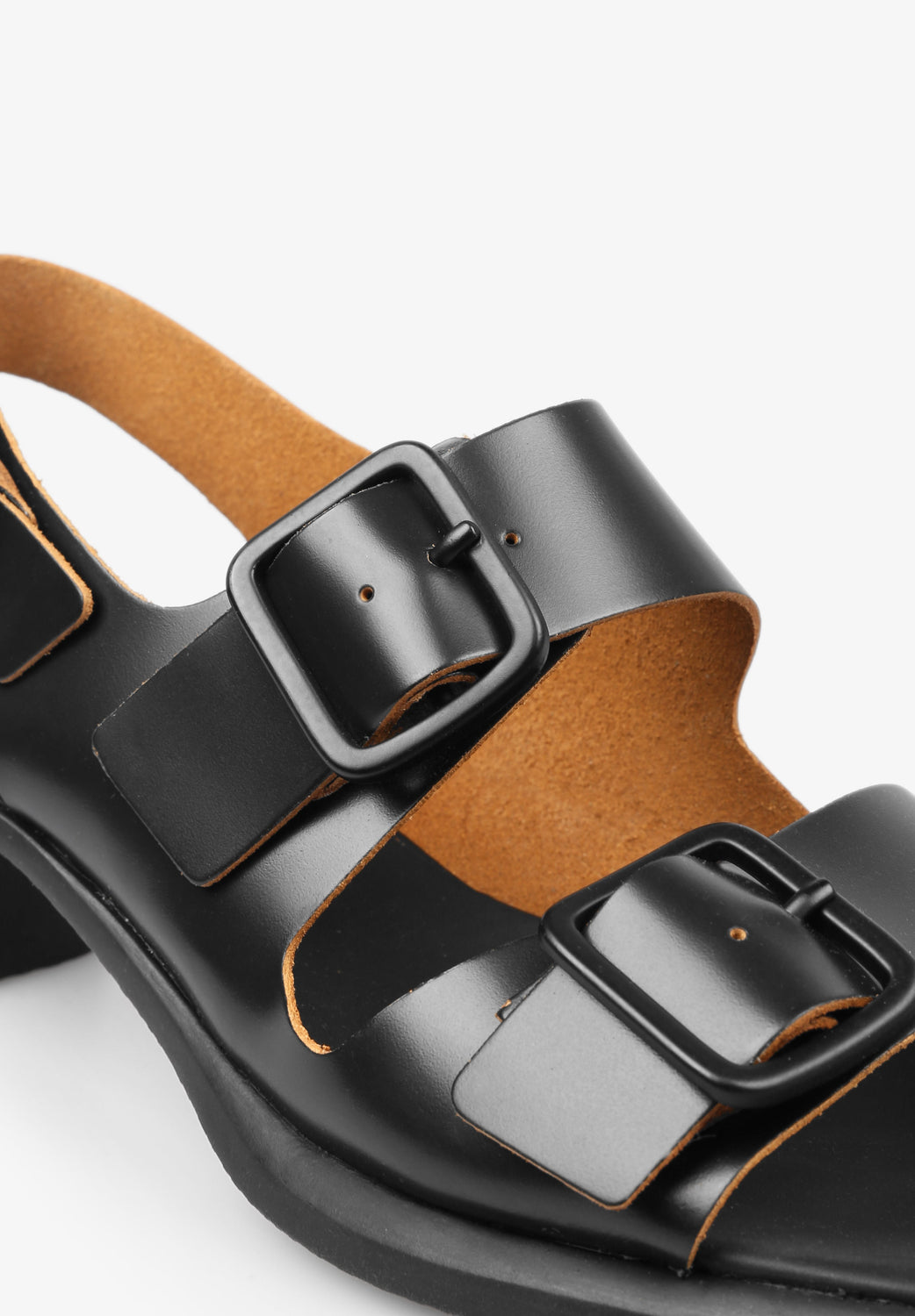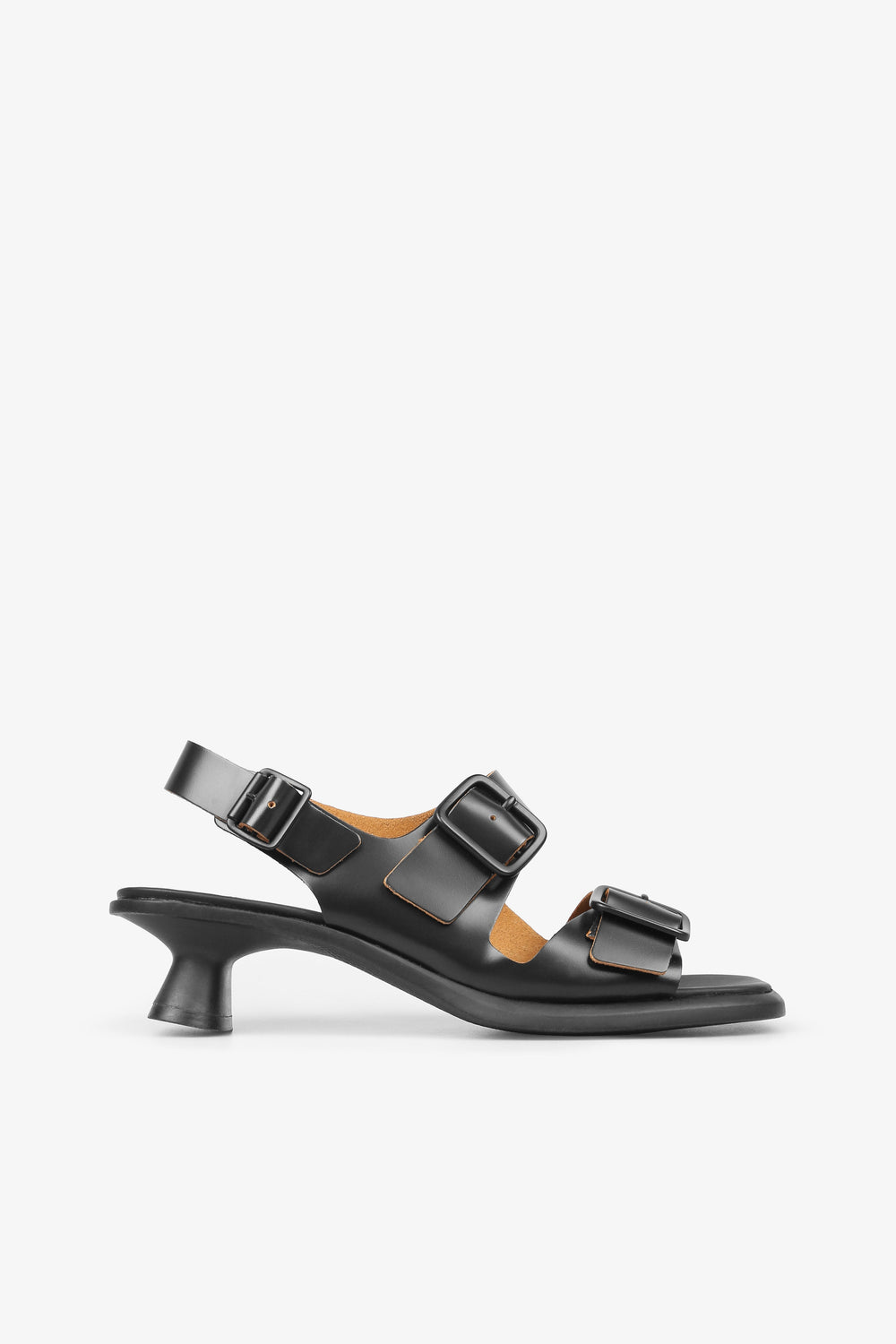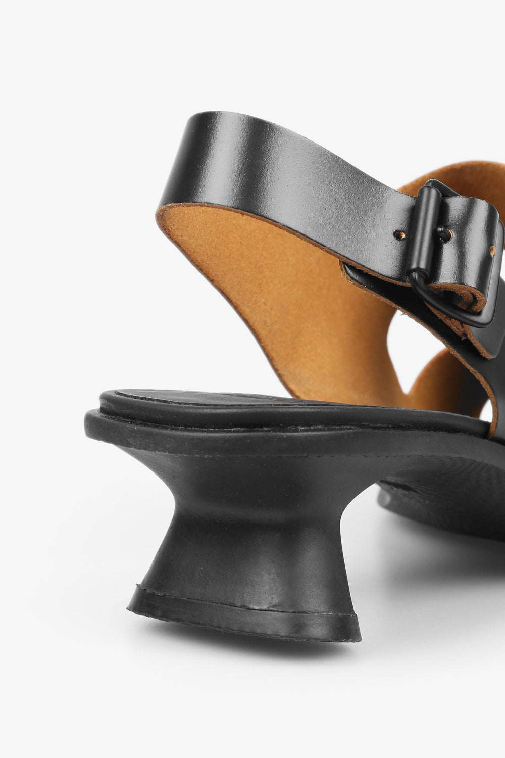 Sandálias de tacão Camper confecionadas em tecido de pele de vaca.