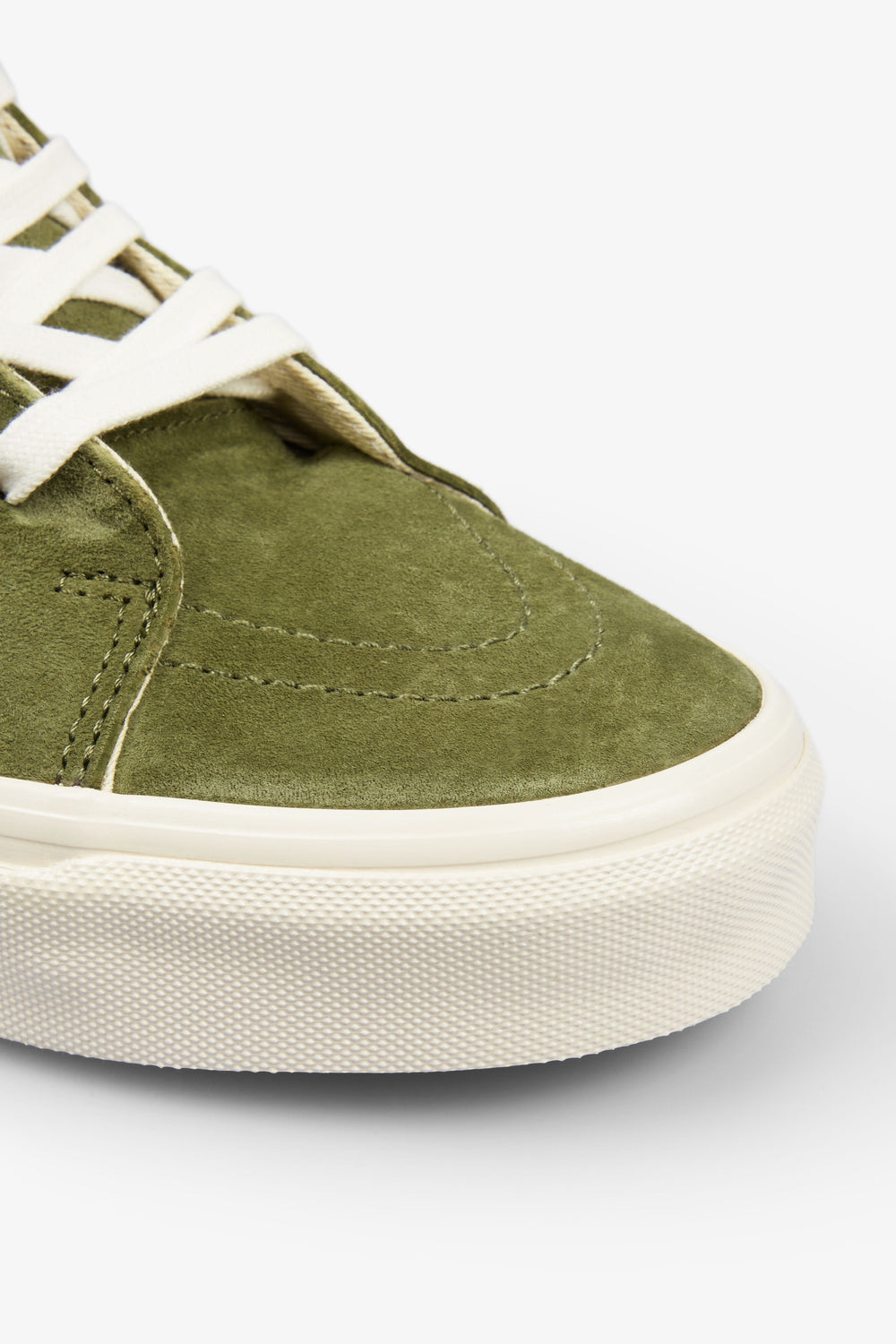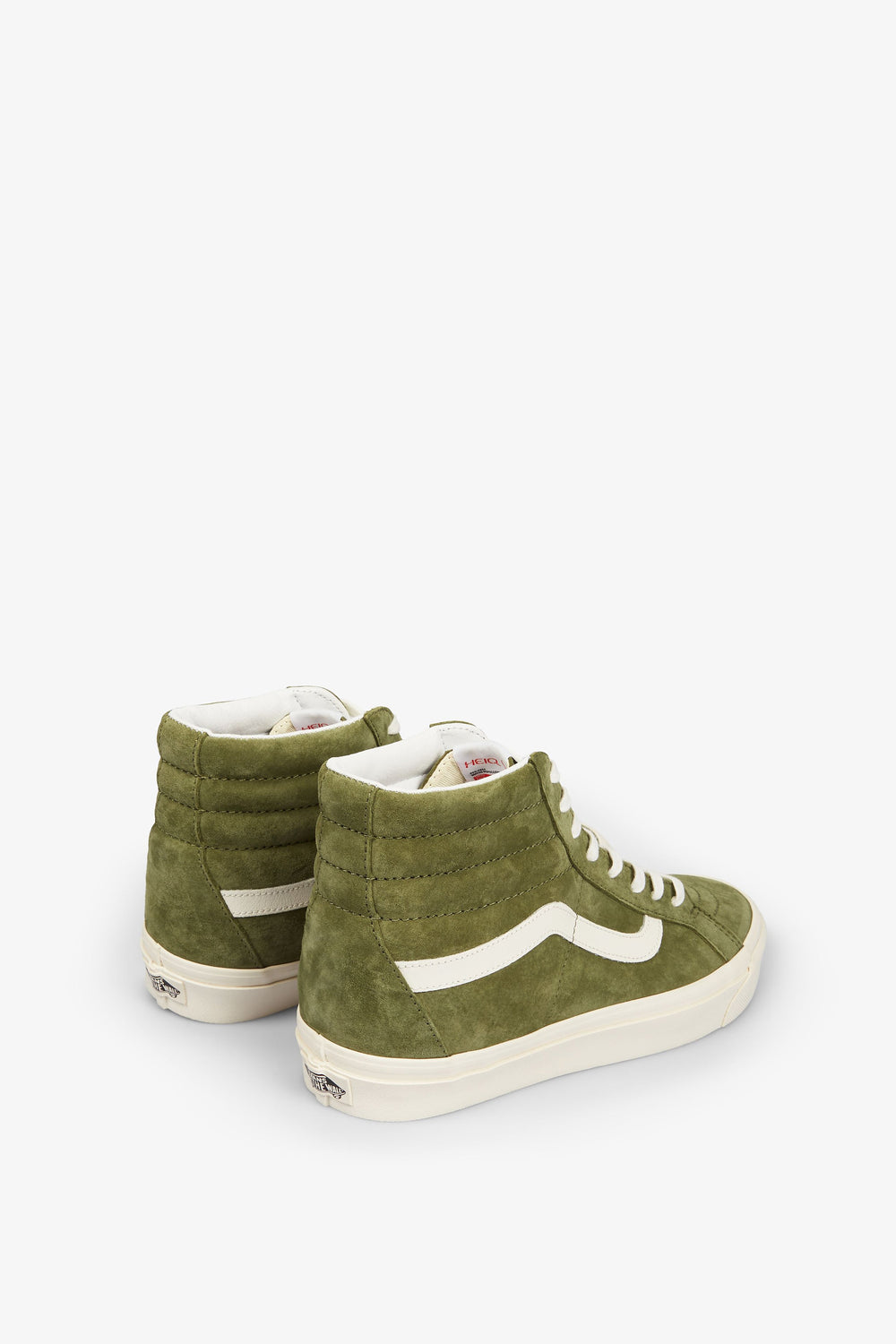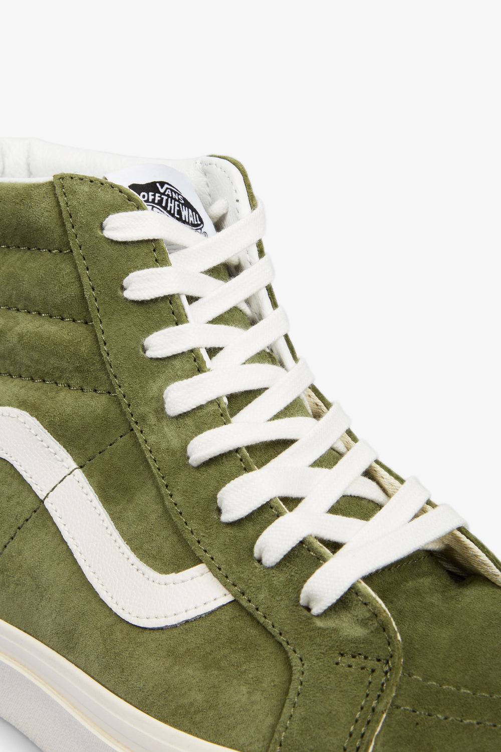 Sapatilhas cano alto Vans confecionadas em tecido de camurça de porco.