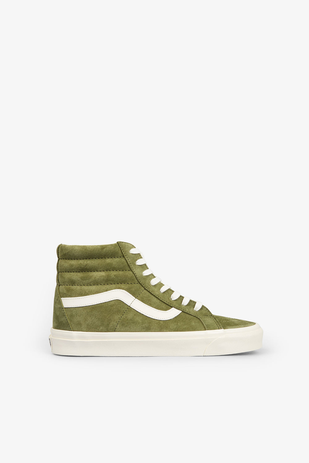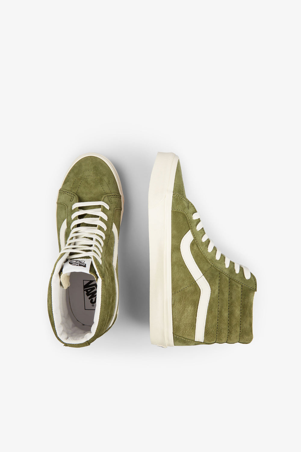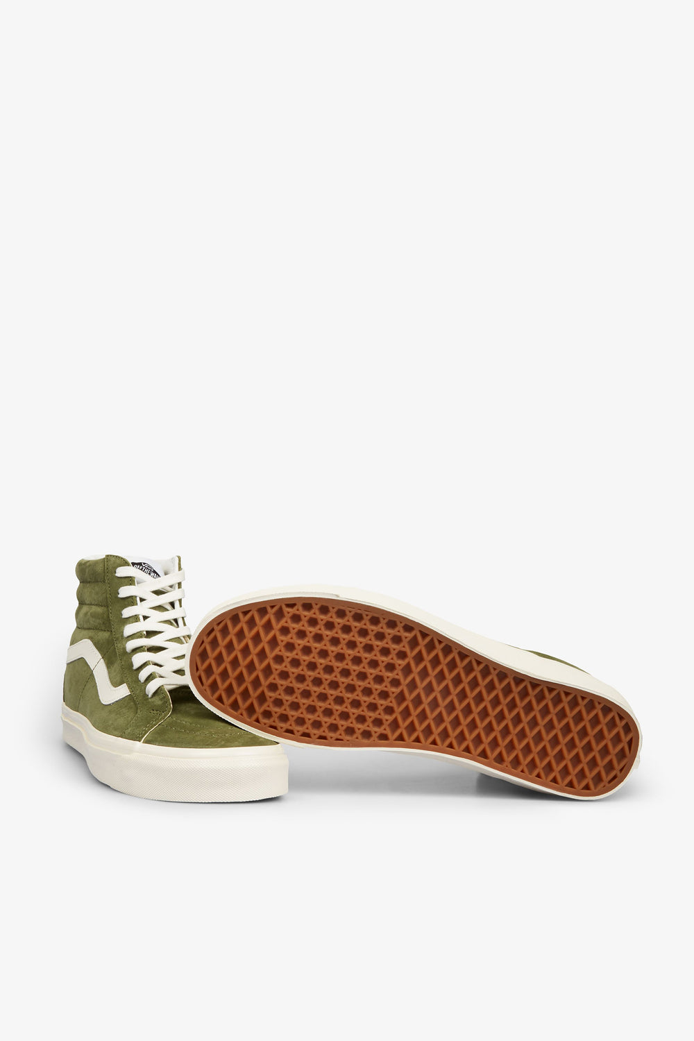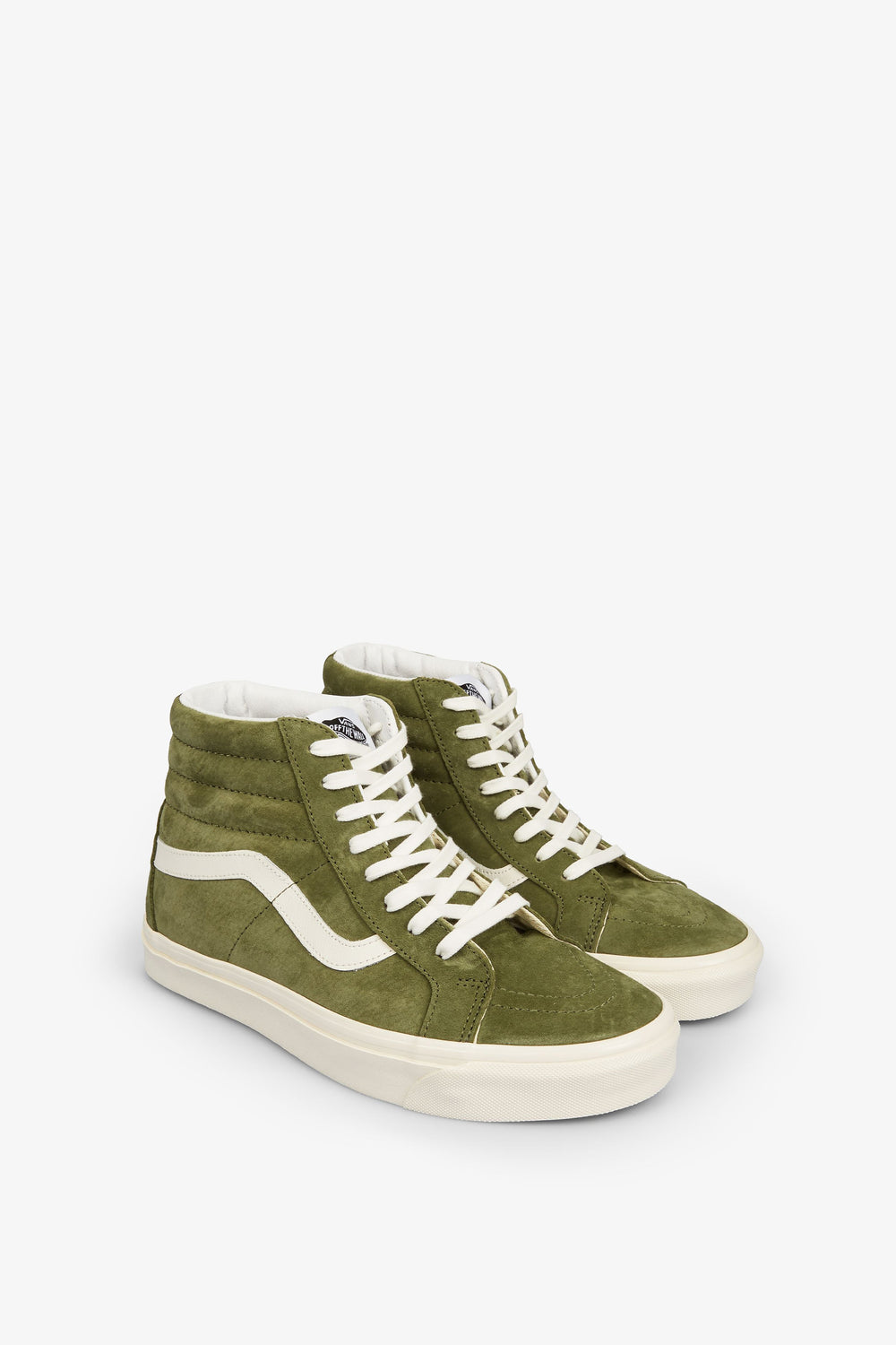 Sapatilhas cano alto Vans confecionadas em tecido de camurça de porco.