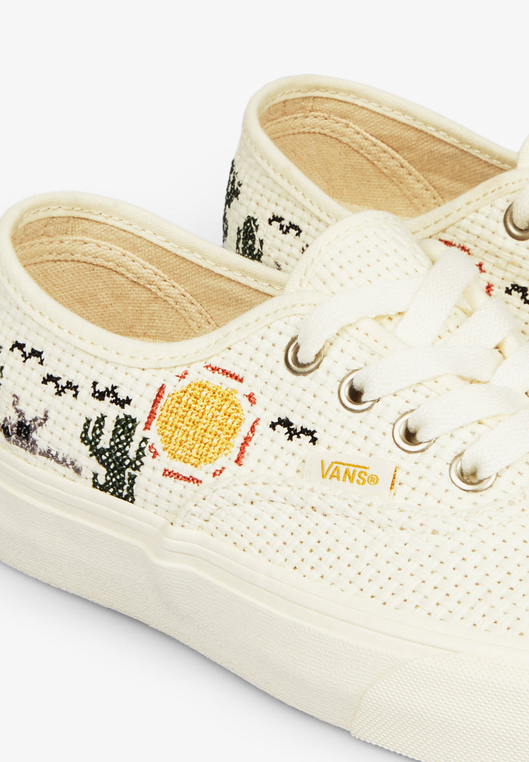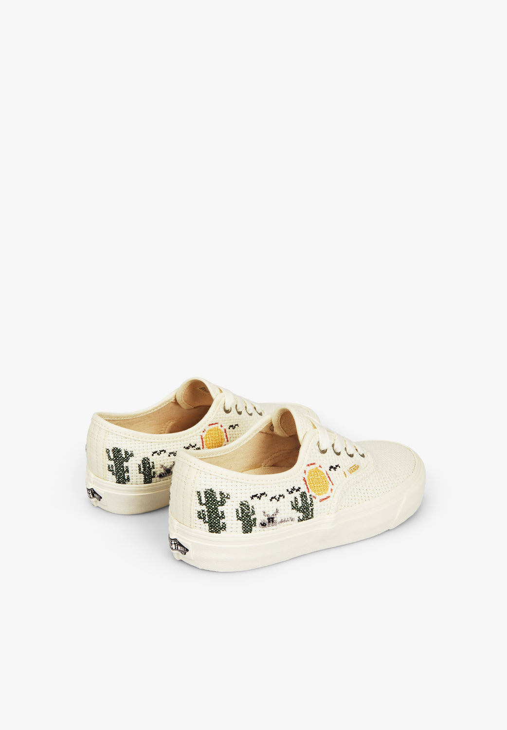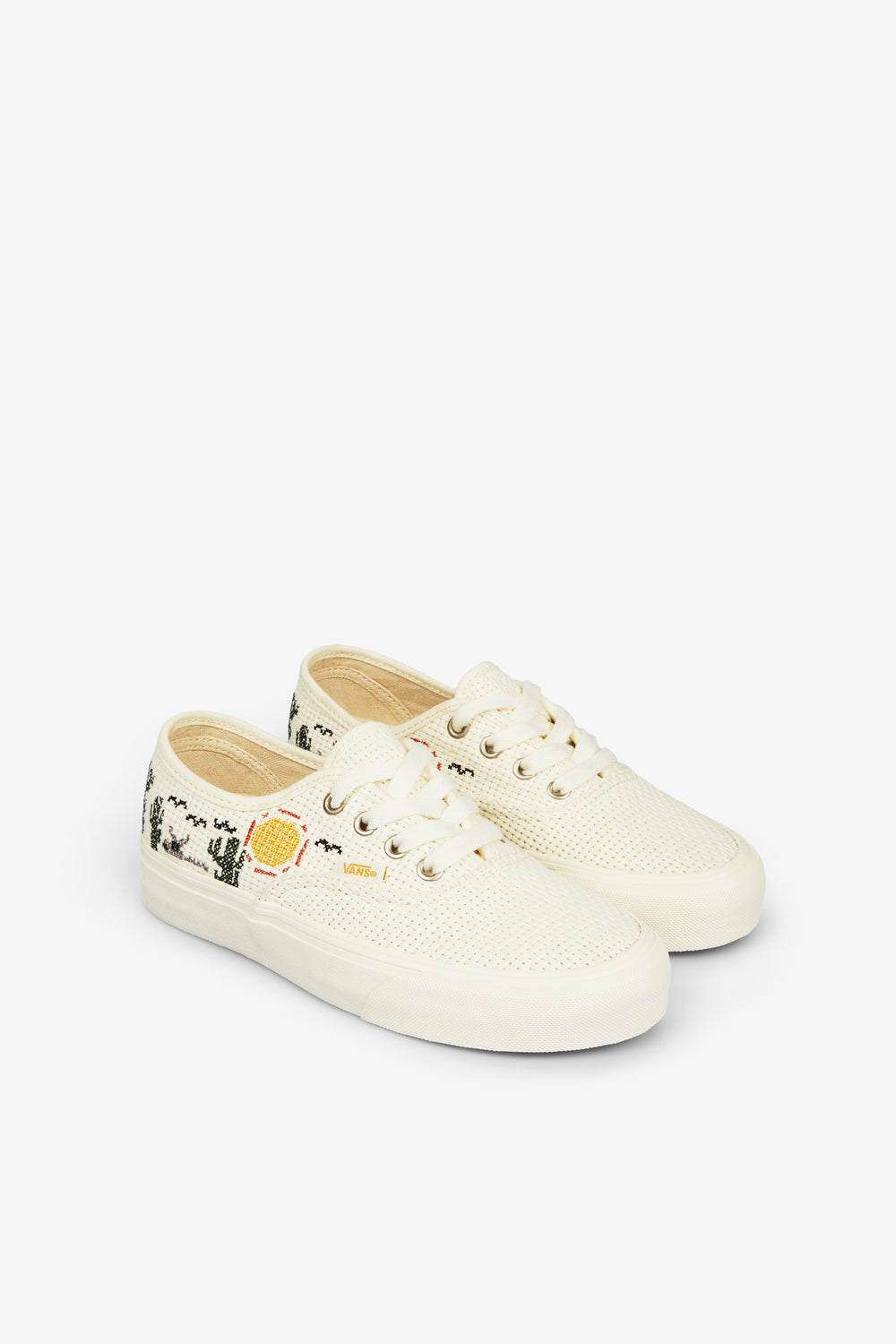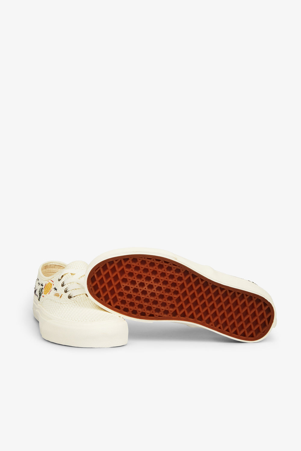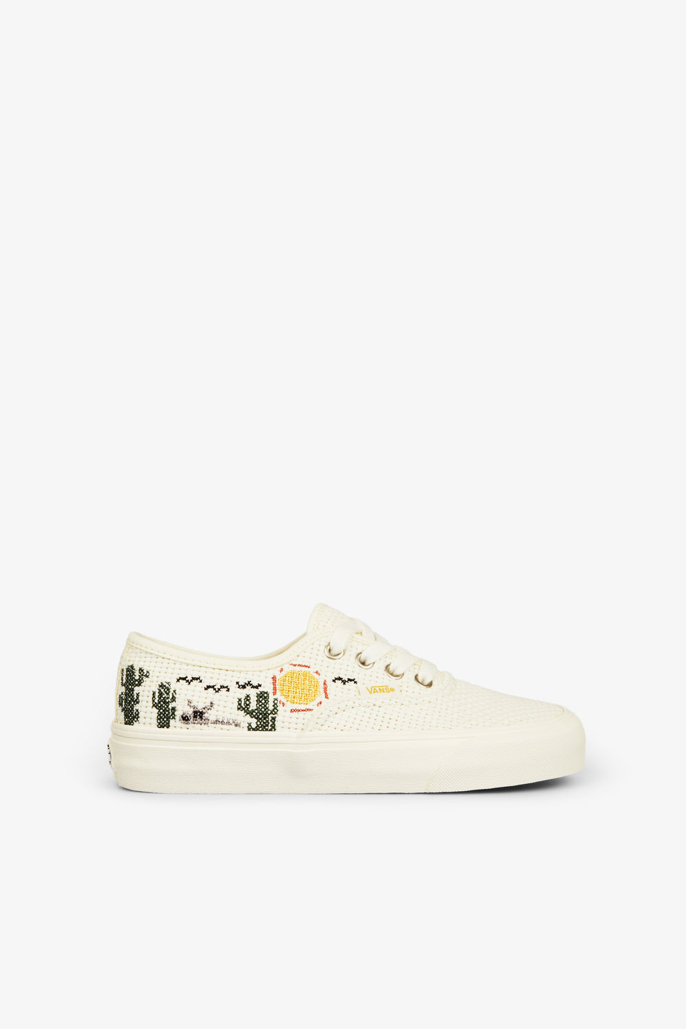 Sapatilhas Vans confecionadas em tecido com mistura de poliéster recycled e algodão reciclado.
