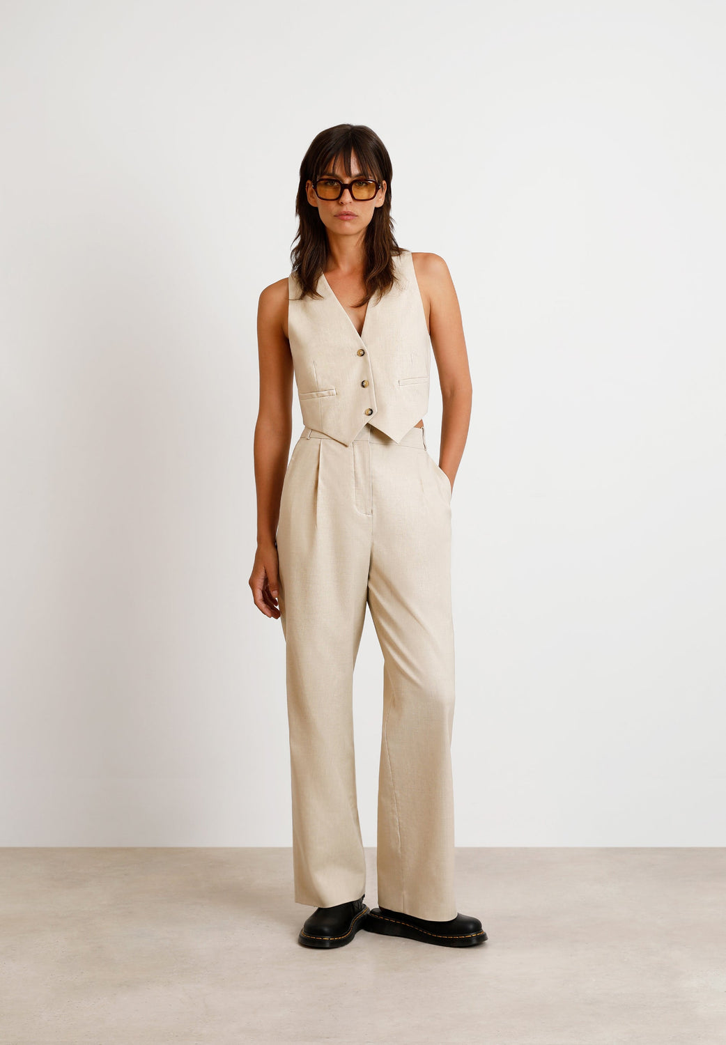 - Bolsillos italianos parte delantera y ribeteados parte trasera.