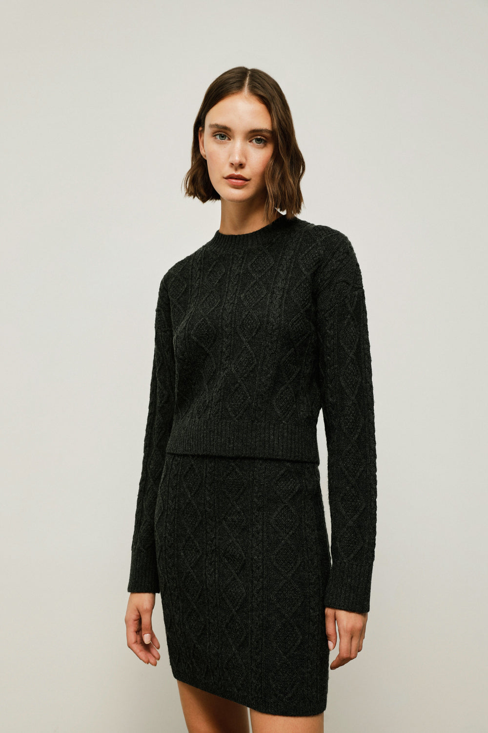 Saia curta Samsoe confecionada em tecido com mistura de lã e poliéster reciclado.