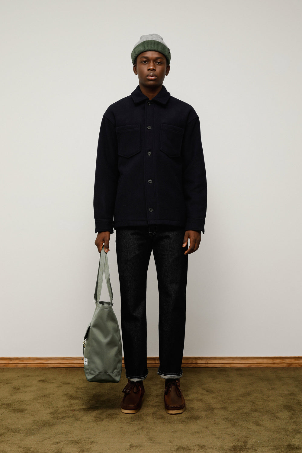 - Pormenor de bolsos de remendo no peito.