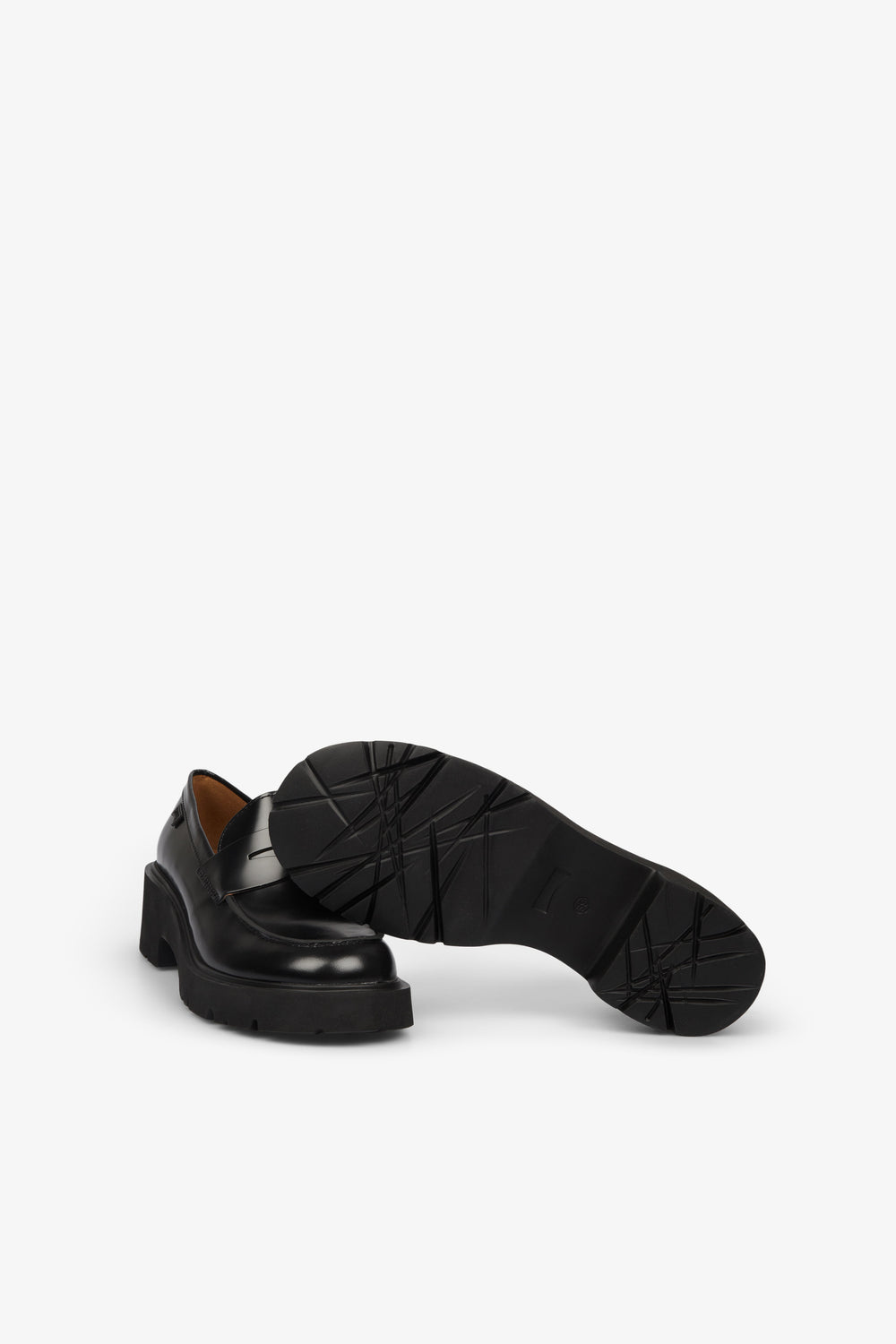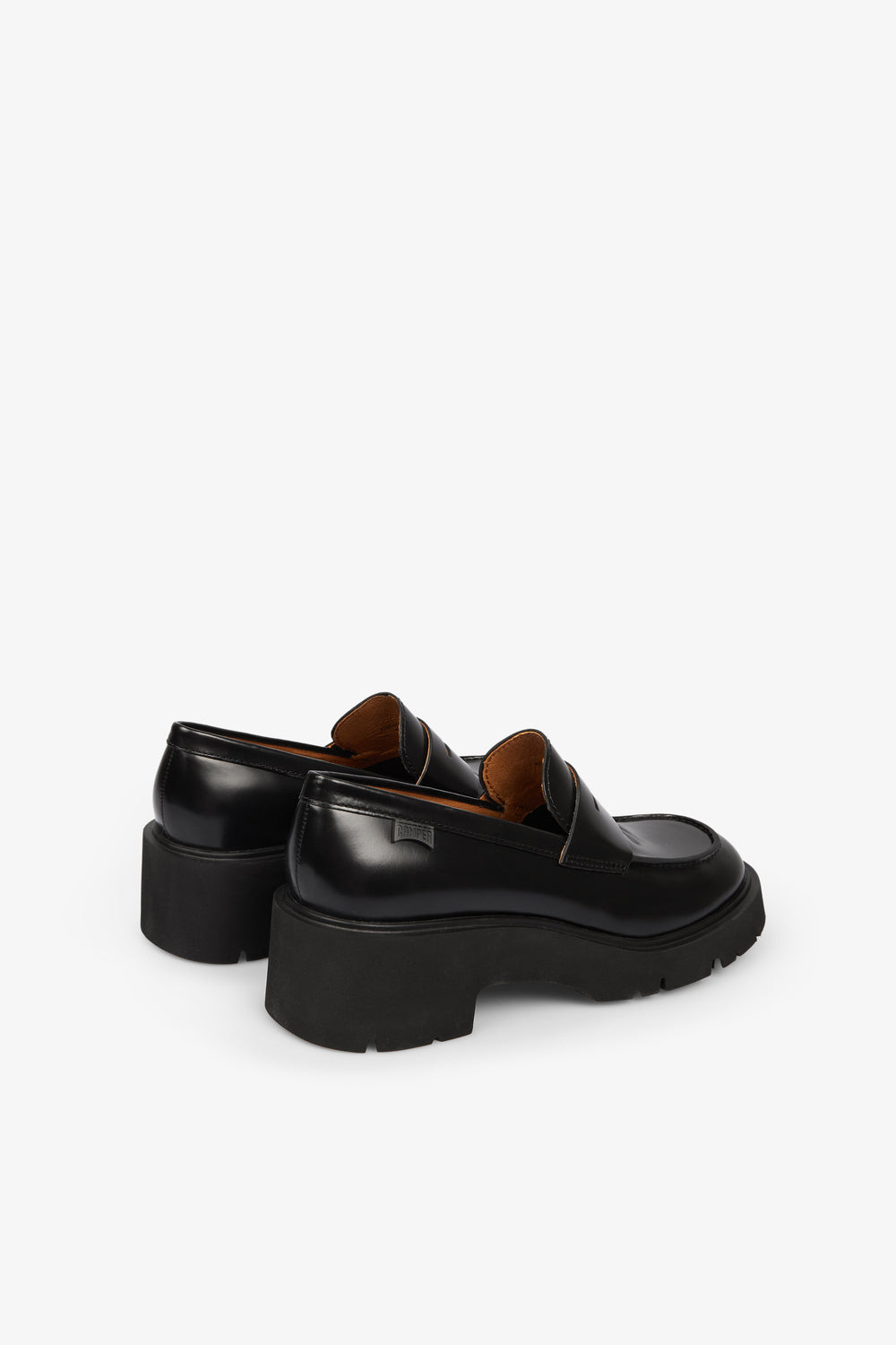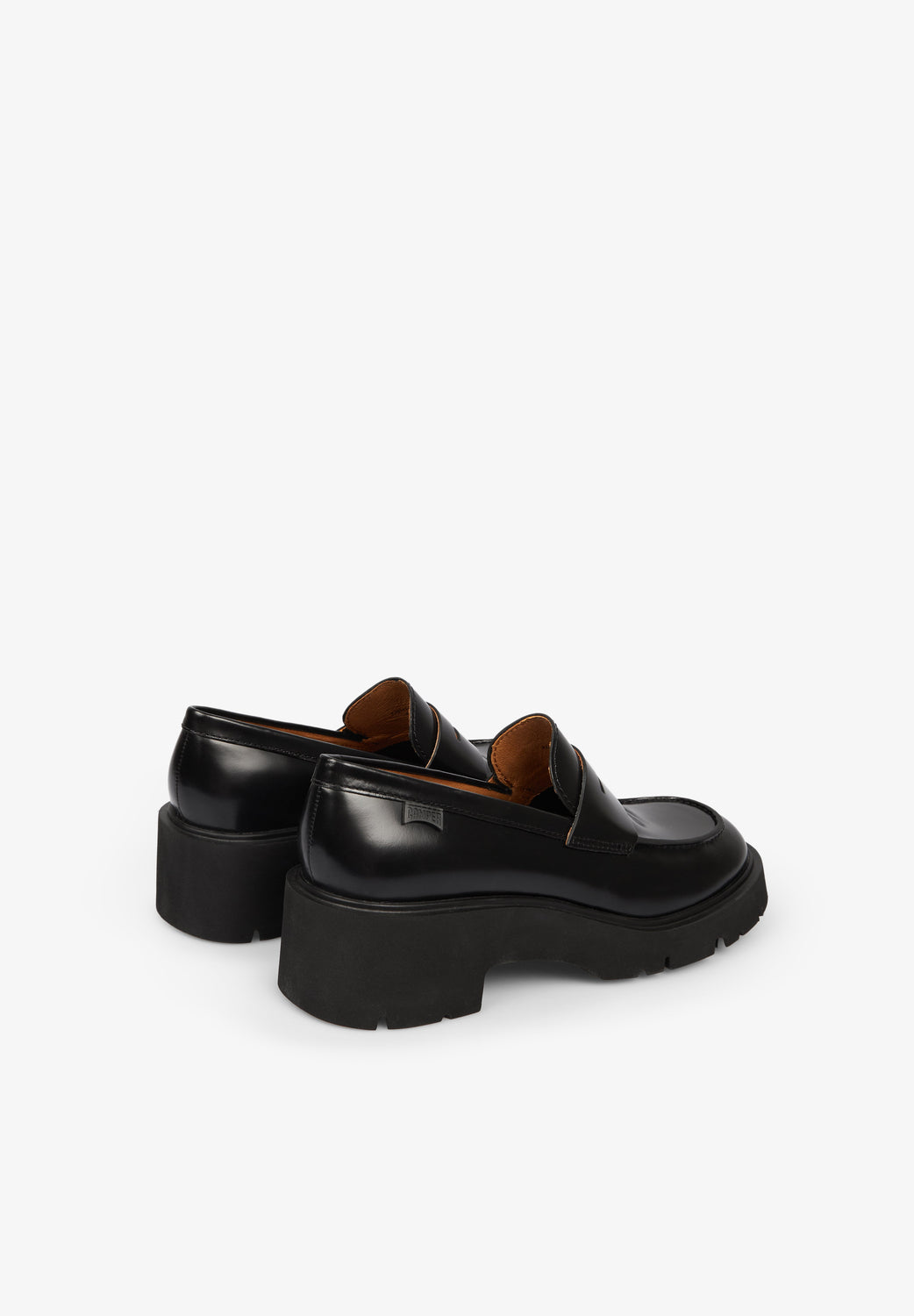 Mocassins Camper confecionados em tecido de mistura de pele de bovino e materiais reciclados.