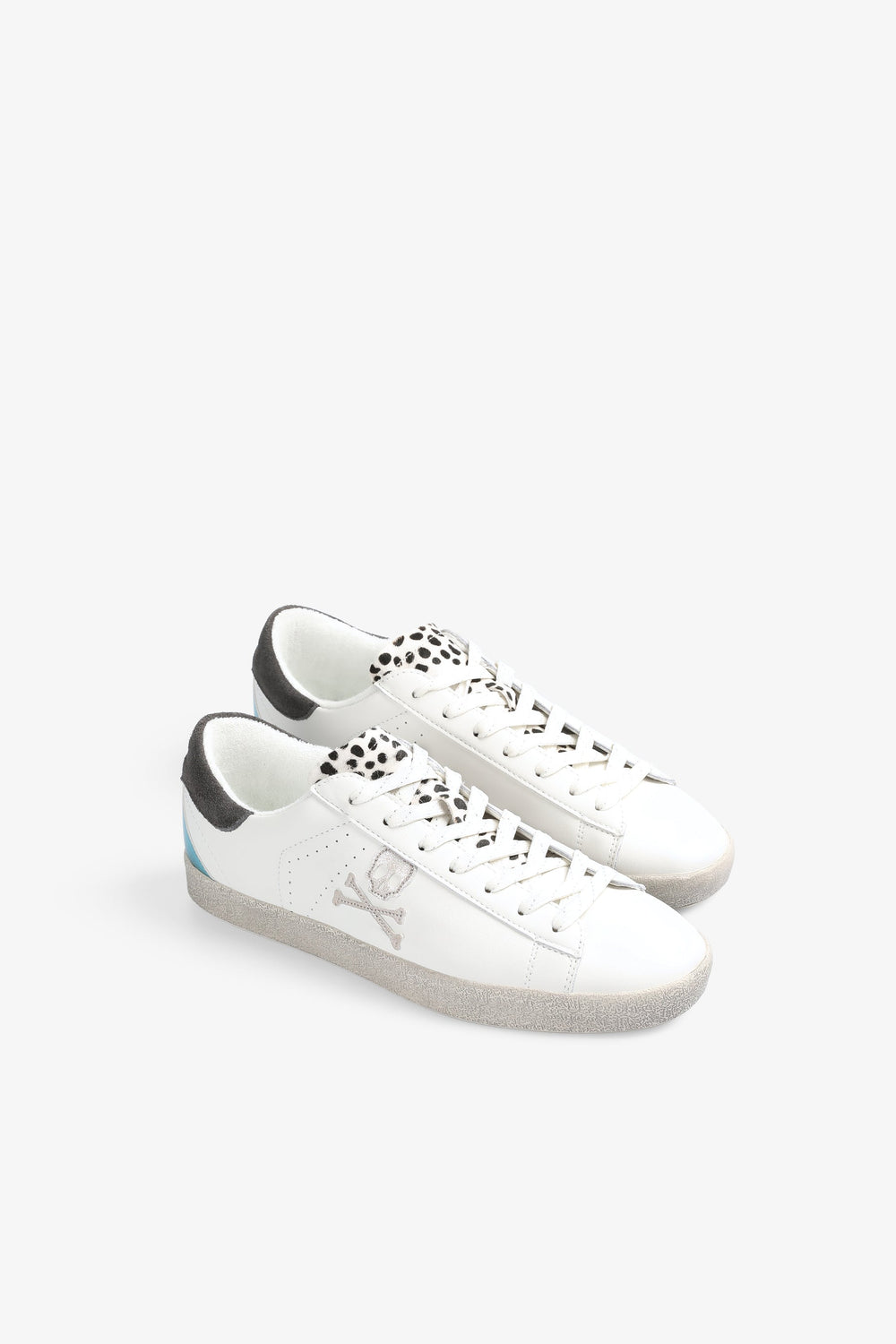 Sapatilhas baixas com pormenor da língua em estampado animal.