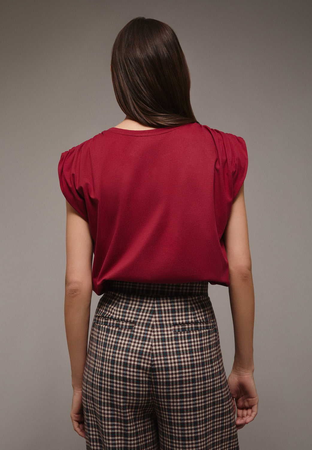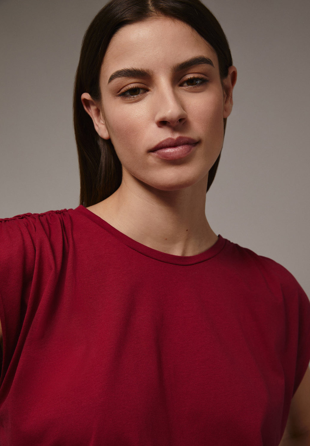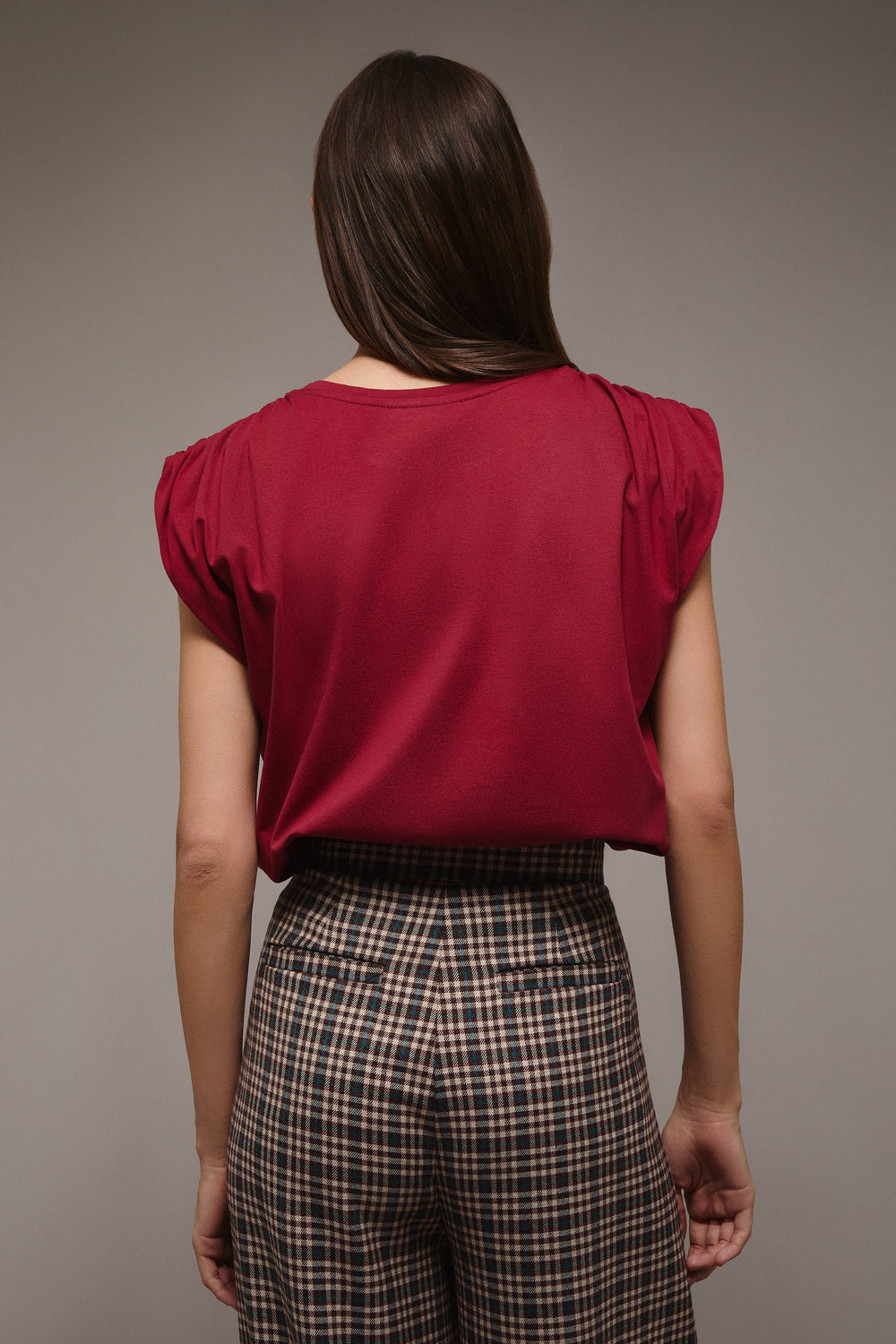 T-shirt com pormenor de franzido nos ombros.