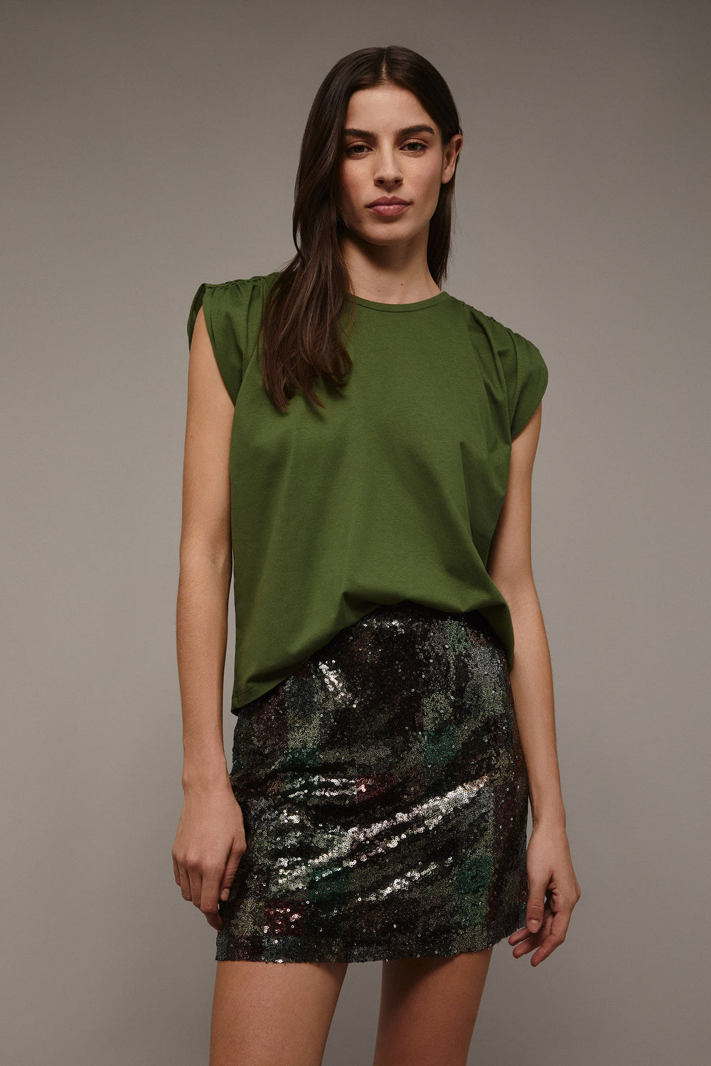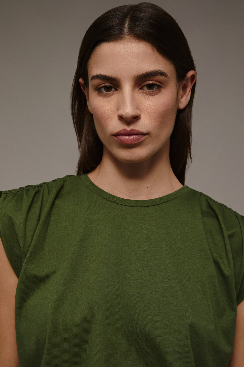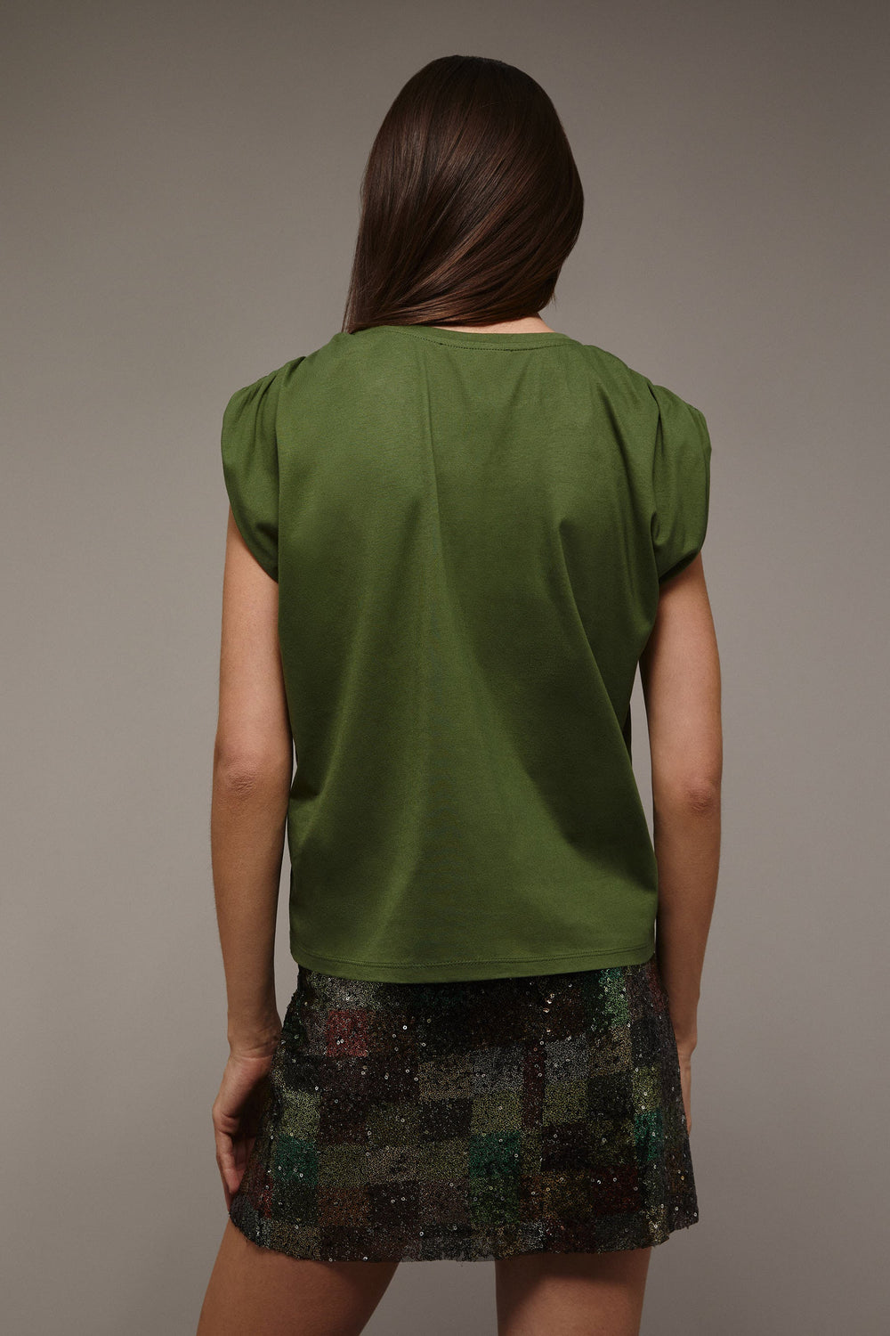T-shirt com pormenor de franzido nos ombros.