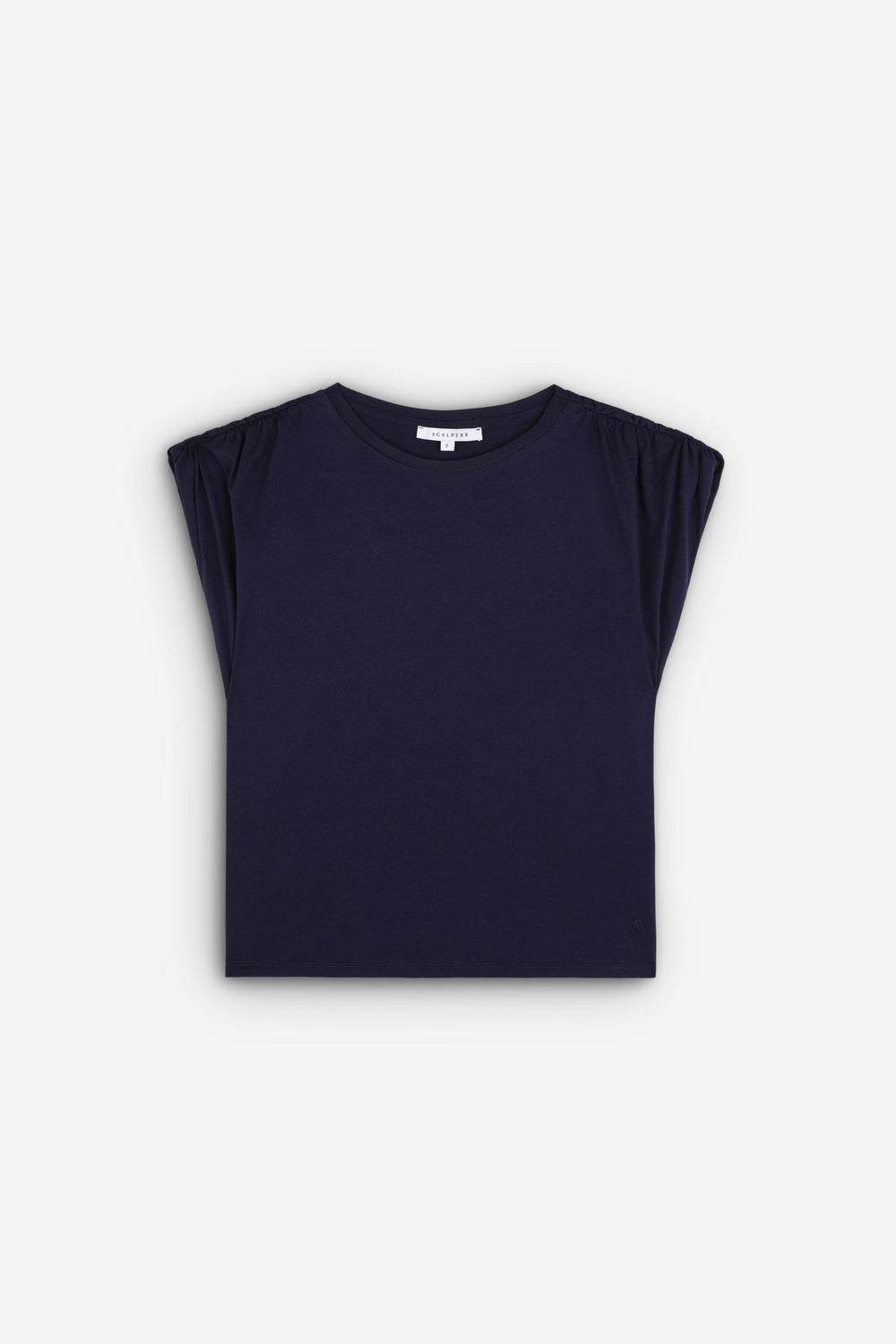 T-SHIRT COM PORMENOR DE FRANZIDO NO OMBRO