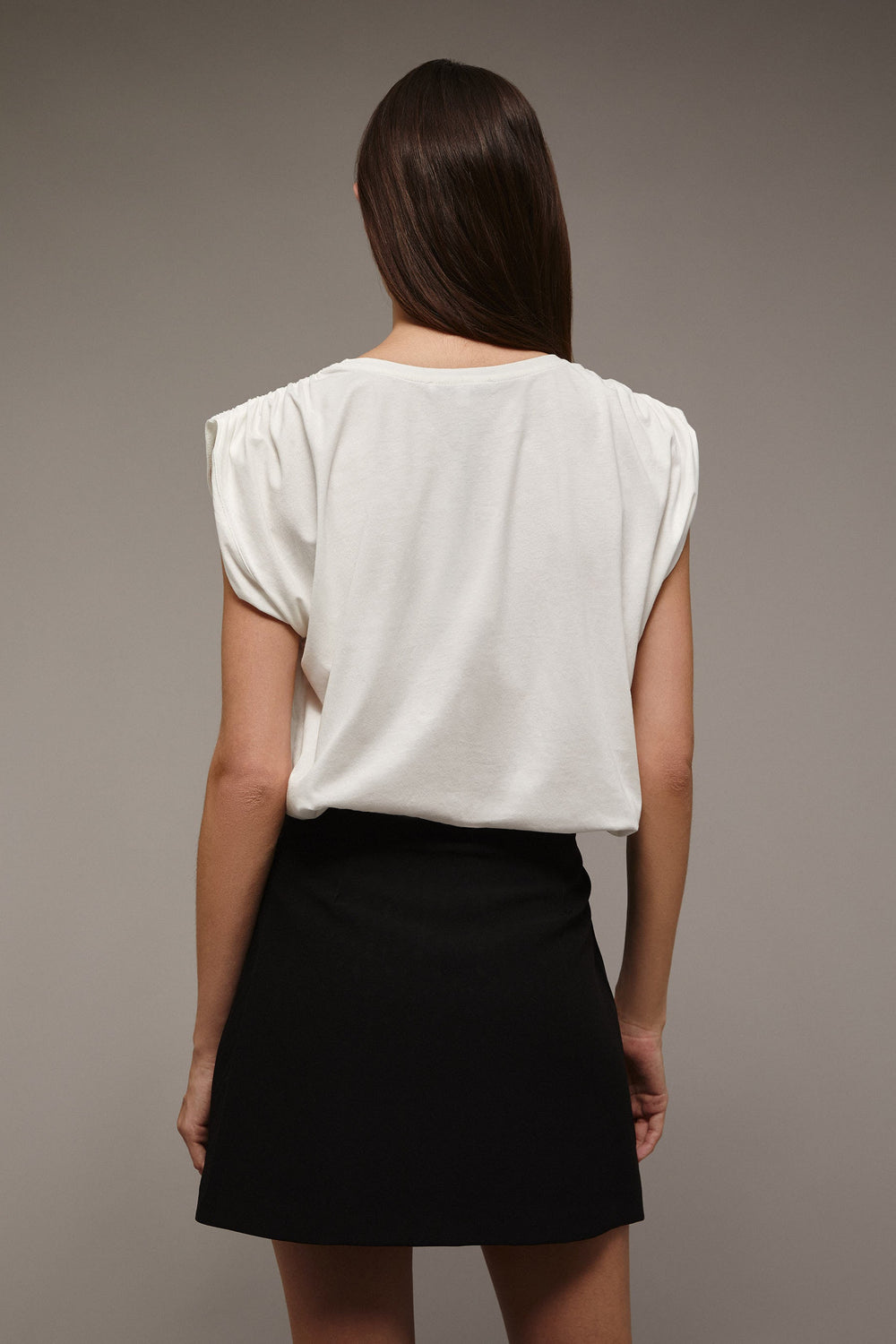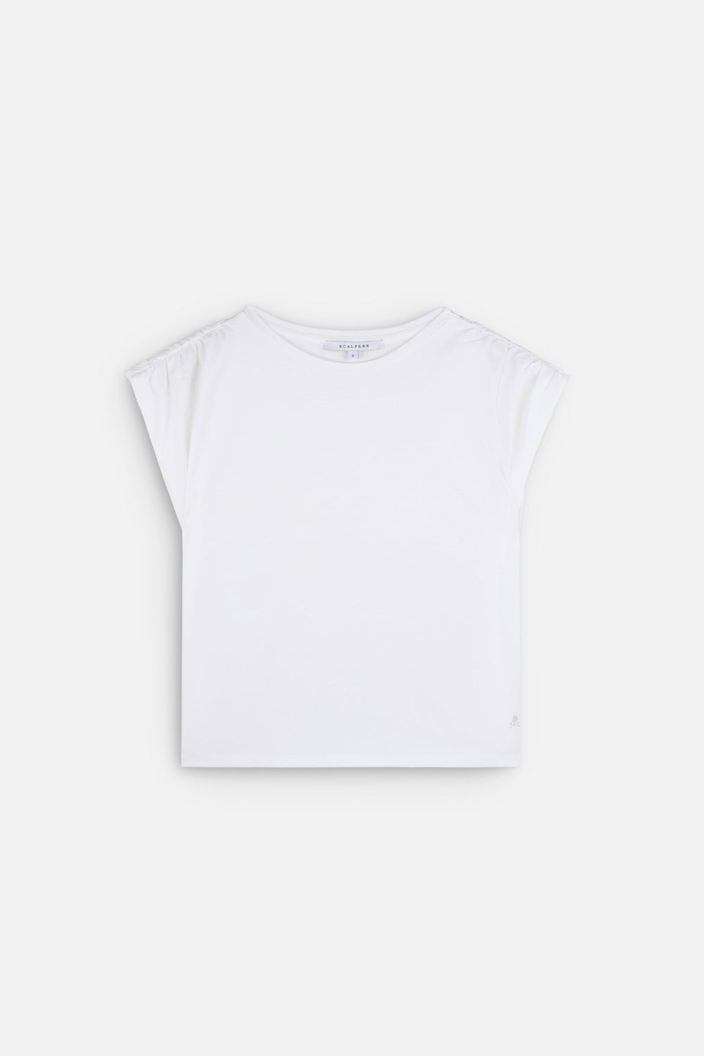 T-SHIRT COM PORMENOR DE FRANZIDO NO OMBRO