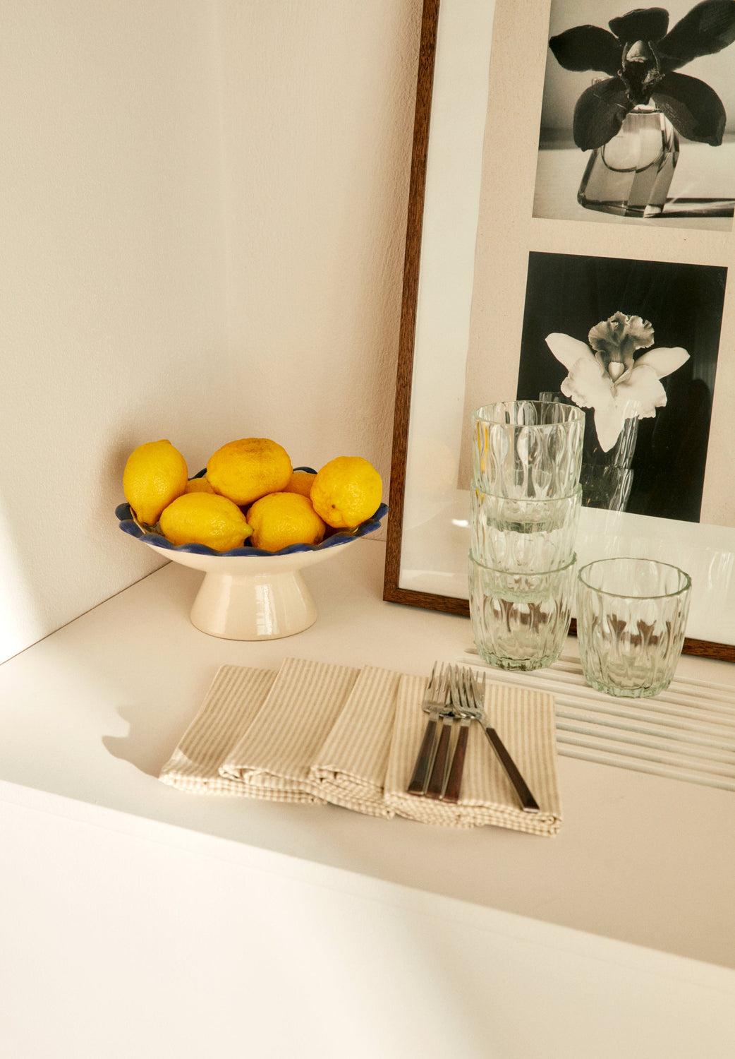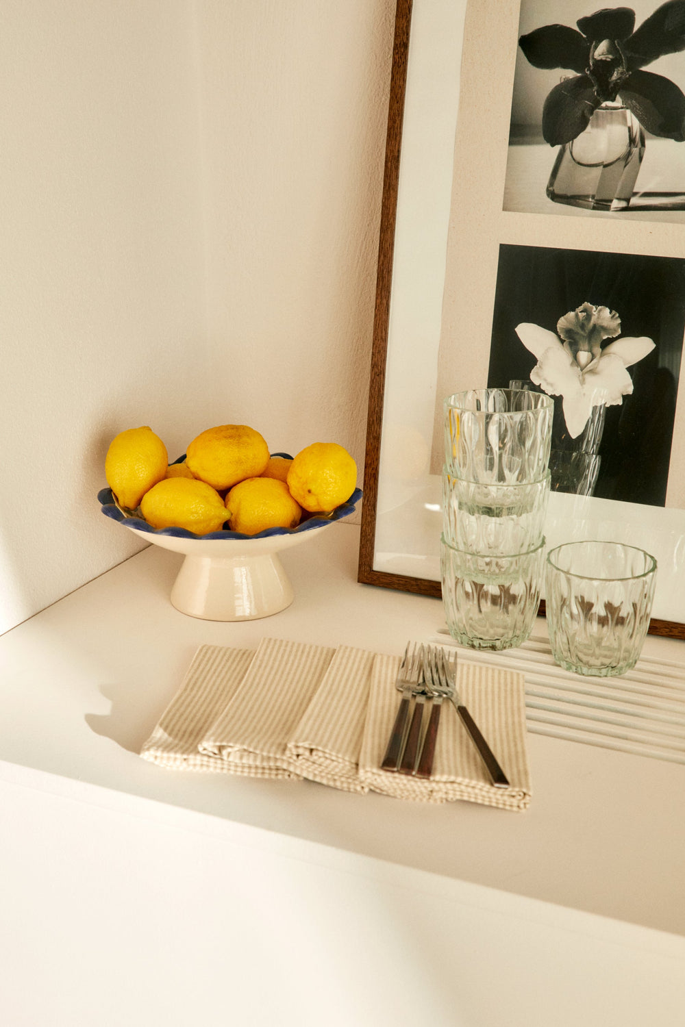 Guardanapo às riscas em 100% algodão.