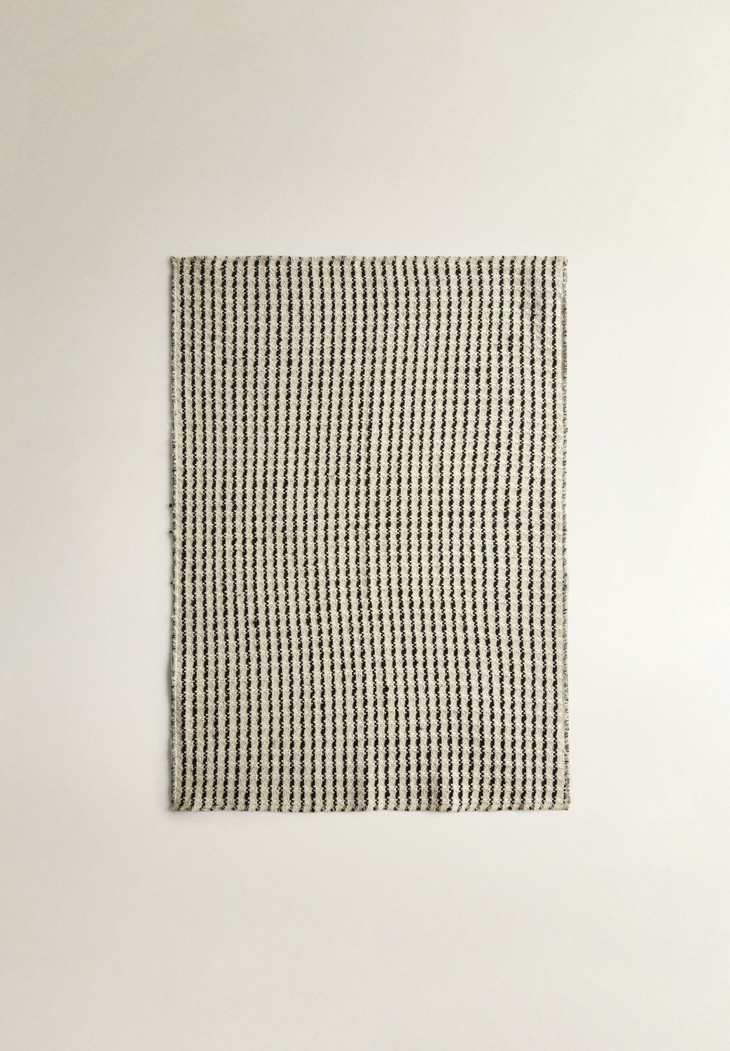 Conjunto de toalhas de mesa com estrutura às riscas em 100% algodão.