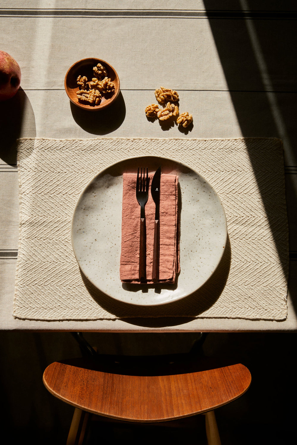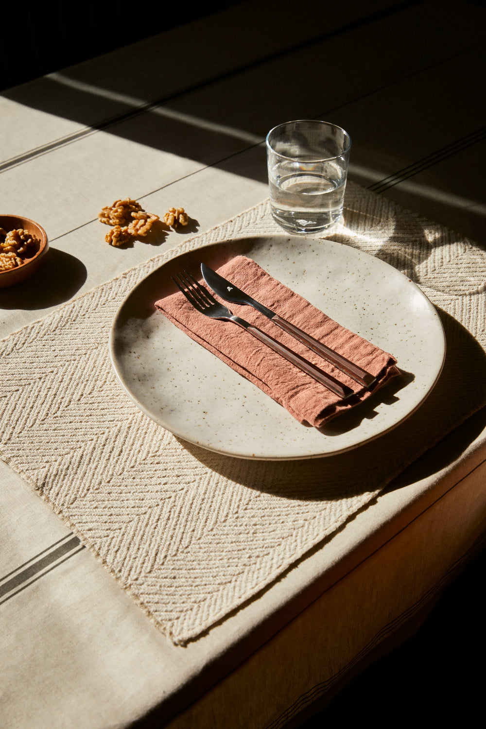 Conjunto de duas toalhas de mesa em espinha de peixe em 100% algodão.