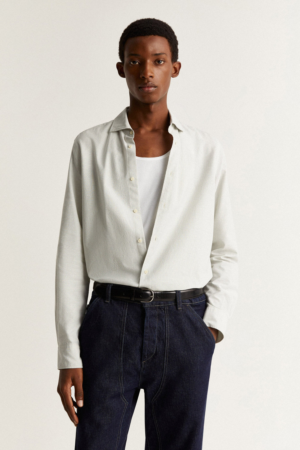 Camisa às riscas com detalhe de skull bordada em contraste no placket.