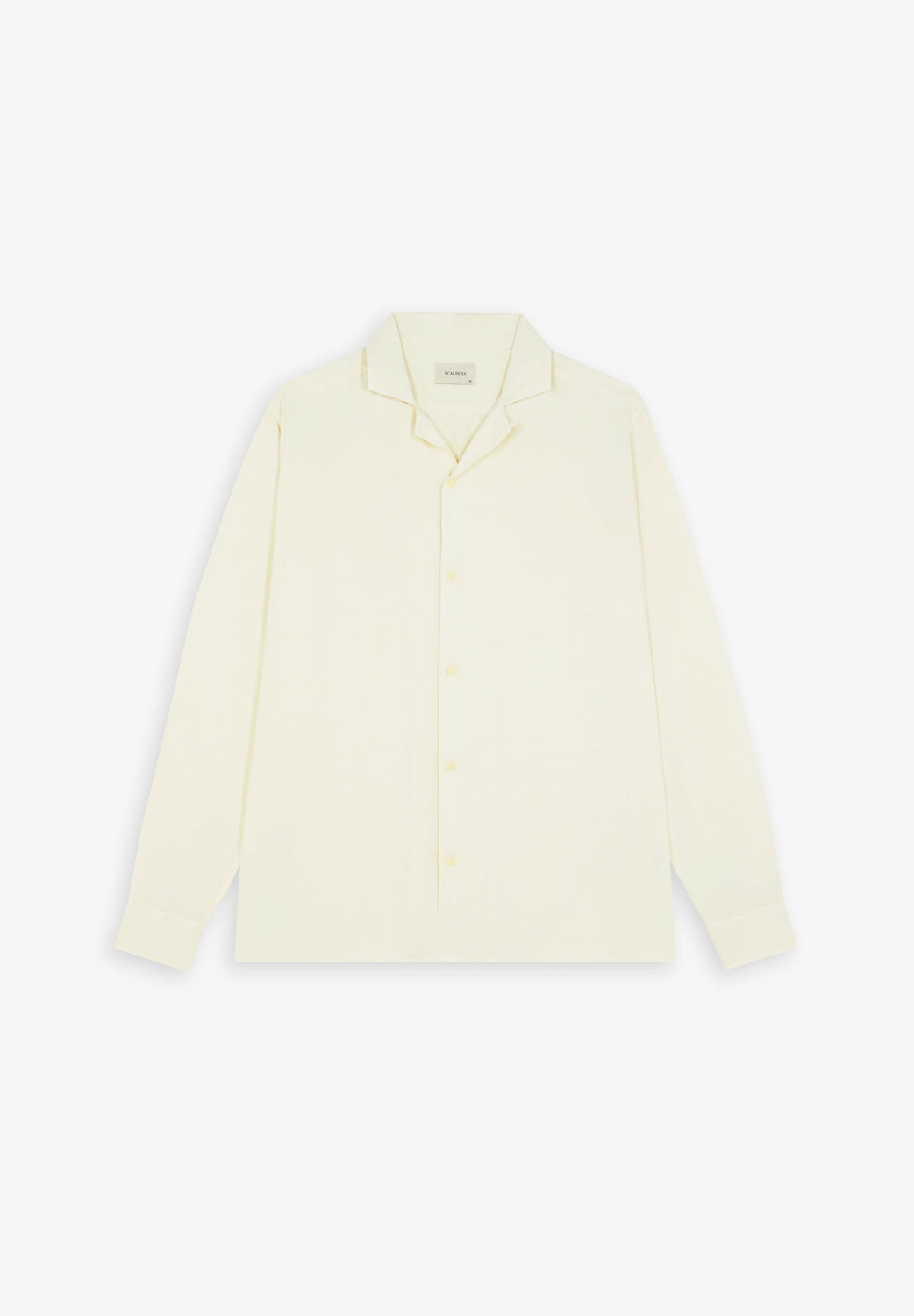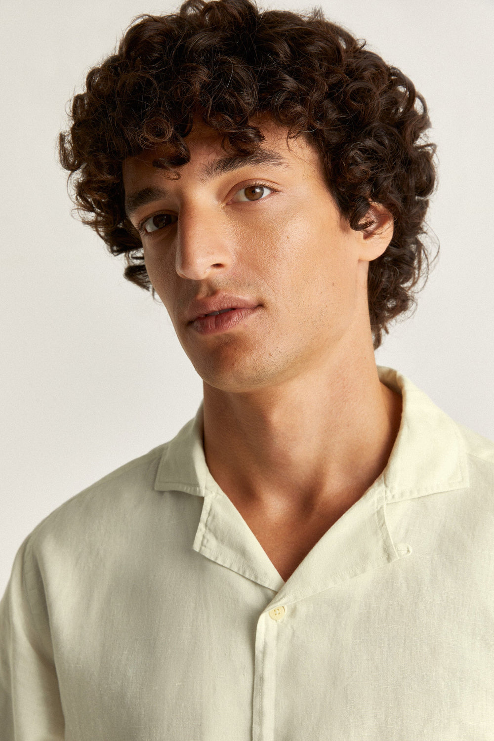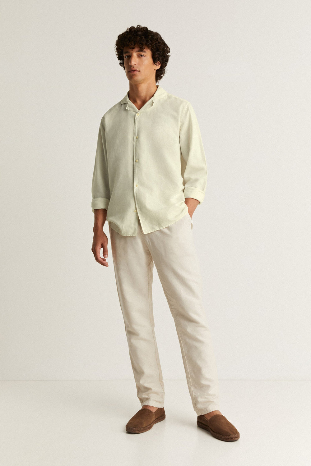 CAMISA DE LINHO COM DECOTE TIPO PIJAMA