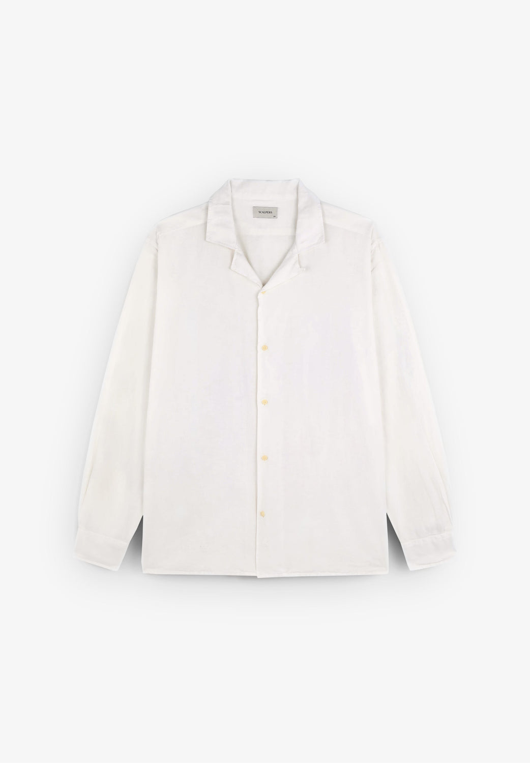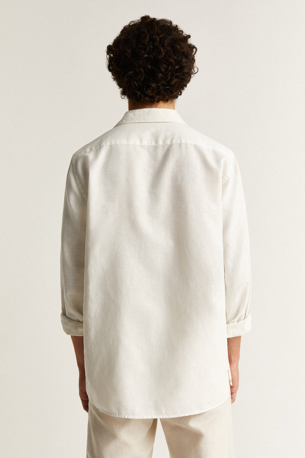 CAMISA DE LINHO COM DECOTE TIPO PIJAMA