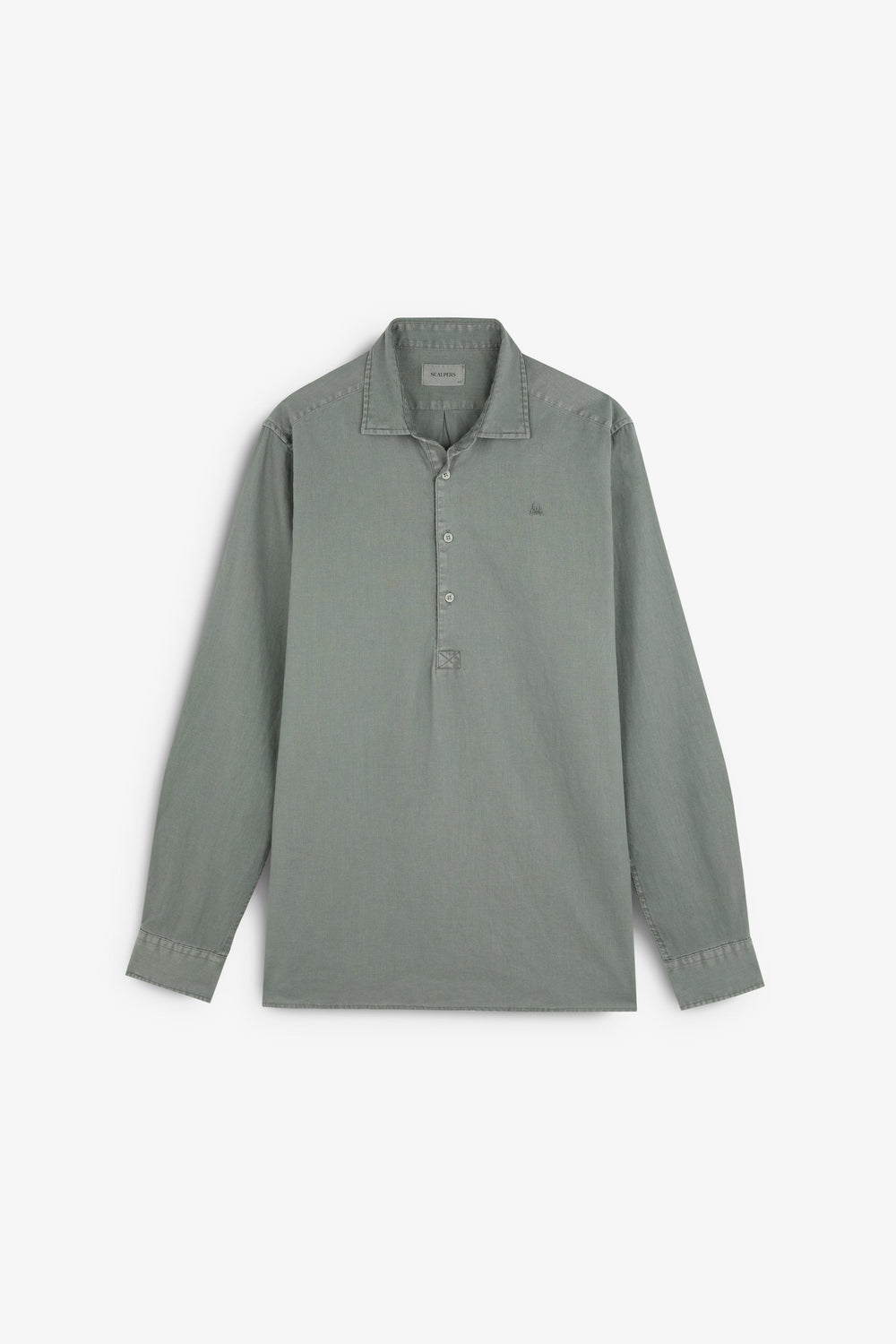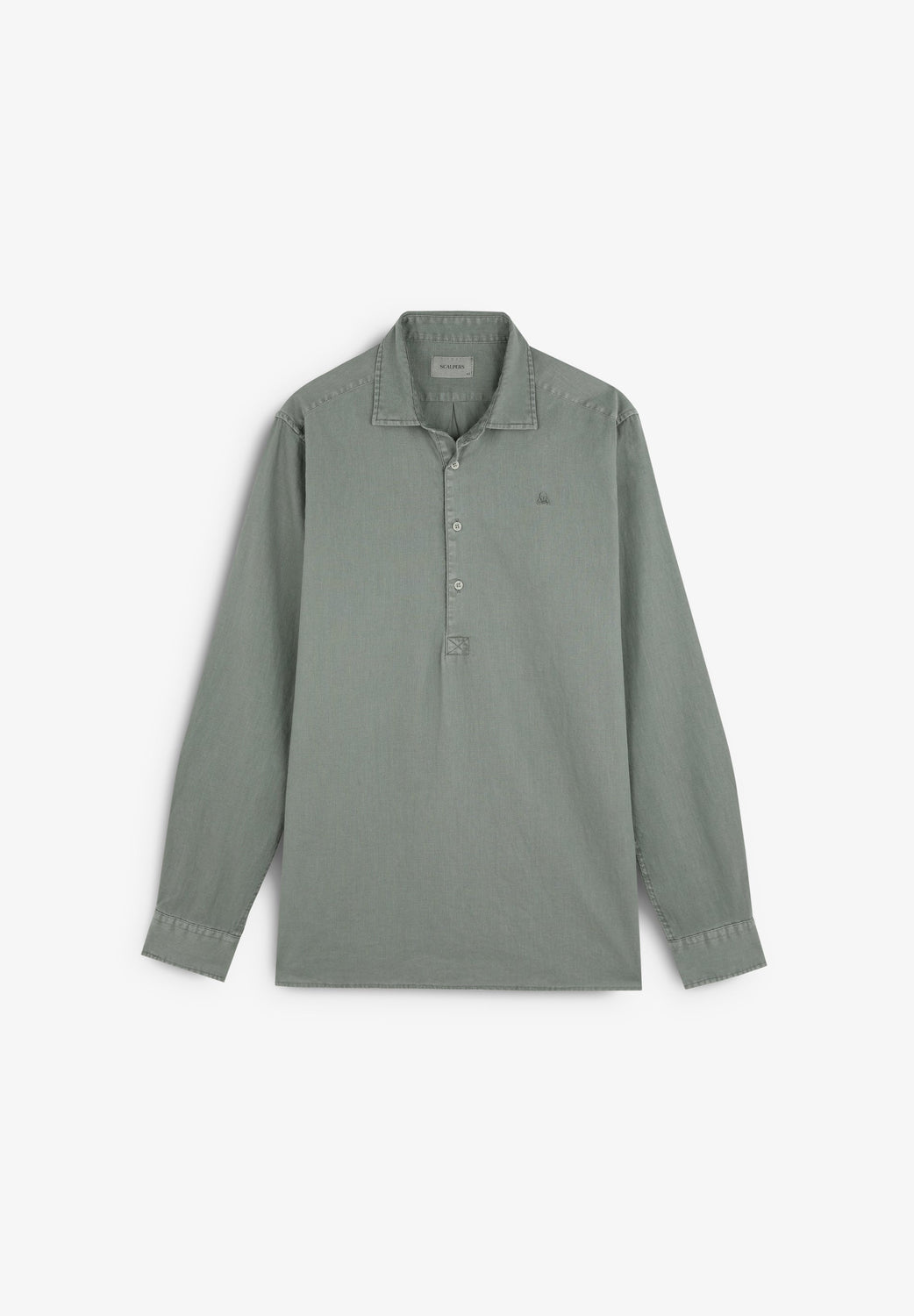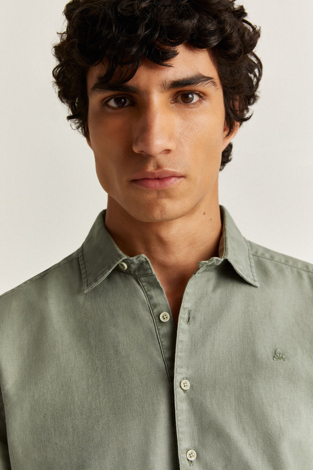 Camisa tipo polo com pormenor de skull bordada no peito no mesmo tom.